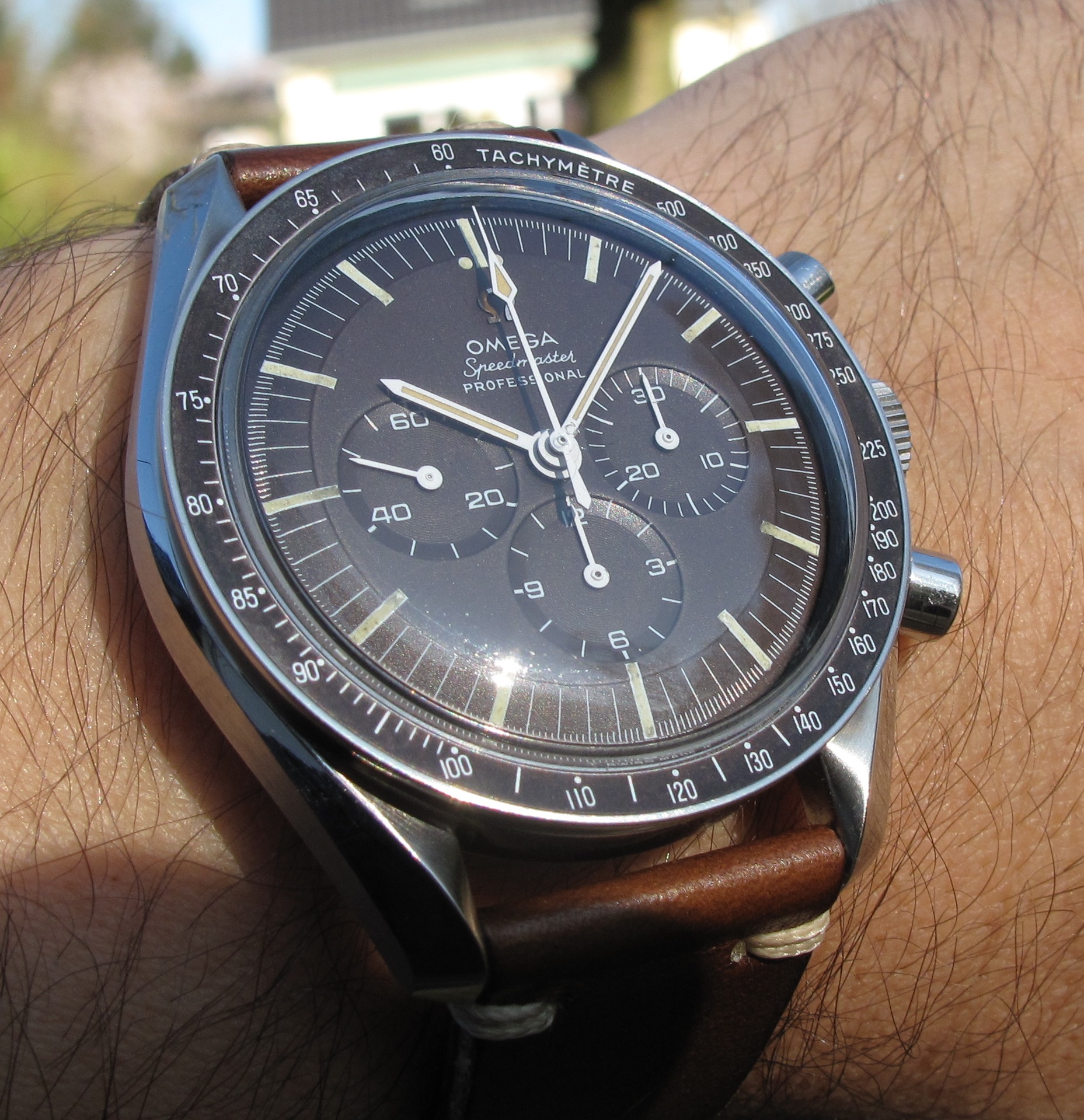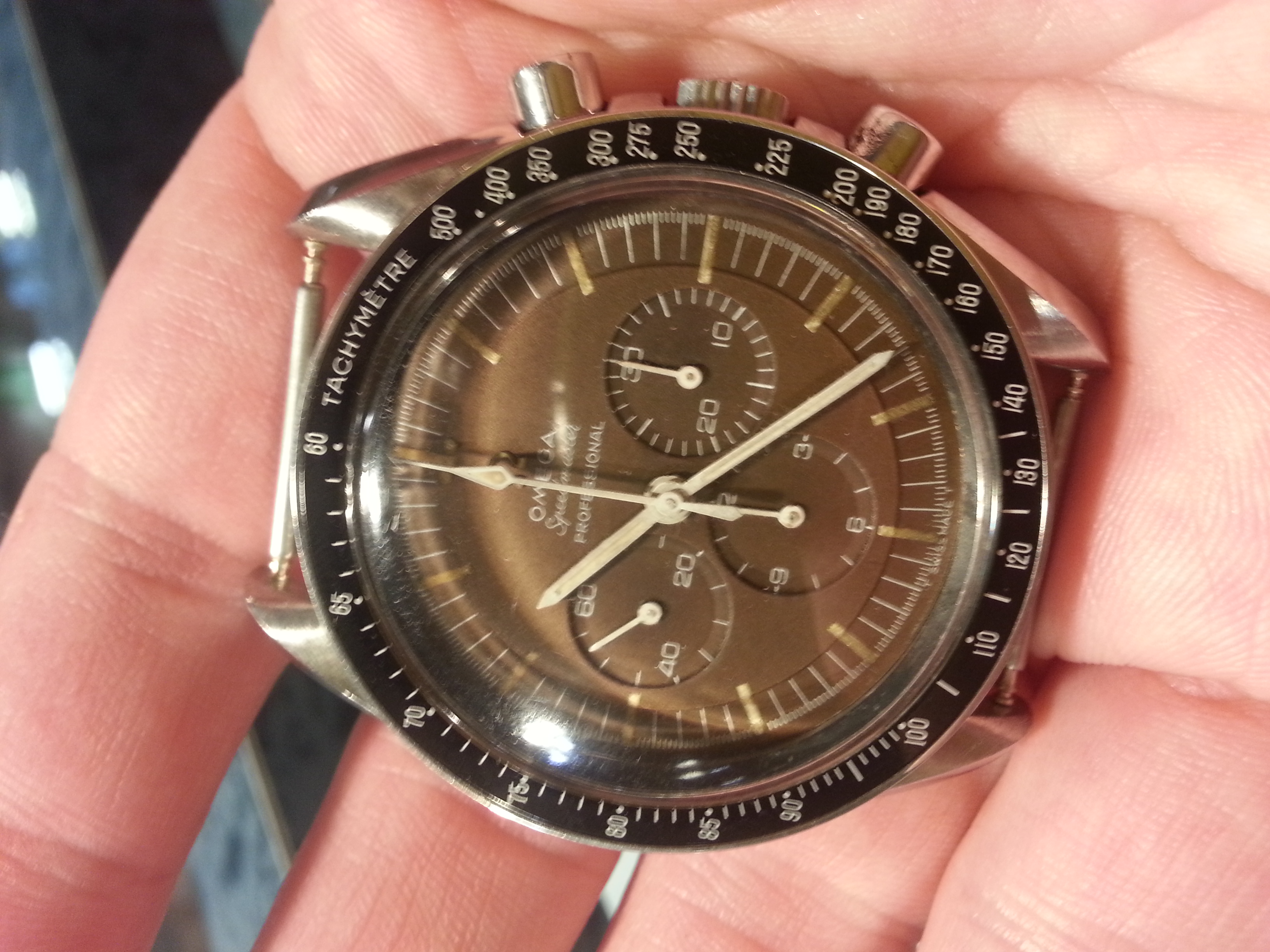 Check out this low technology aided brown dialage on my recently acquired 1964 birth year Echo Whiskey...the lighting makes all the difference...93.7% of the time the dial appears black...