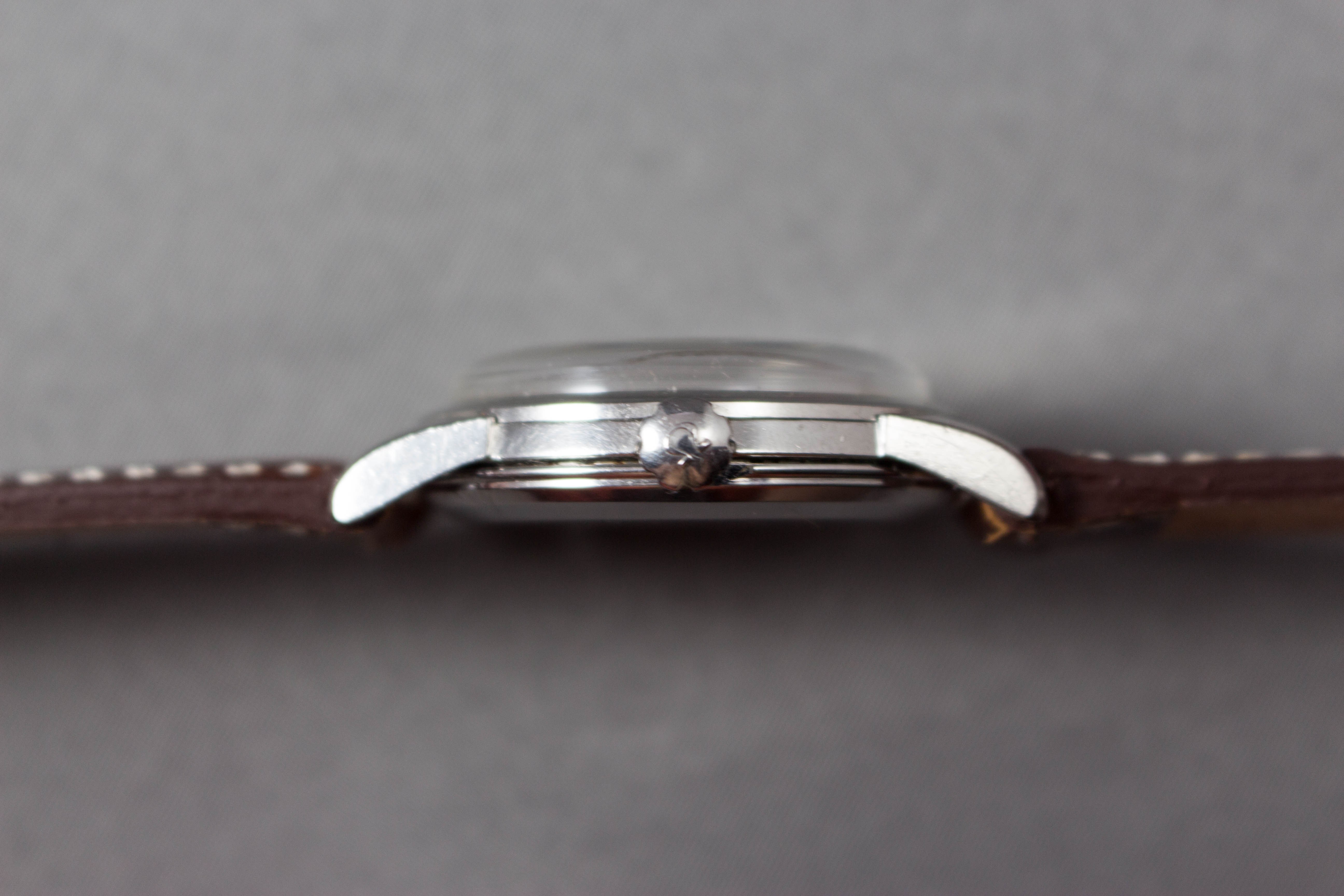 As mentioned above the crown is a replacement. I don't mind the slightly uneven patination, but along with the worn case and manual movement, it would have to be cheap for me to like it... @joybjoyb - how much is the asking price?