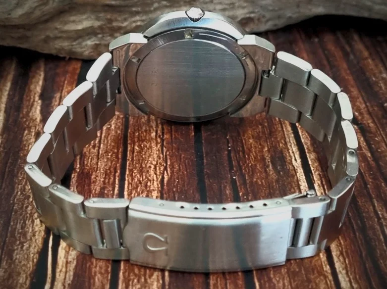 It has a fine stainless steel case, unpolished and in super condition with its original grained finish, which is complemented by its stunning black/blue/white racing dial which has been beautifully restored.