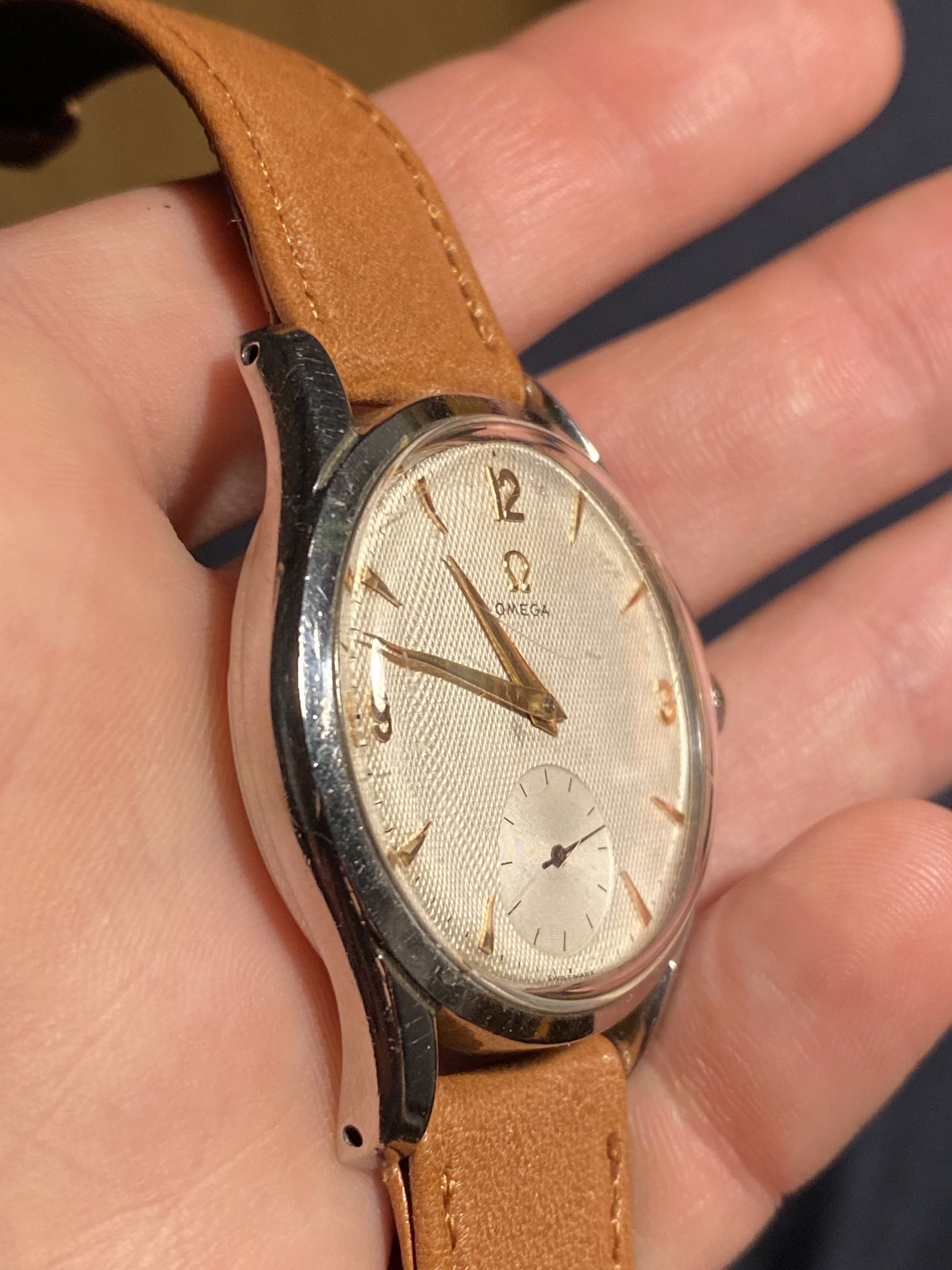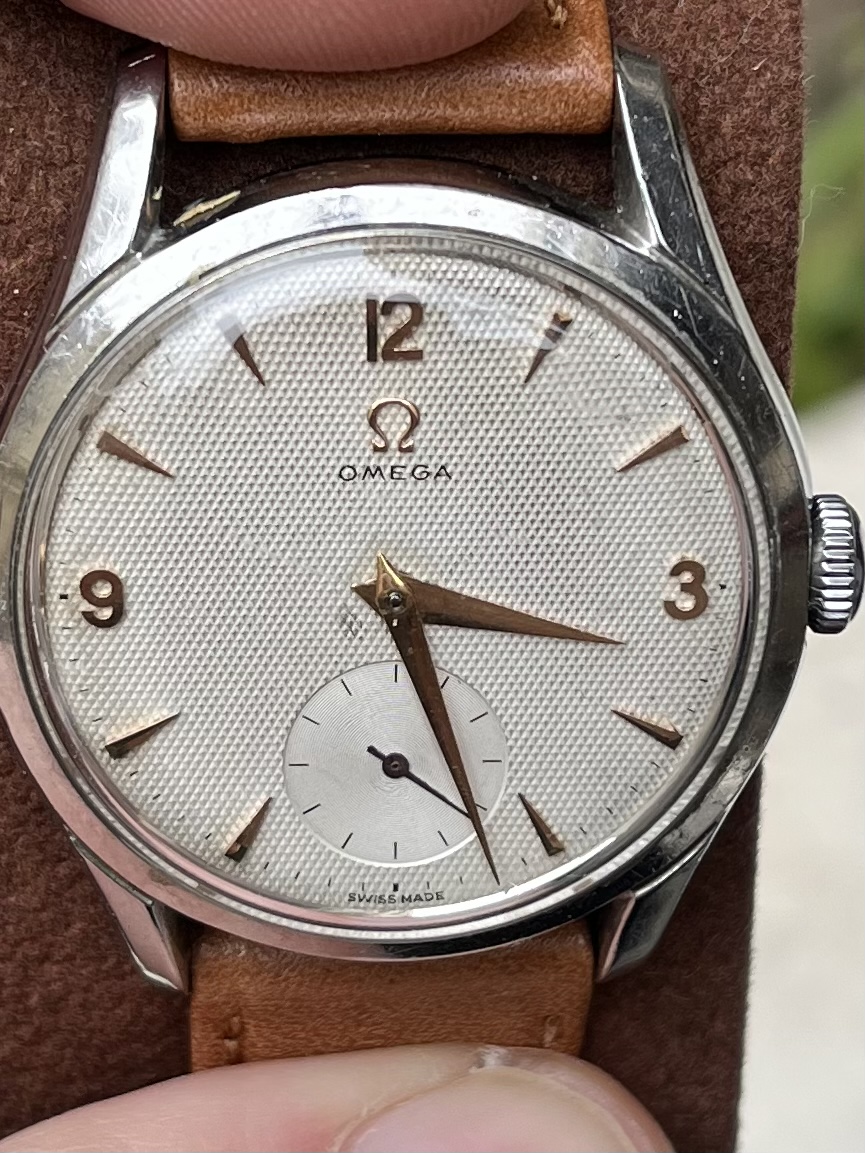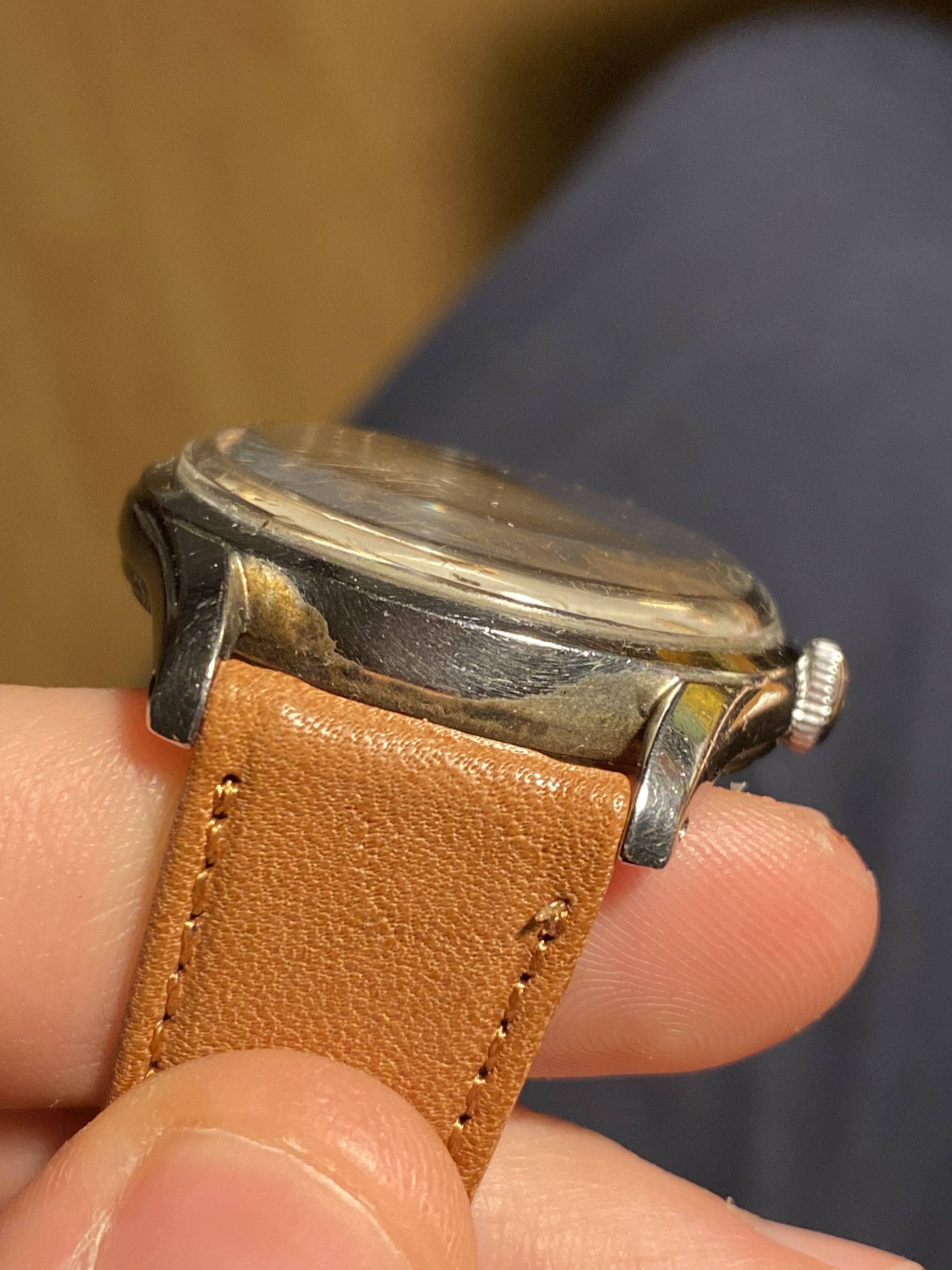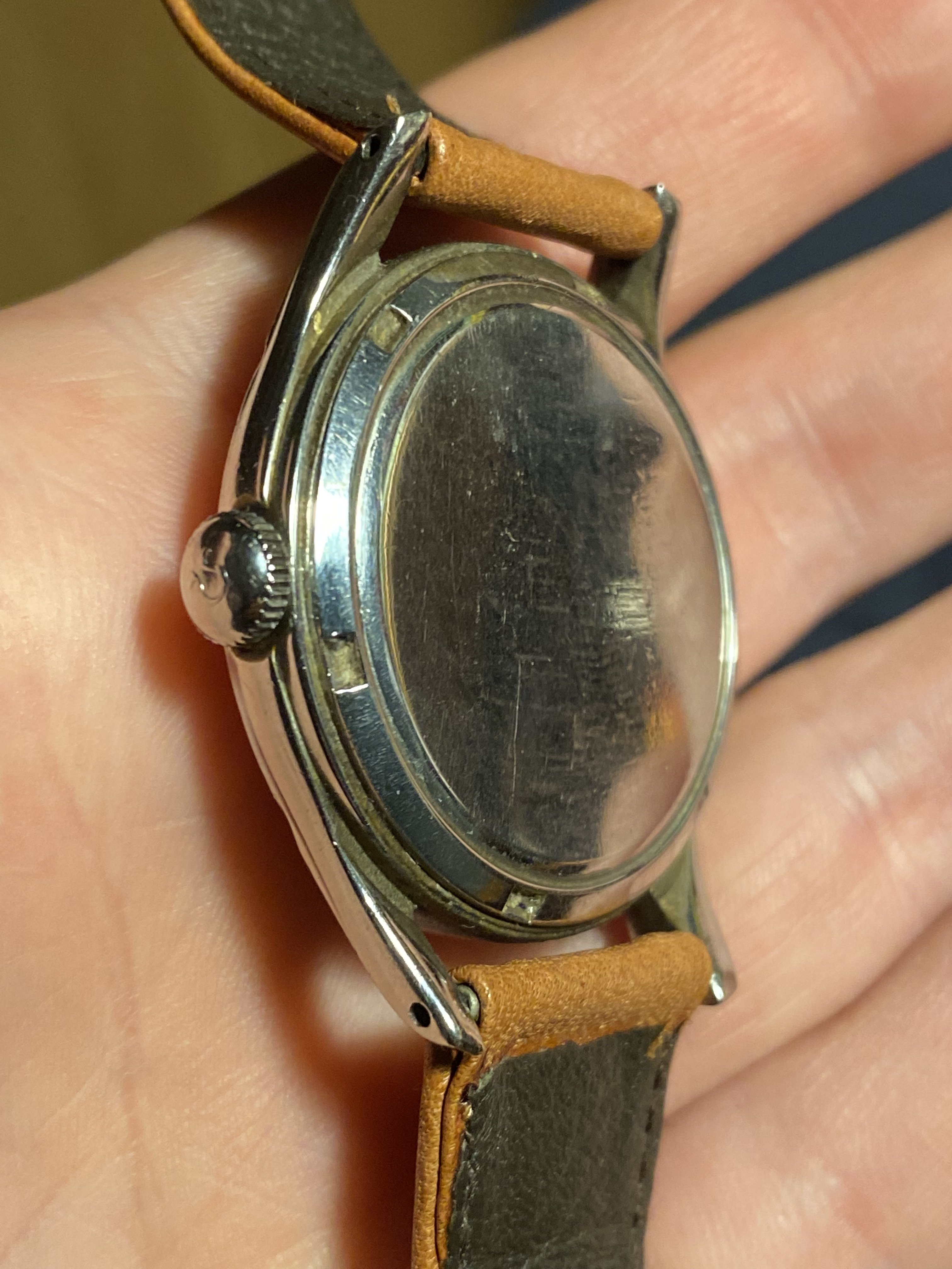 The case has been polished but still looking acceptable IMO. The dial is no-lume and looked nice to me despite the very scratched crystal making some details harder to check.
