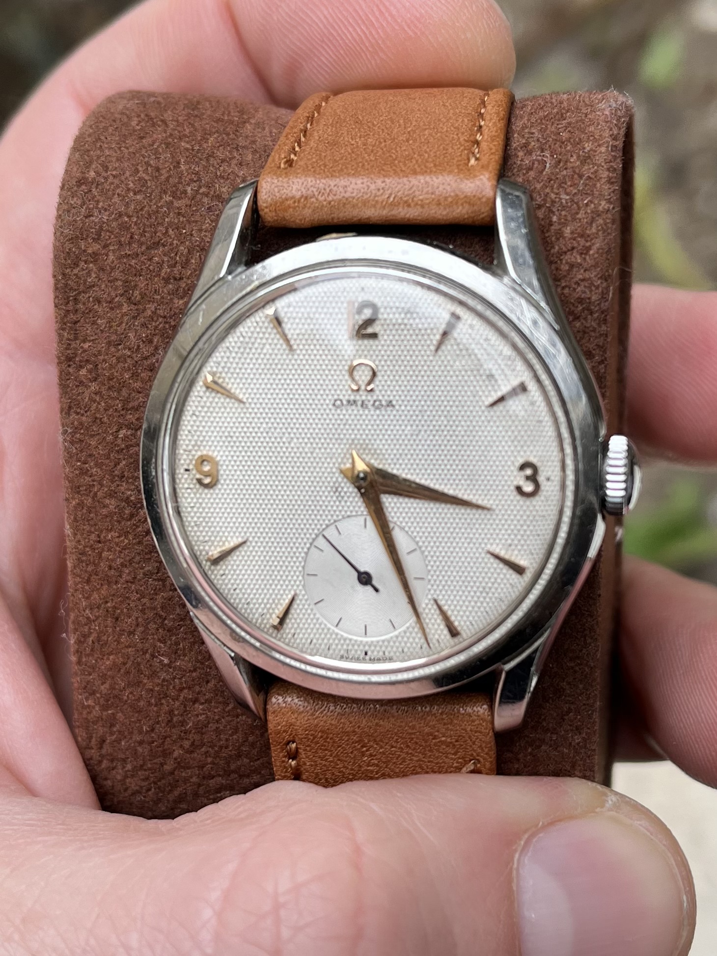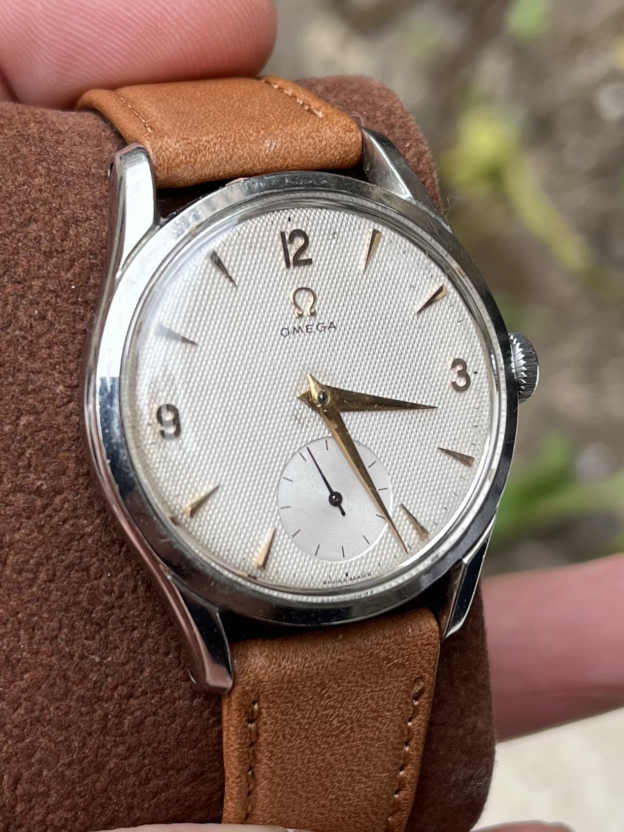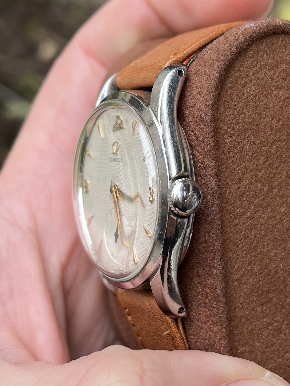 The case has been polished but still looking acceptable IMO. The dial is no-lume and looked nice to me despite the very scratched crystal making some details harder to check.