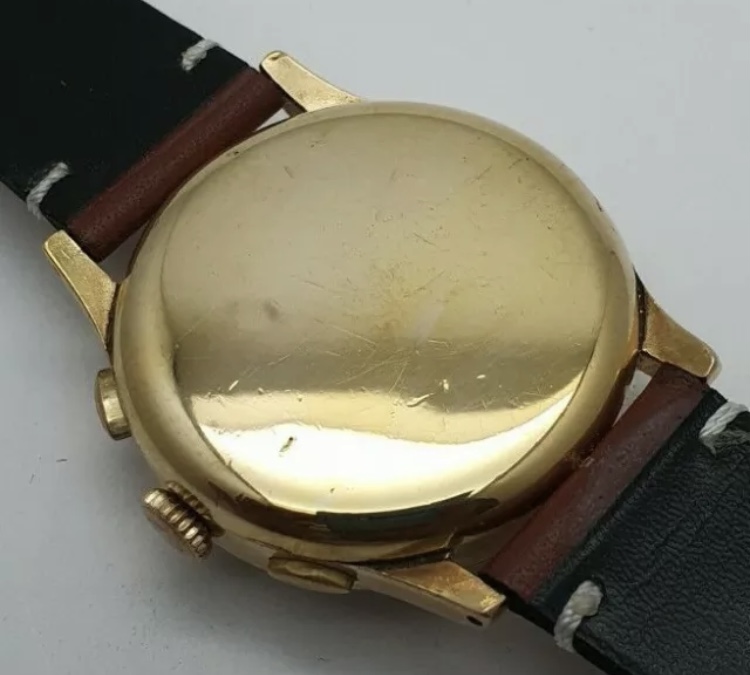 ·I’m curious what fellow members think about the originality of this one. The dial appears untouched though I’m not certain about “SWISS” at 6 o’clock. H, M, and chrono second counter hands appear correct though I doubt the subdial hands are. Aside from likely needing a service, movement appears fine. The case back, however, does not appear original as it is unsigned without engine turning. I’m unsure if engine turning is done on gold plated surfaces though.