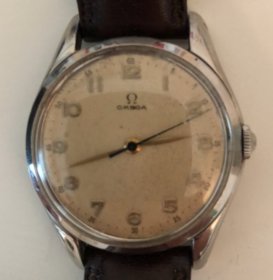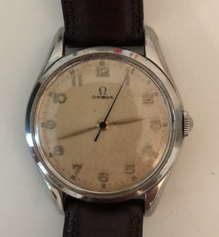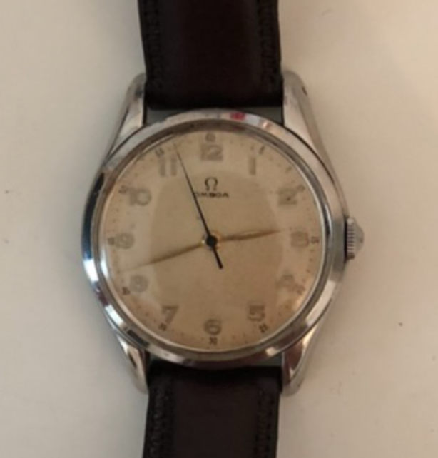 Style looks like mid 40's to me. The shape of the hands look right for that era as do the style of the logo. It seems as if some of the letters in "omega" are not apart as they should be but might be the bad photos (I am able to see the watch before buying). Crown looks right. Dial seems to be in good shape (with patina as expected from this era).