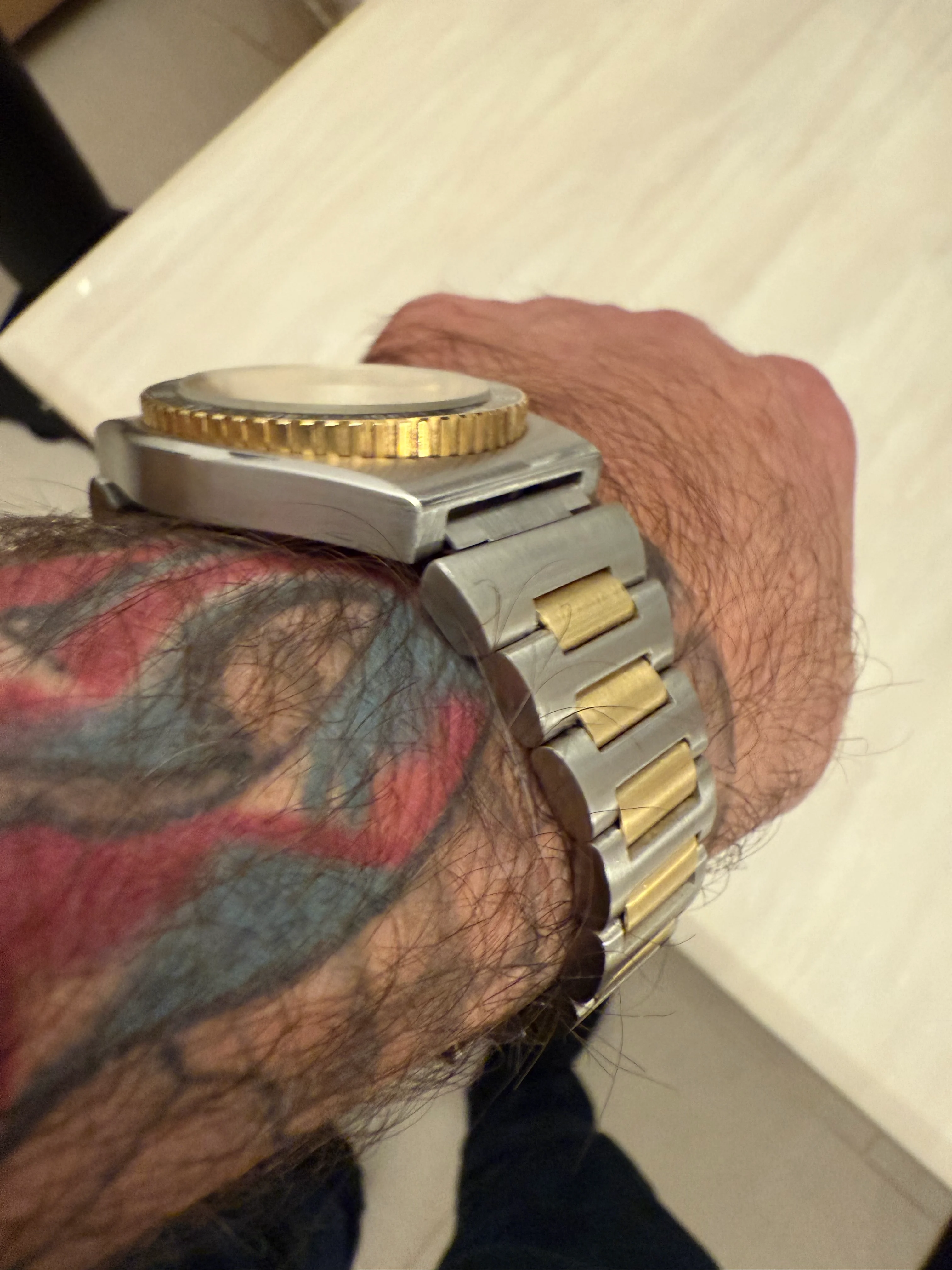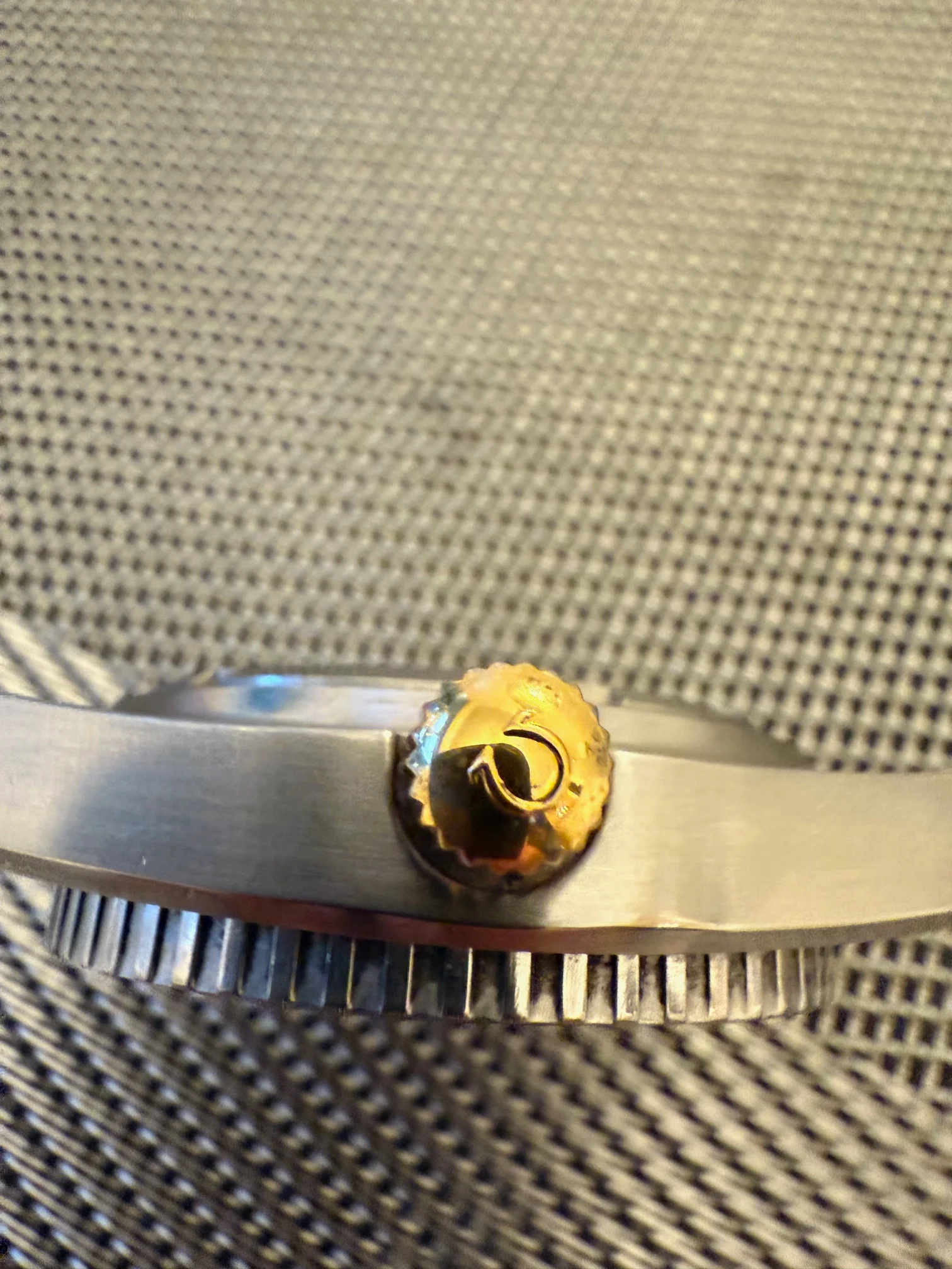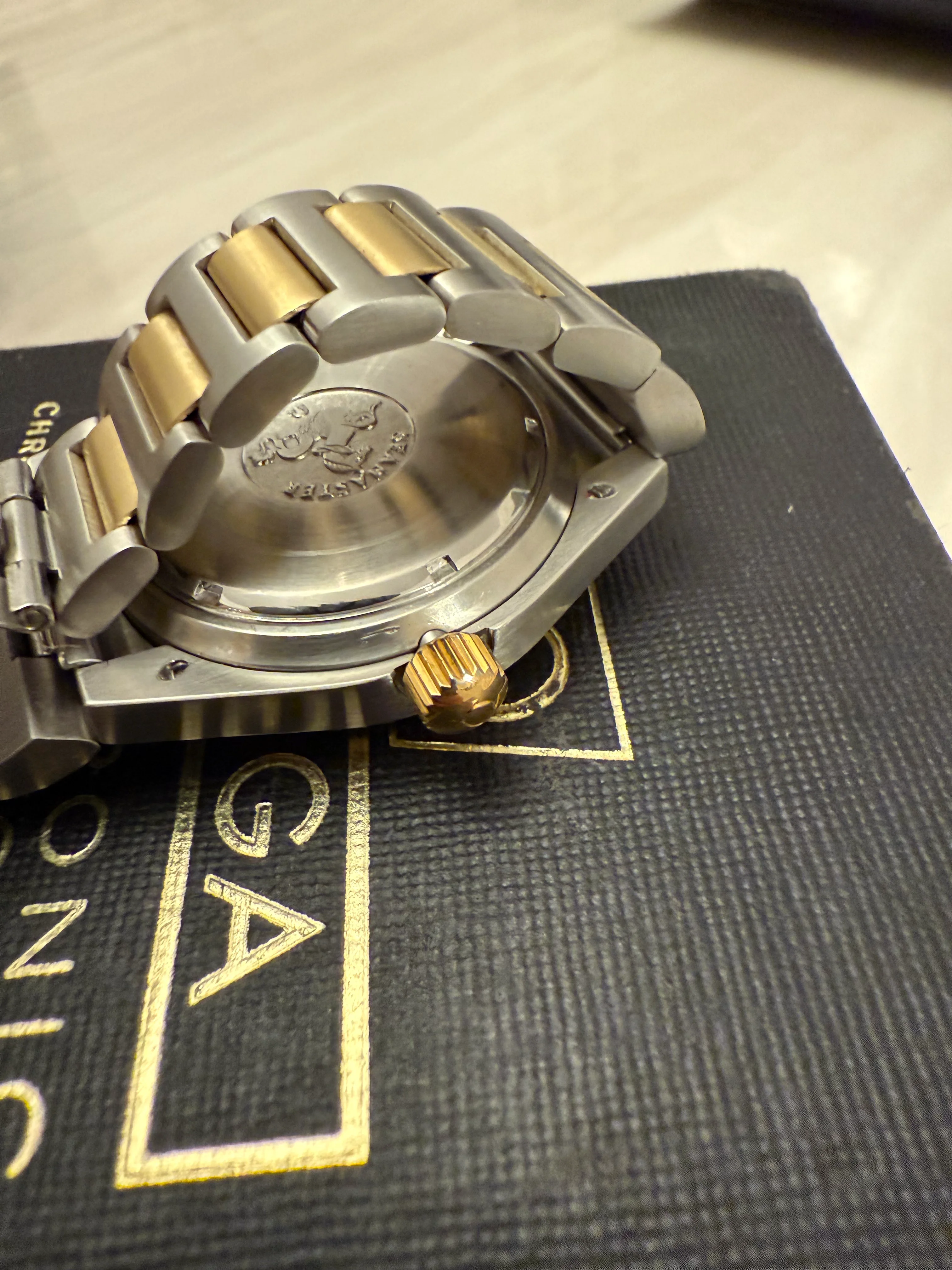 Anyway, at the risk of sounding completely mad, as I then had a spare gold dial I decided to create a second bi-colour watch on a genuine NOS sharkskin strap with gold no. 27 clasp馃檲