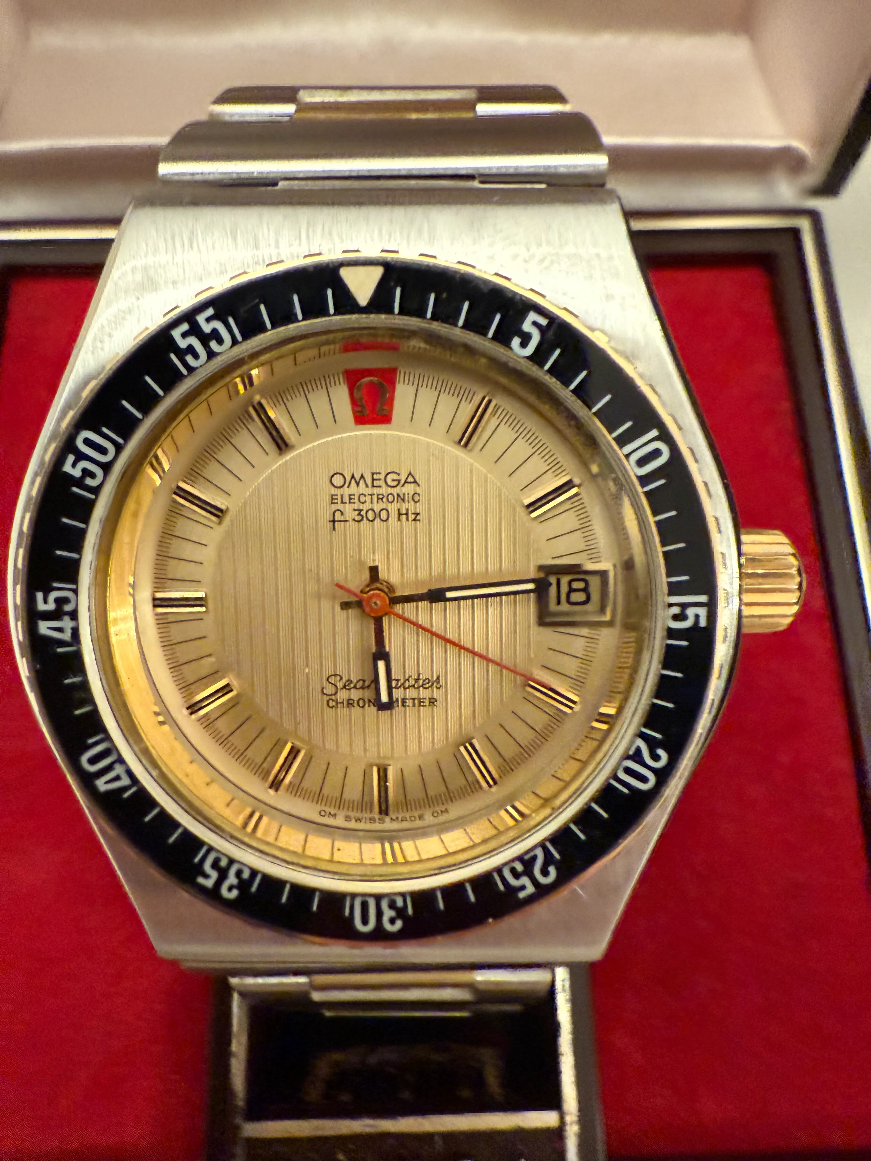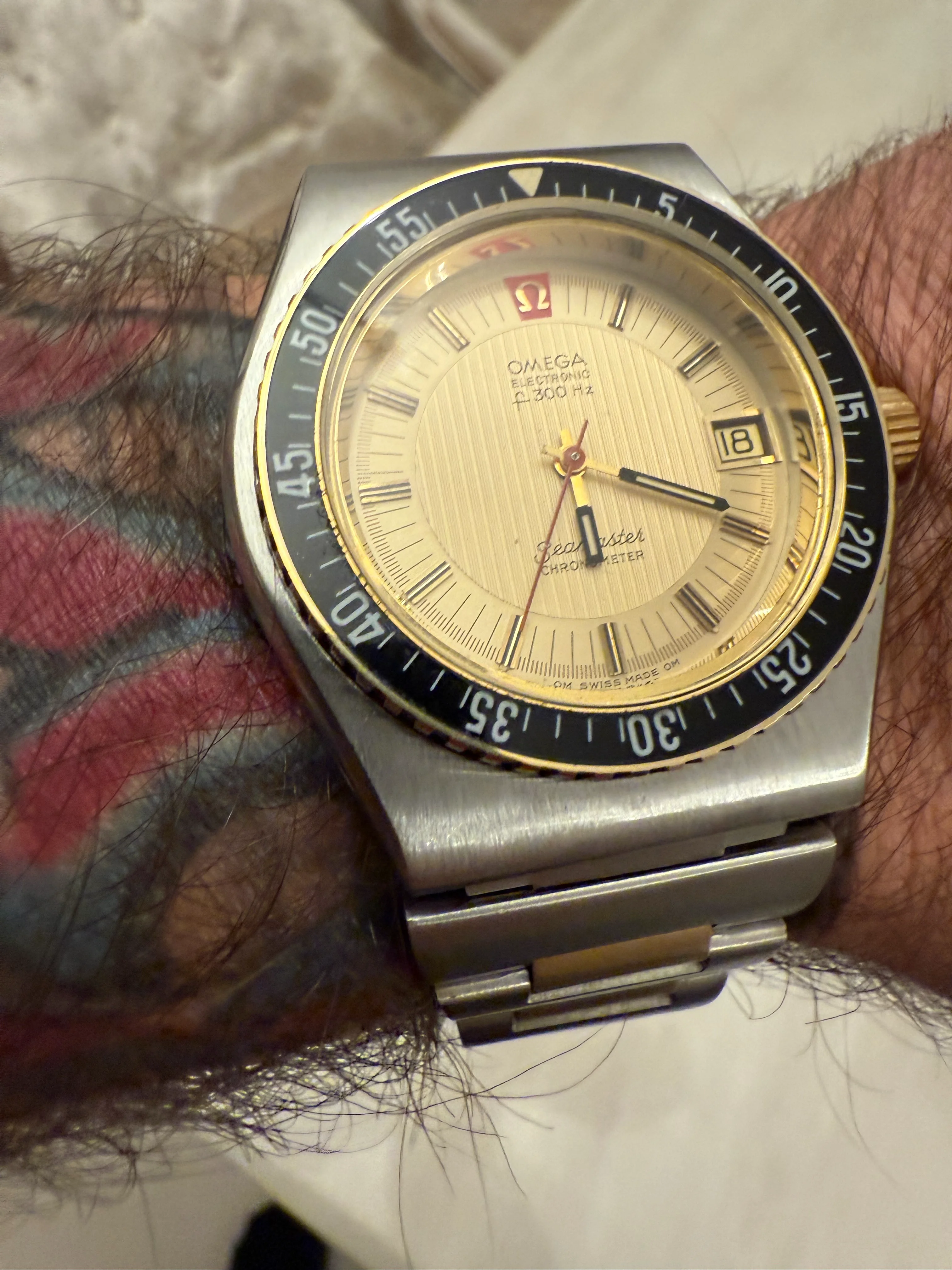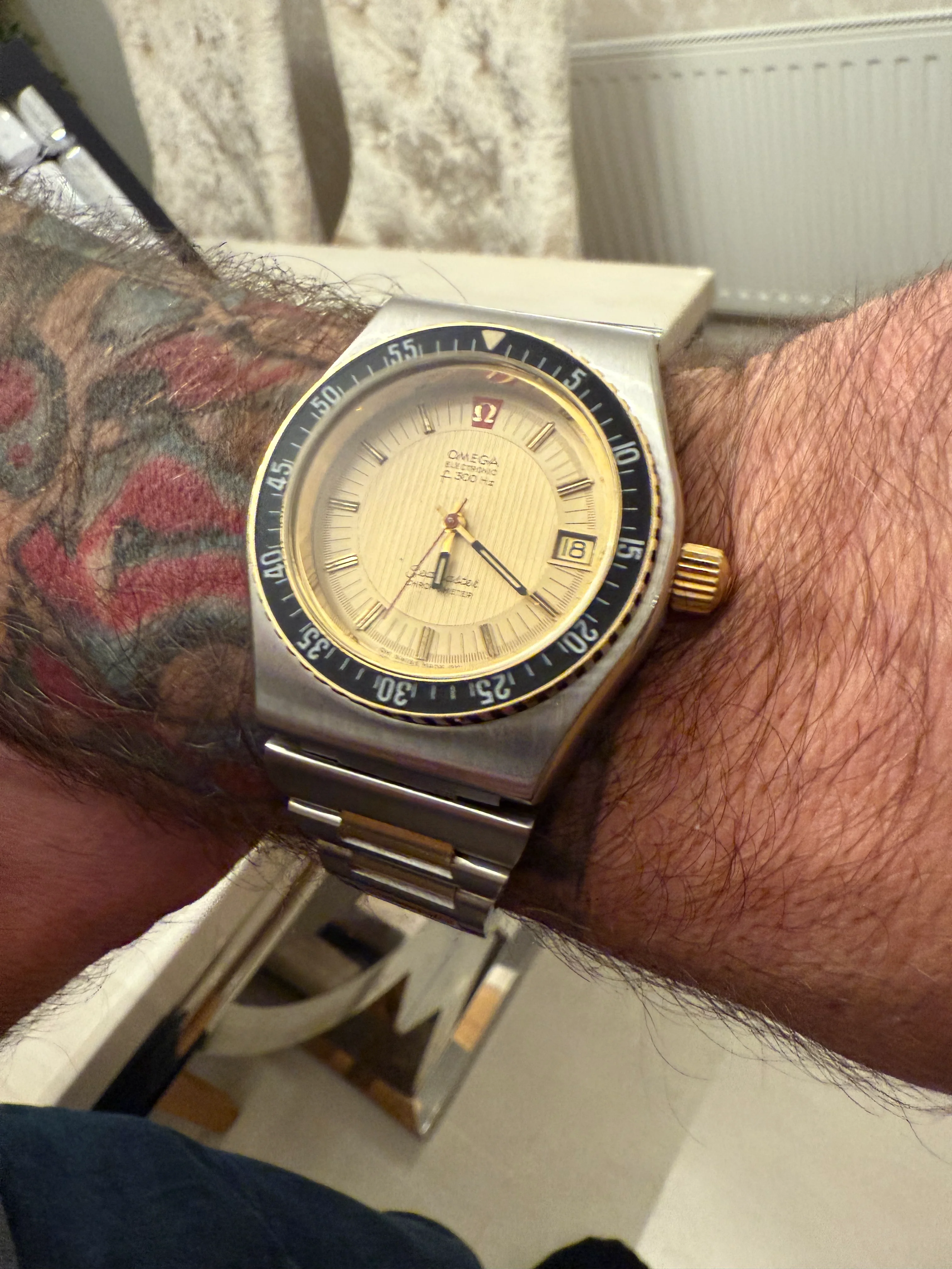 Anyway, at the risk of sounding completely mad, as I then had a spare gold dial I decided to create a second bi-colour watch on a genuine NOS sharkskin strap with gold no. 27 clasp馃檲
