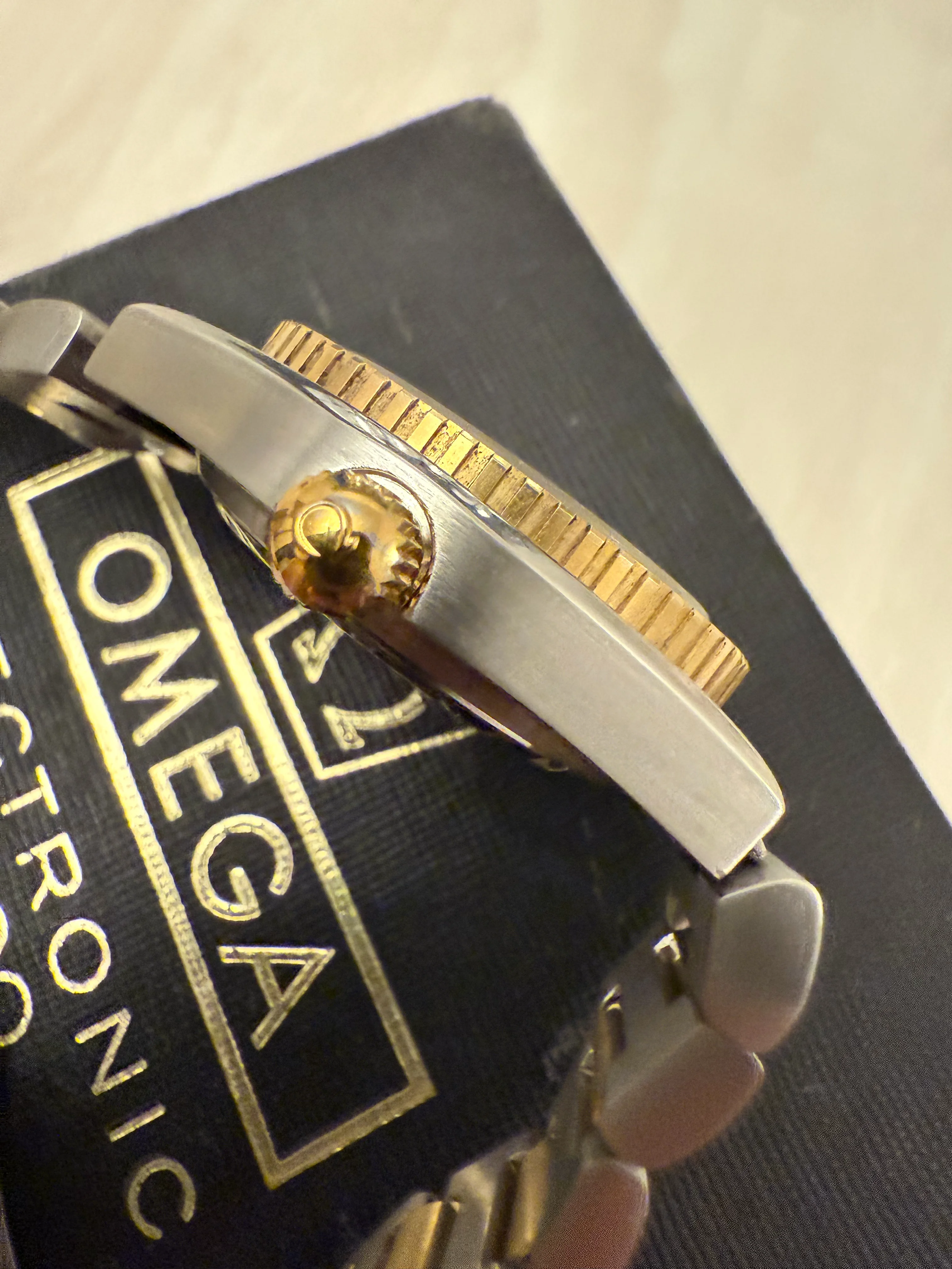 The lined dial was typically fitted to the highest specification of the solid gold 198.0016 and 198.0005 models and seen with the gold date wheel.