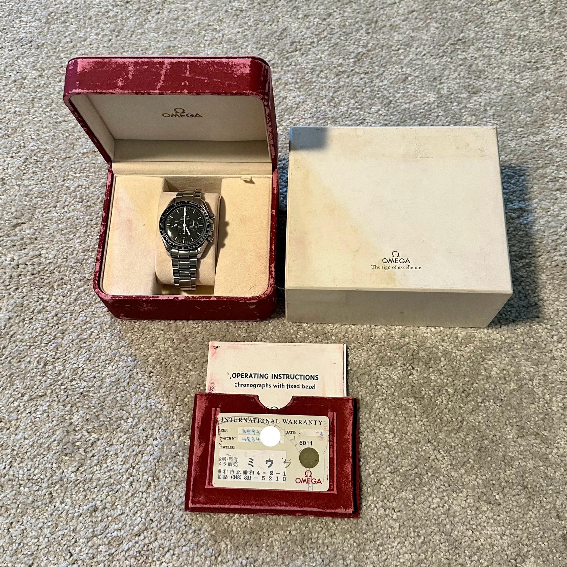 From what I can tell, it has the C5 regular S on the dial, with the correct band + sapphire backing. It’s the unnumbered version with no “Apollo XI” inscription which tells me this is from 1996?