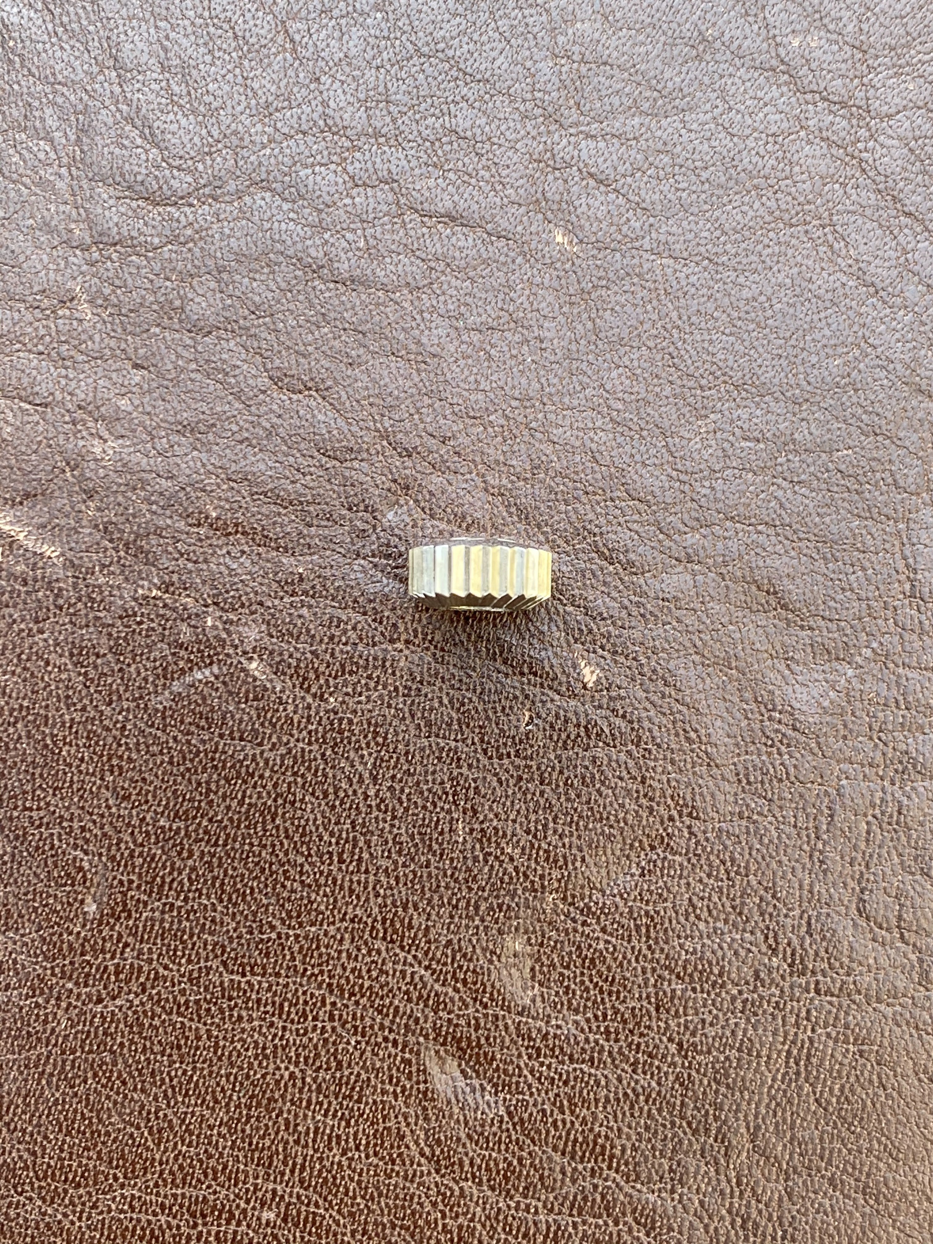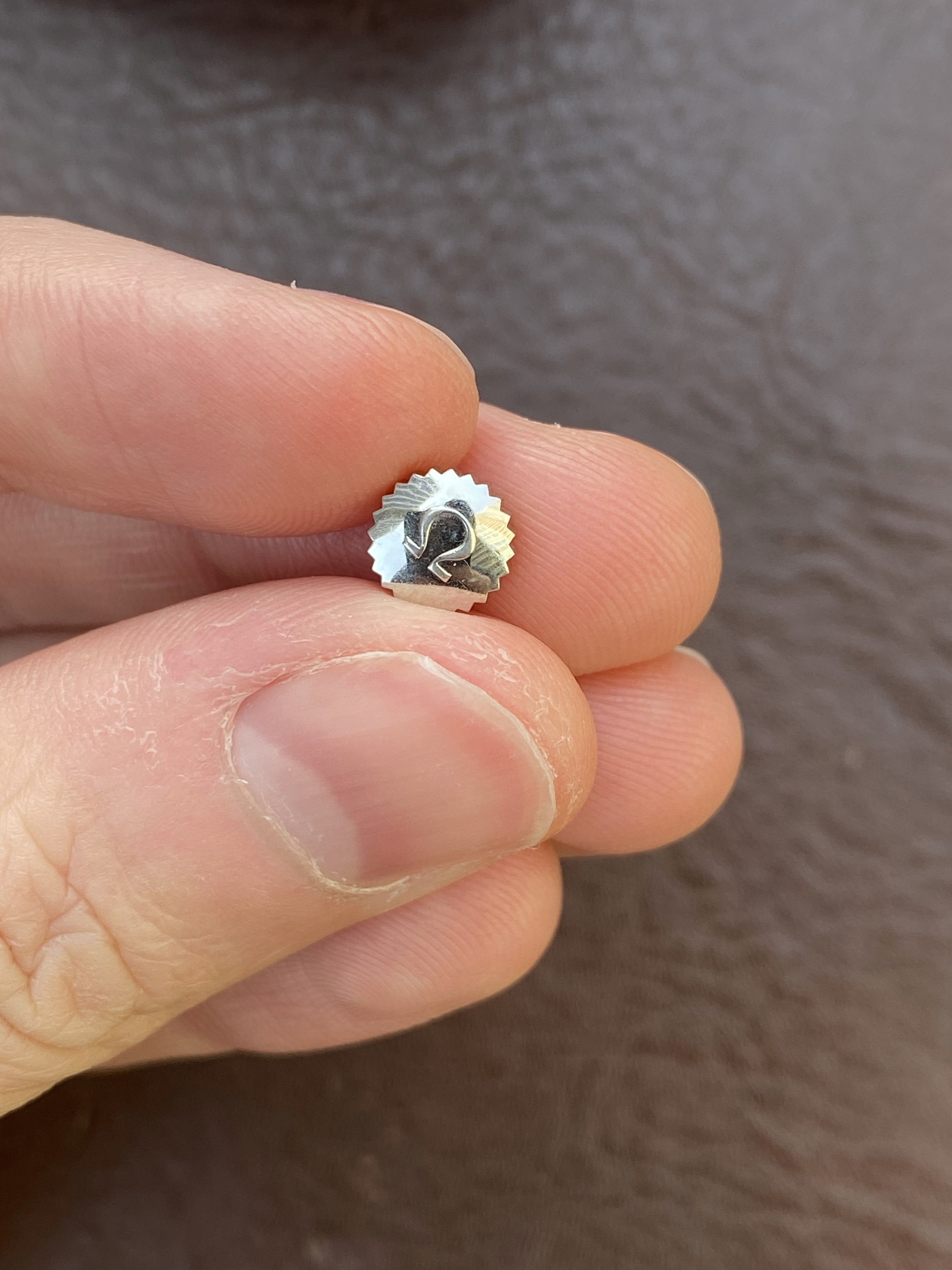 This crown appears to be the same as #1, except that the protruding tube is 4.2mm total height compared with 4.9mm for #1 and it's closer to 6.7mm diameter presumably due to wear. The tube has some visible damage and combined with the shortened height, I assume that this is an A1 crown except the tube has been damaged. The crown is clearly used and shows wear, see photos. Asking $250 (reduced from $300).