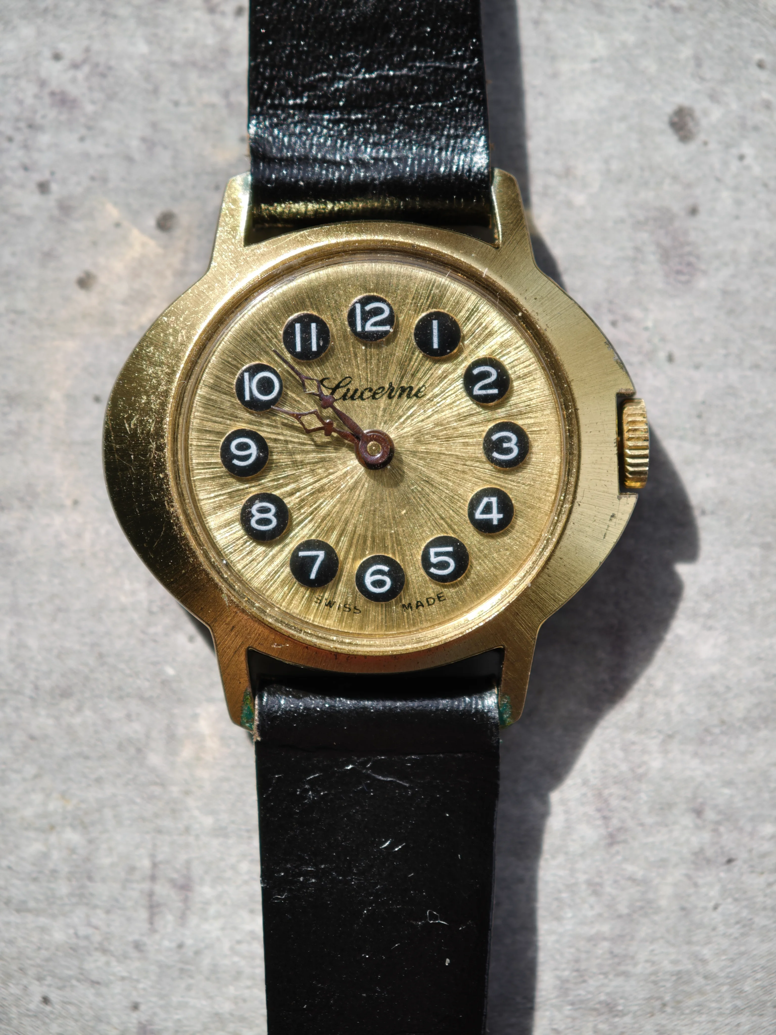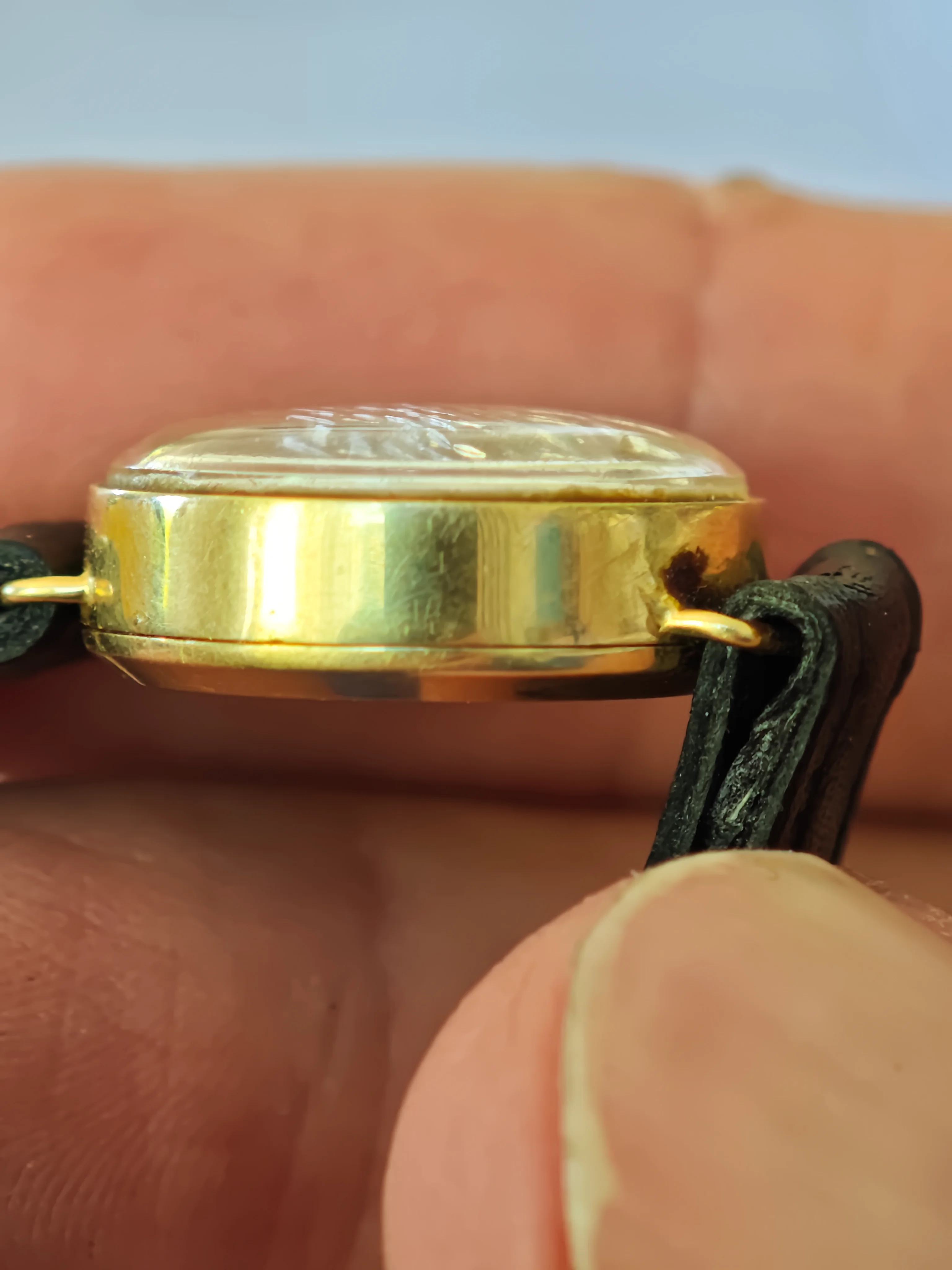 There was a bit of a story in the purchase of that one. The shop had the price sticker on the back of the watch completely obscuring the 14 K marking saying 15 dollars. Me always one to haggle and bargain noted to the sales assistant that the watch was not running and the price was therefore 2 high and I offered 10 dollars. The diligent sales assistant referred it to the shop supervisor who said 5 dollars would be fine. They were happy and I of course was extremely happy.