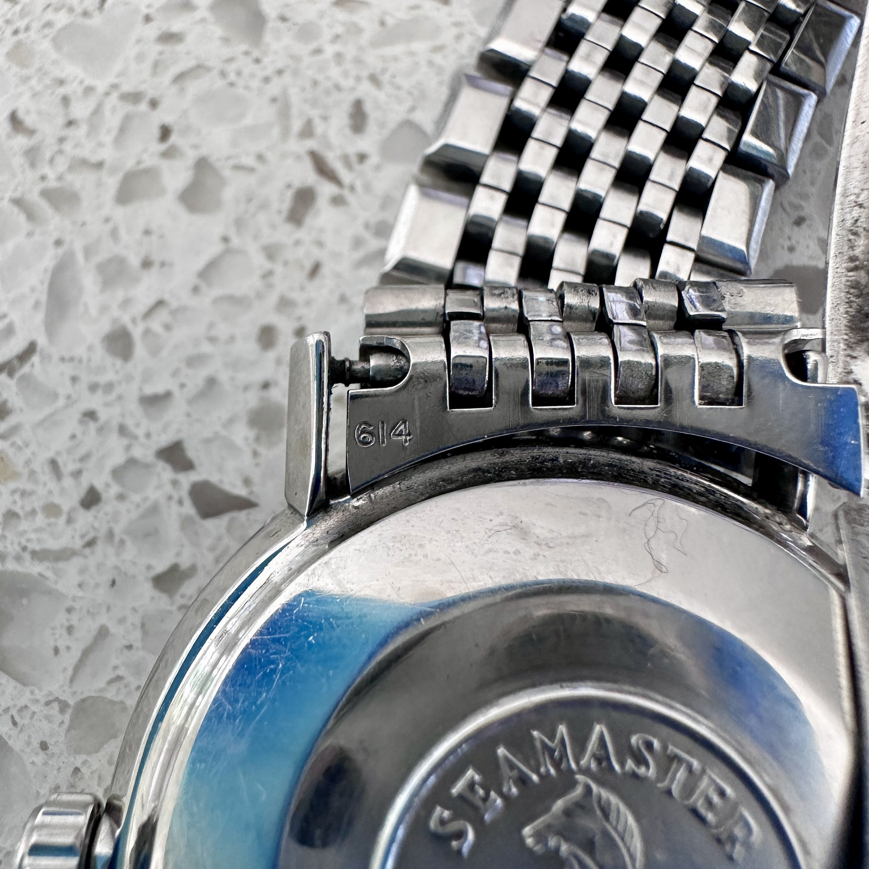 Watch has an original Omega clasp band with the numbers "614" and "70" on either side of the back. Please have a peek at my photos if you think you may be able to help.