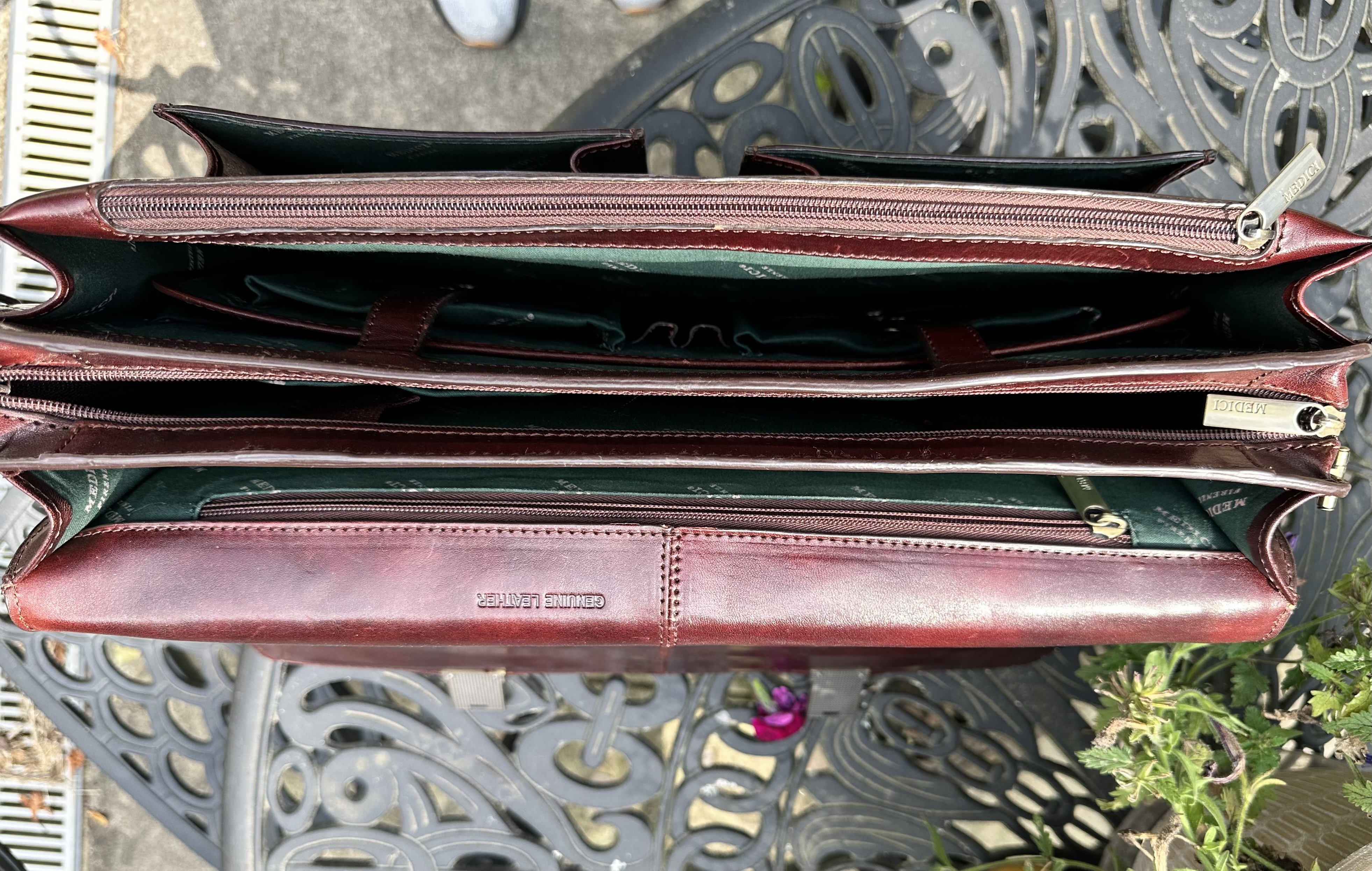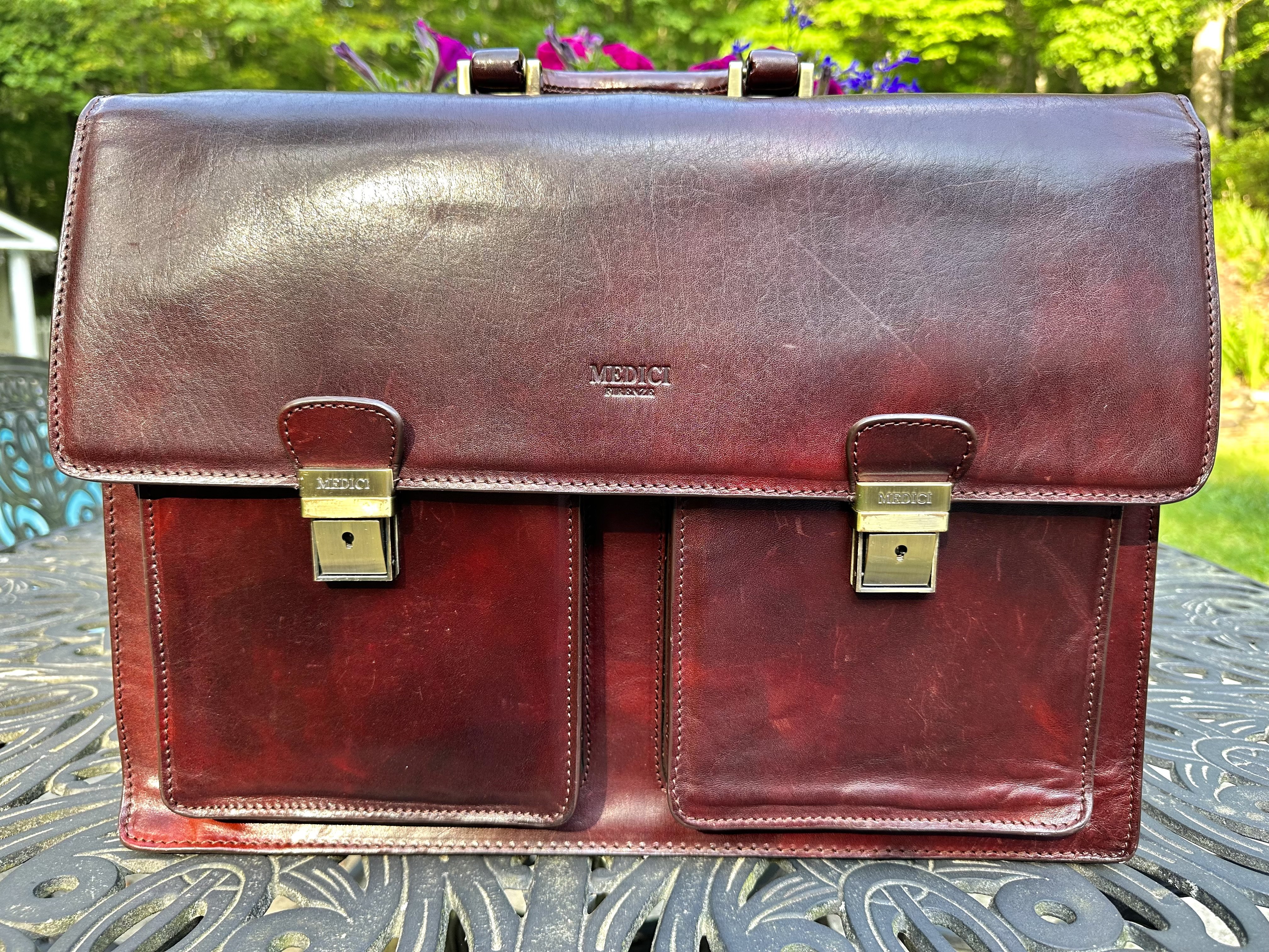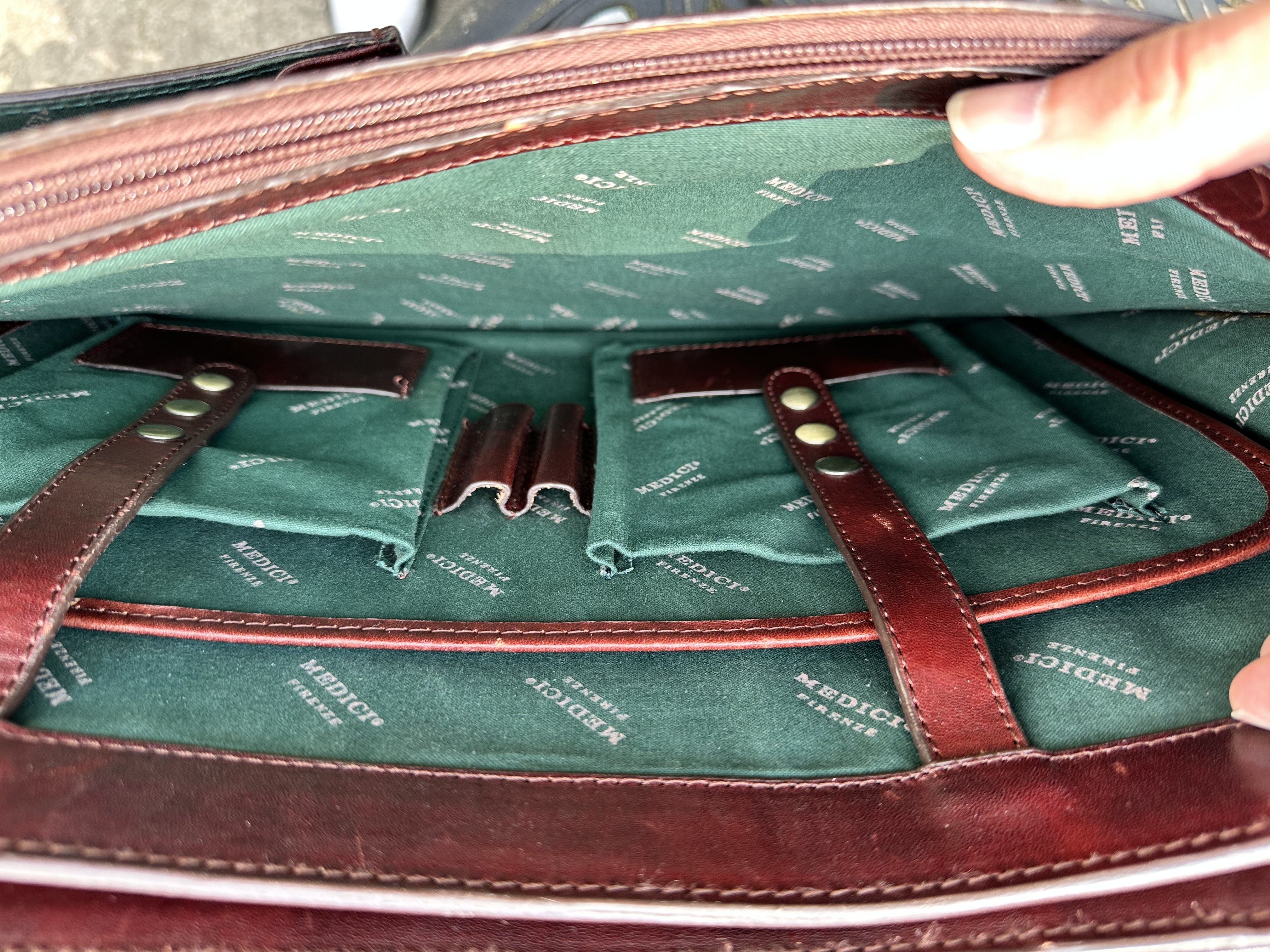 ·There’s an old thrift store that I pop into once in a blue moon. They have a bin of watches, but have never found anything of interest. Today was no different except this Italian Medici Firenze briefcase was lying in the floor tucked partially under a rack of old clothes. Priced at $100, I haggled them down to the amount of cash in my pocket…$46 for a very nice and well made Italian bag.