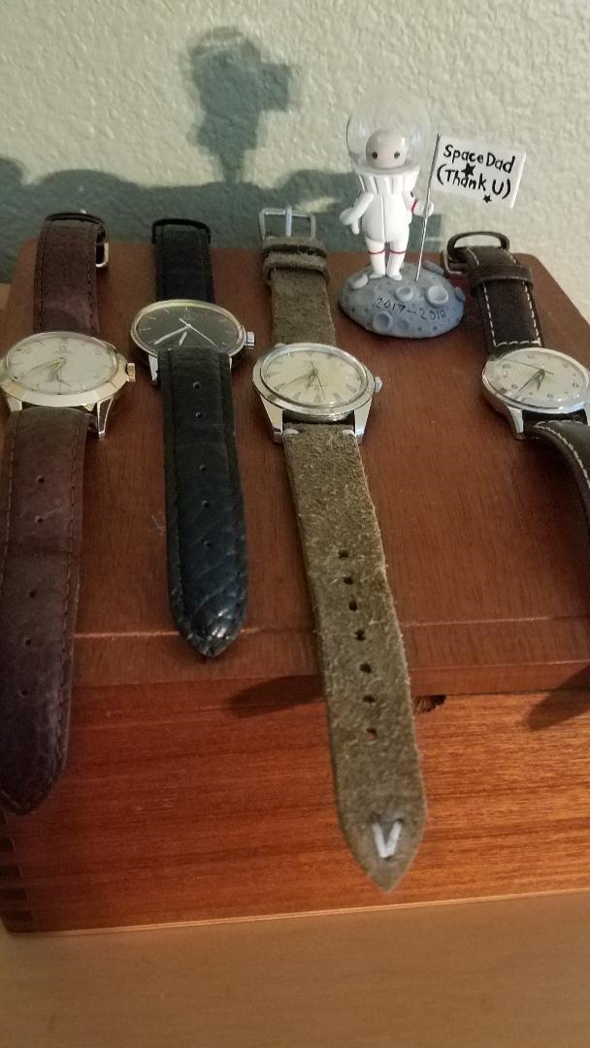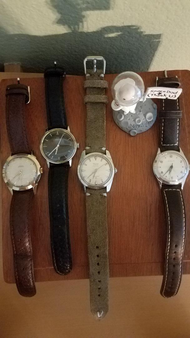 ·I noticed that when the house is real quiet. Usually late at night, and I pass by my four vintage watches. I can hear the faint sounds of the watches happily ticking away doing their thing. Seems like such a small thing, but isn't life about the little things. Thought I'd share one of the small pleasures of life and why we collect them. Sorry, pics not that good. Two vintage Omega's (one 1951 honeycomb dial bumber, one 1966 speedmaster companion). One vintage Wyler Incaflex Superior Dynawind and lastly a vintage Gubelin hand wind.