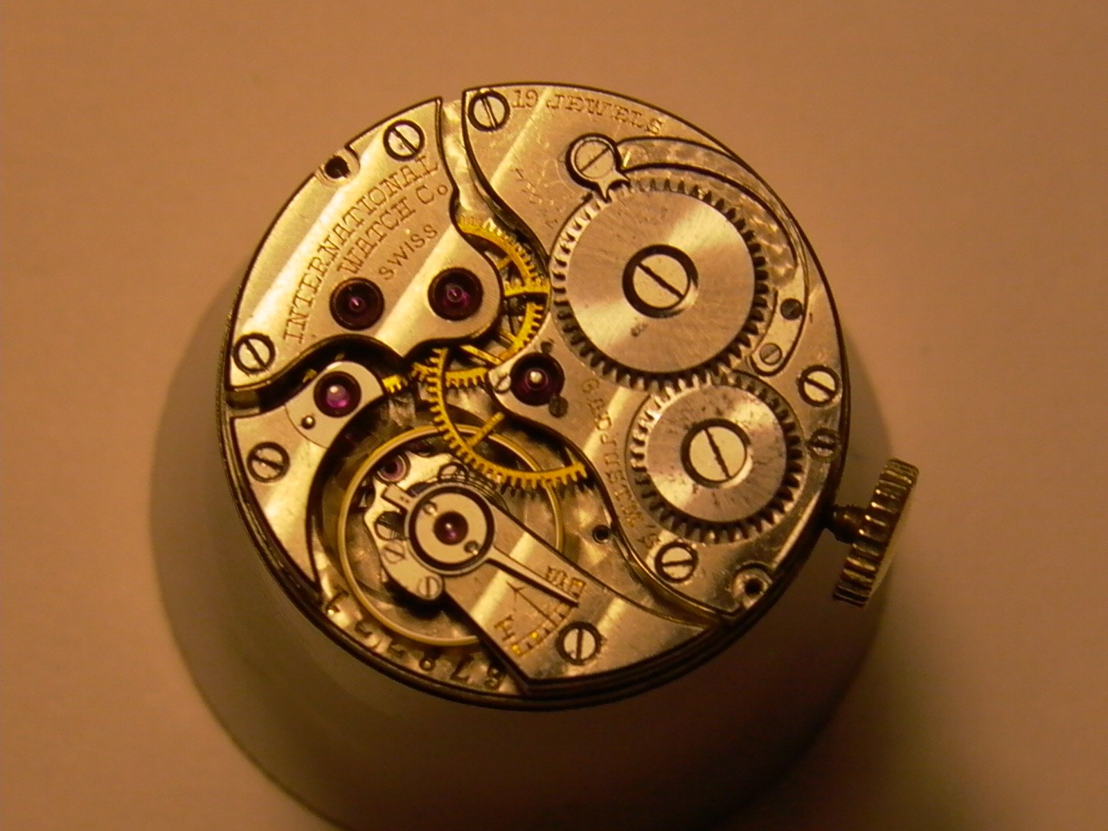 The movement has the IWC trademarks and is of the highest grad. It has an overcoil hairspring, 19 jewels, and is regulated in 6 positions. The import of this movement into the USA must have been rather expensive.