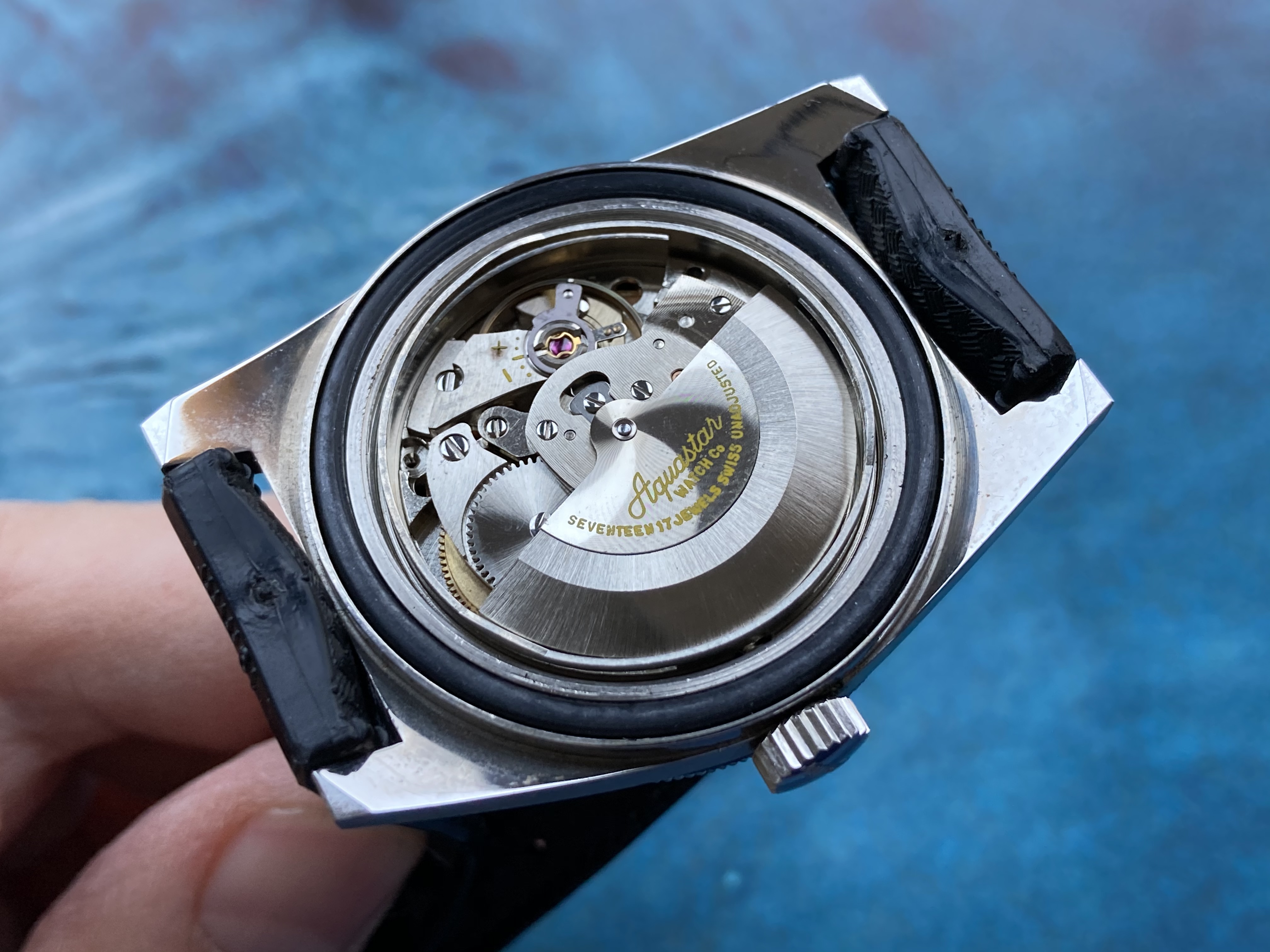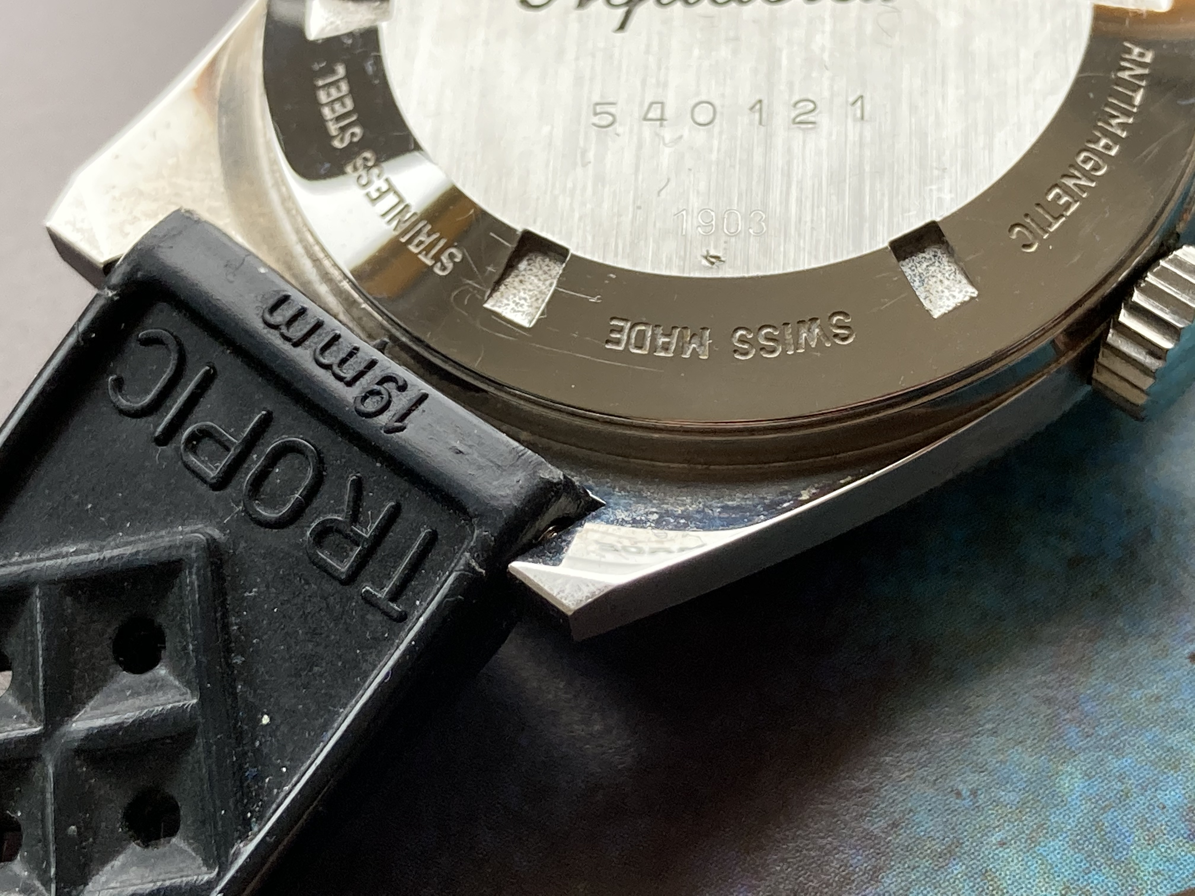 Exactly the same like the Omega version pictured in AJTT (above) but signed Aquastar on the dial.