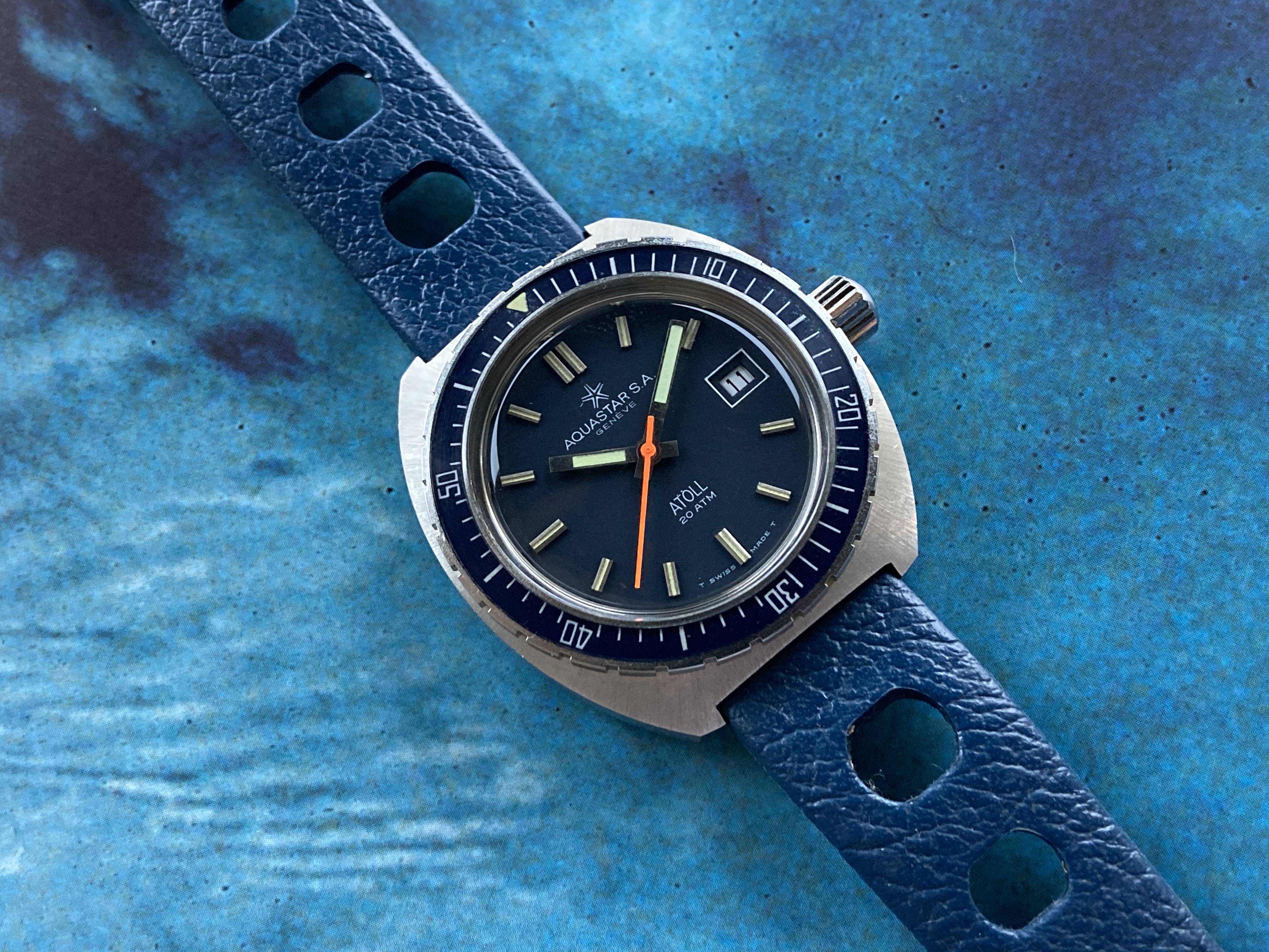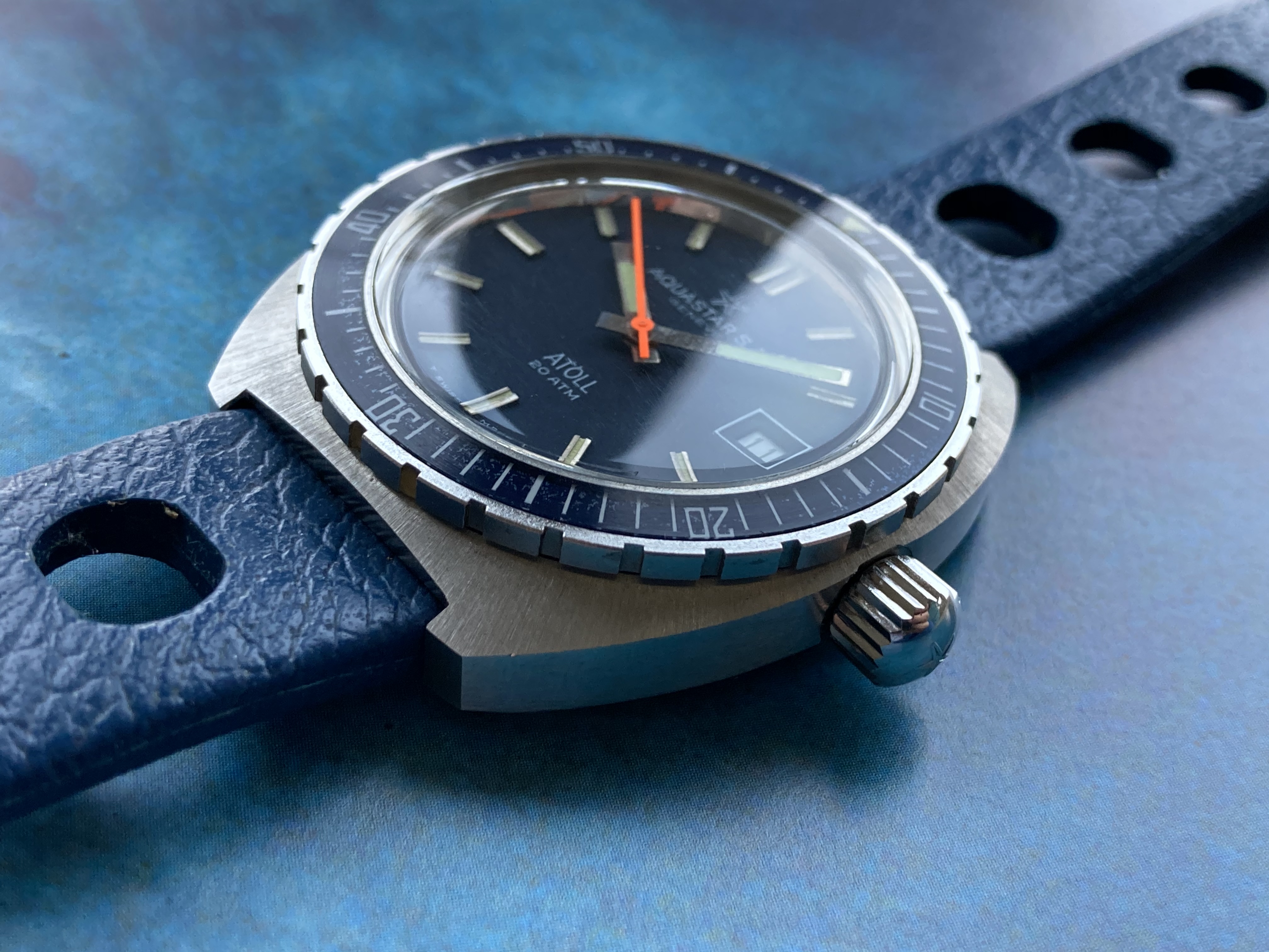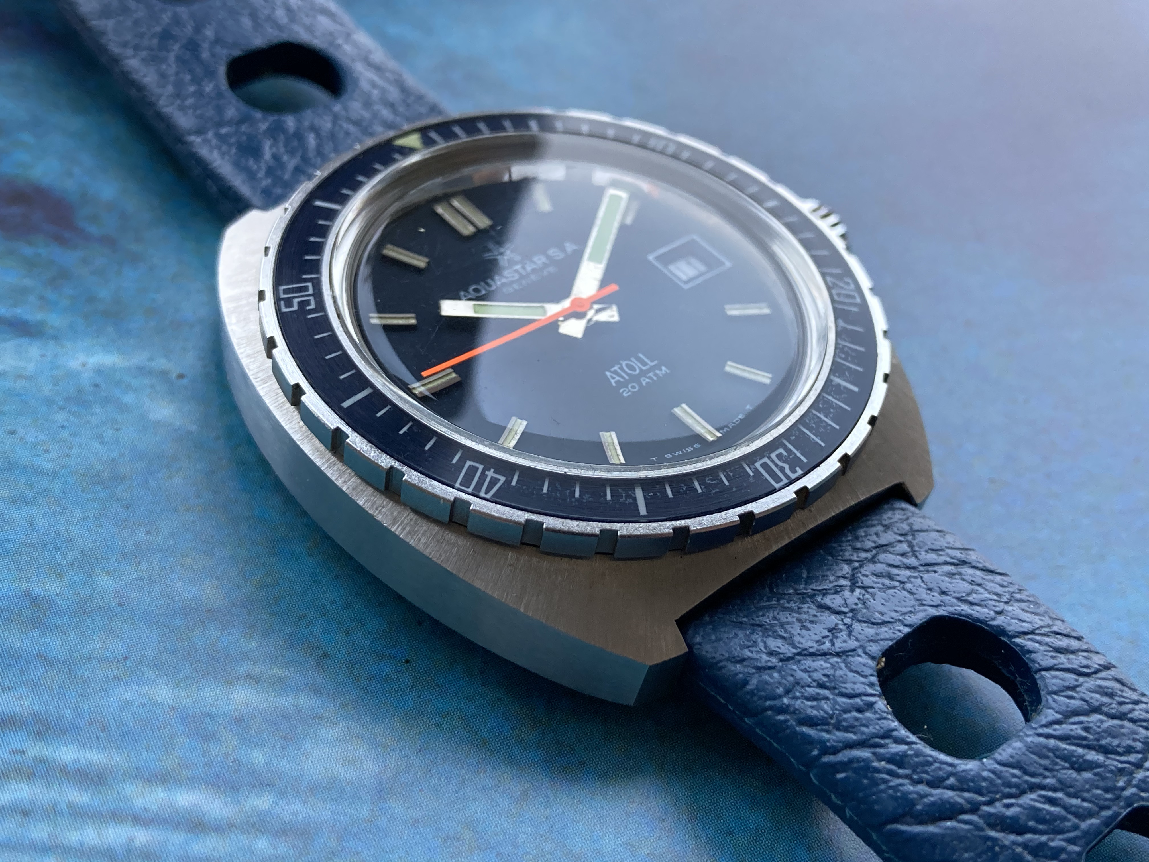 I have something special to offer for sale - all the items come from the same person who happened to work as salesman at Aquastar back in the 1970s and when he left the company, he could keep the demo watches he had in his sales kit. I will not claim them to be NOS, however I am sure for many of you, they are.