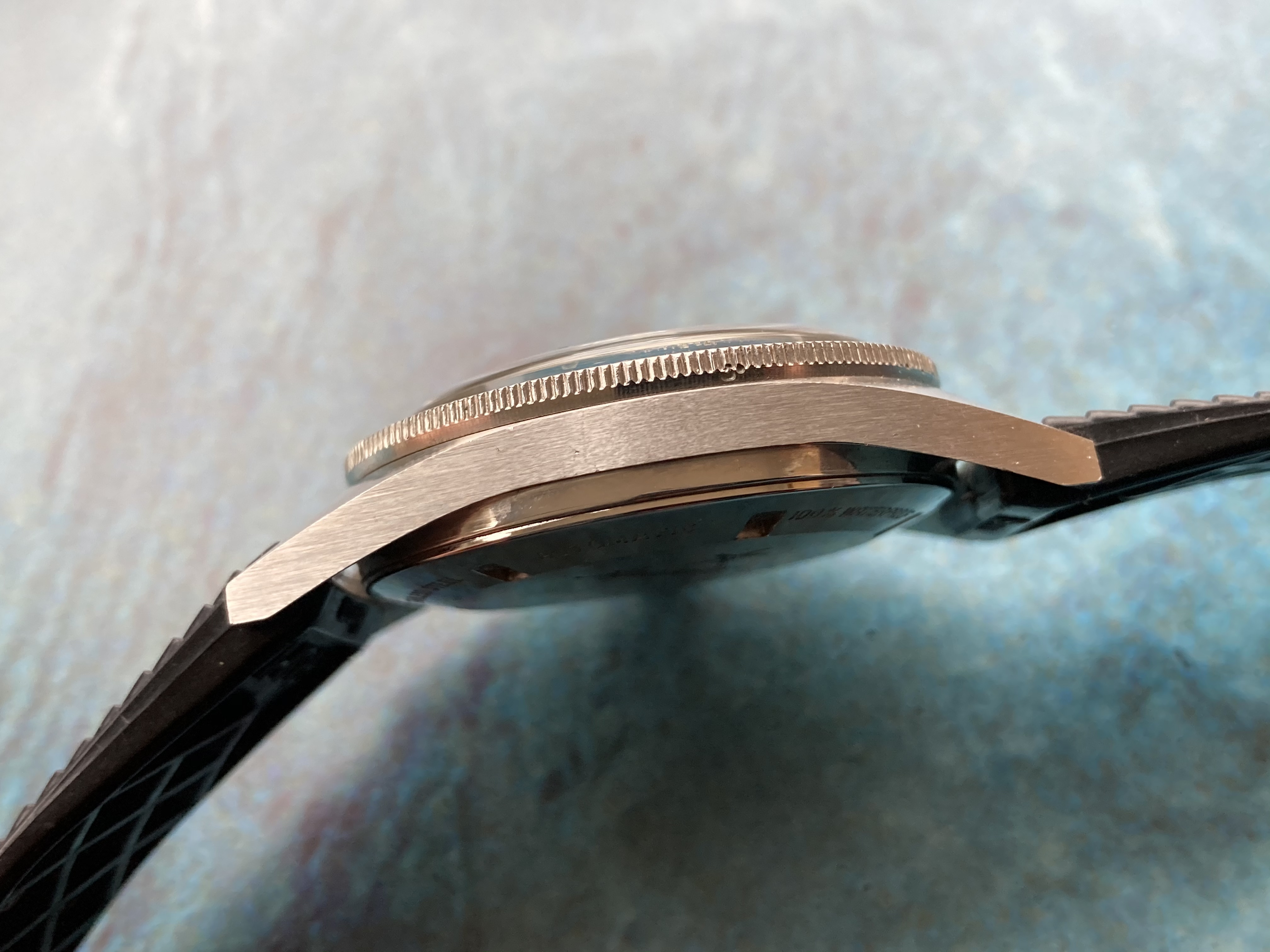 Overall great condition with almost no marks of use (not really wear as it was a demo item). Super sharp case. Perfect dial and hand. Braided vinyl strap.