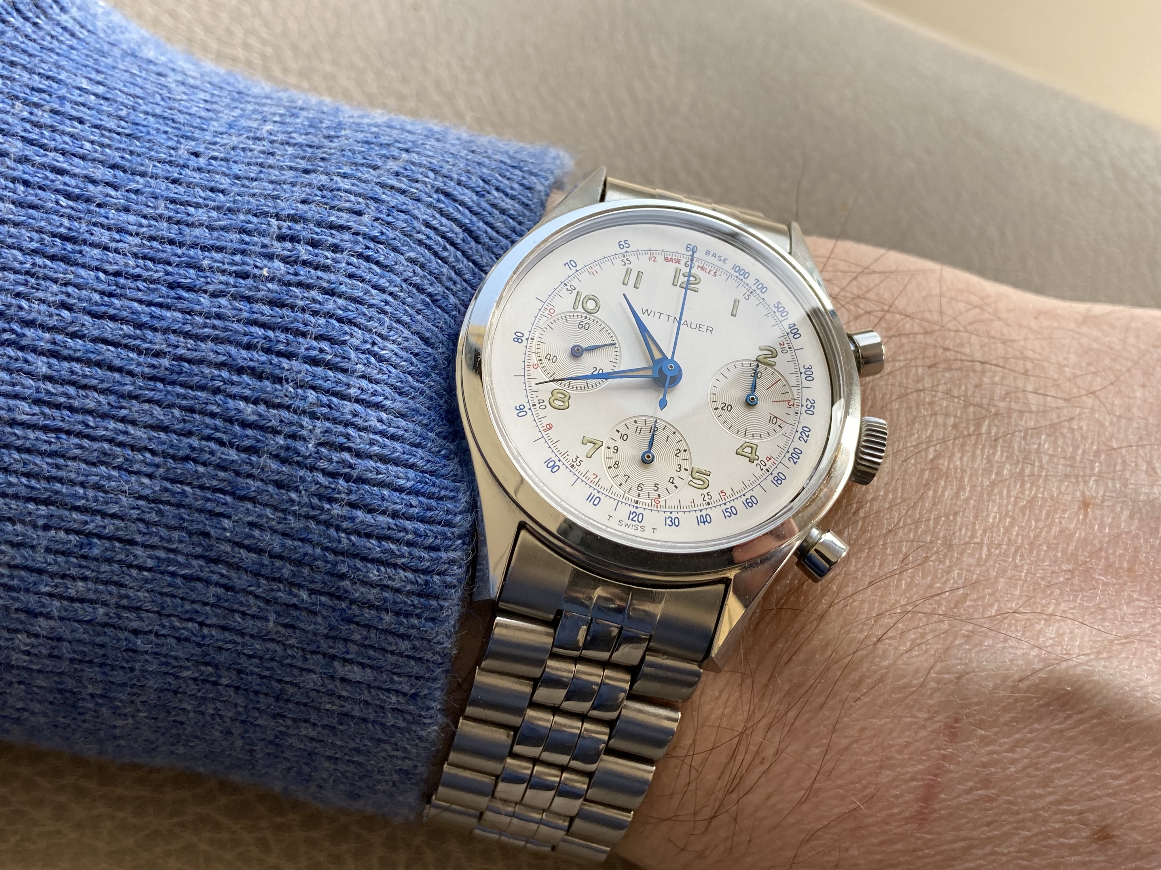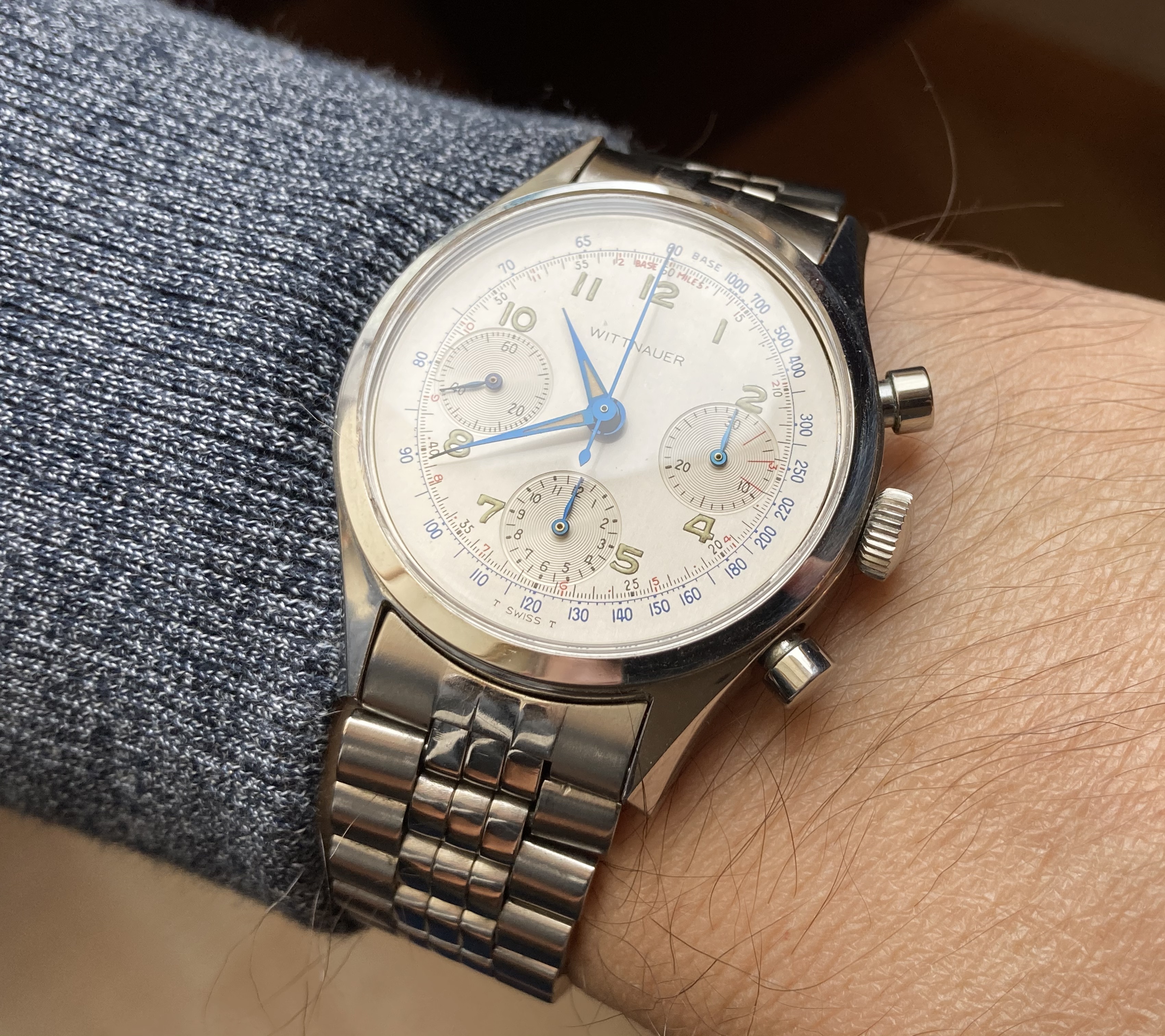 For sale comes an early variation of the Wittnauer 235T chronograph, predecessor of the famous 235T which was given by Wittnauer to NASA for their space qualification program in 1964.