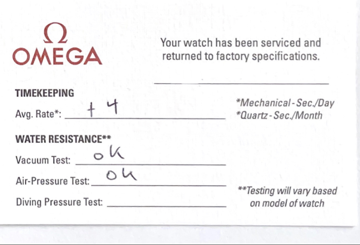 ·Hello gentlemen, just got my vintage speedy from official Omega repair center via Korean central Omega AD and they did not include any time related information - ie - how accurately the watch is running. When I asked - they were suprised - that I am a first one to ever request that. Is that normal?