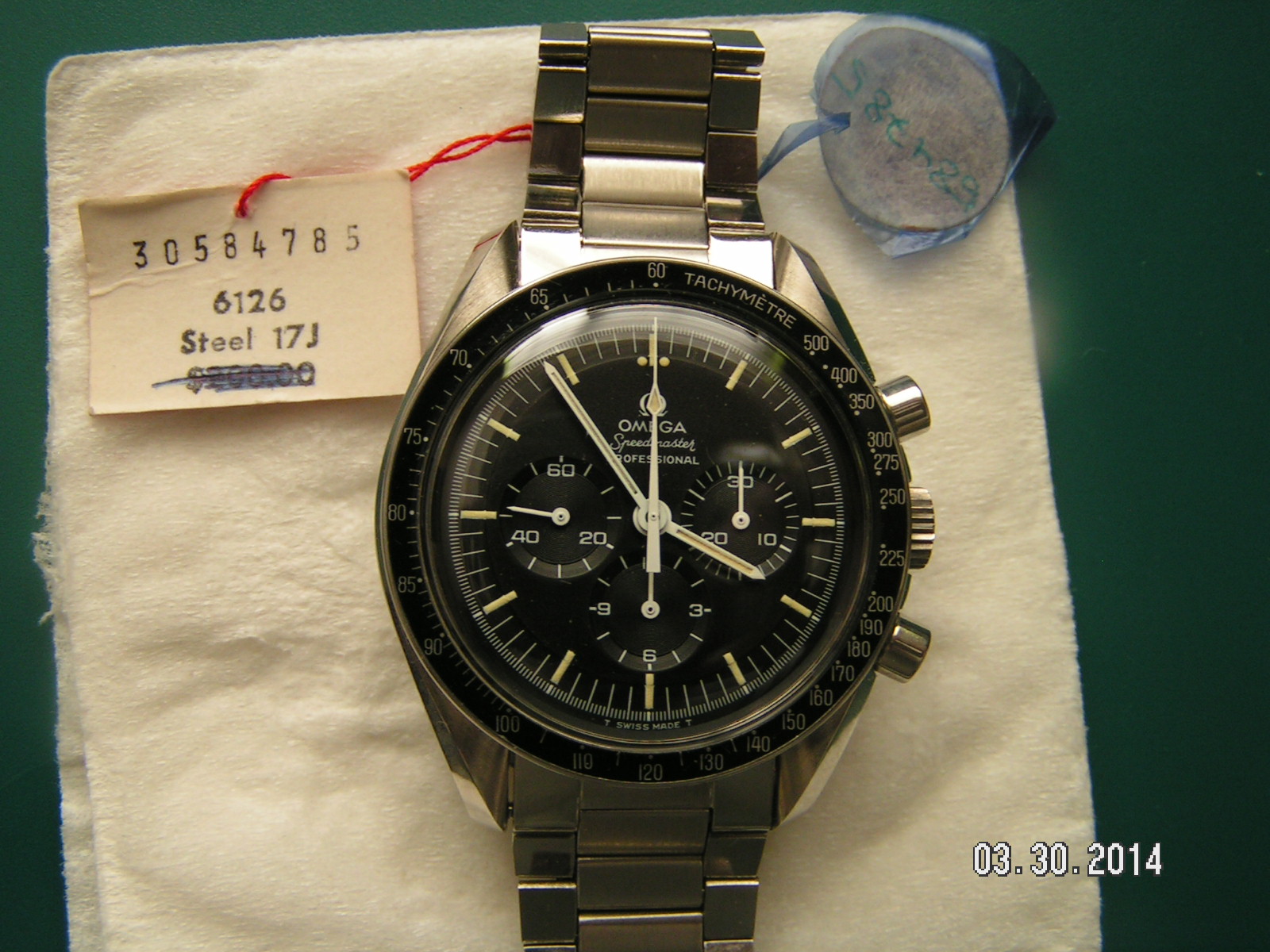 ·Offered for sale is an Omega Speedmaster Professional, reference 145.022-68/69 Transitional judging by the serial number printed on the original hang tag, and DO90. It was presented to my late father-in-law as an award for his sales success with Turtle Wax. The red seal from the factory is still intact on the reverse, although it is wearing thin from handling. It has never been serviced, or worn. It has been in the family since it's presentation in July, 1971.
