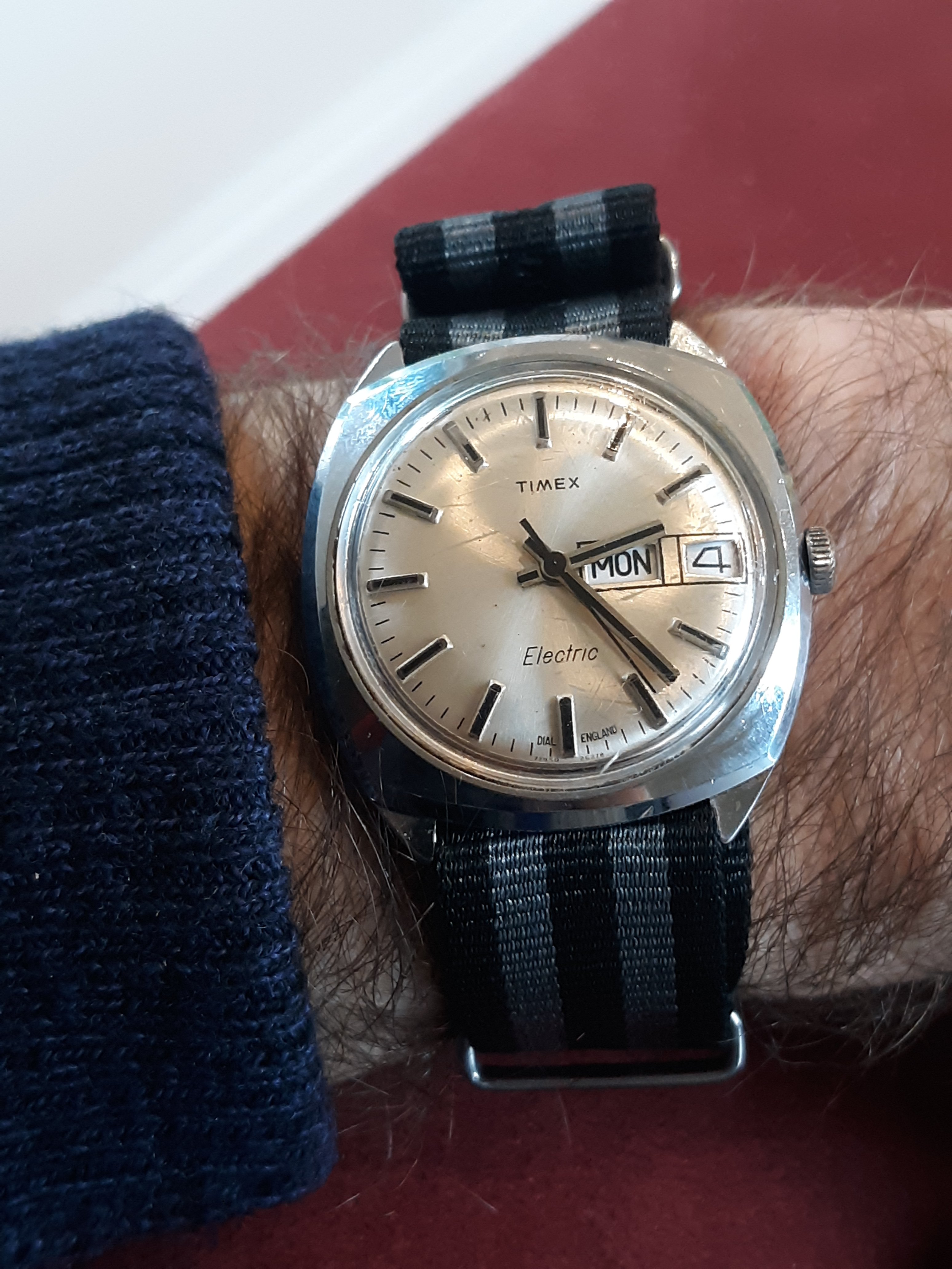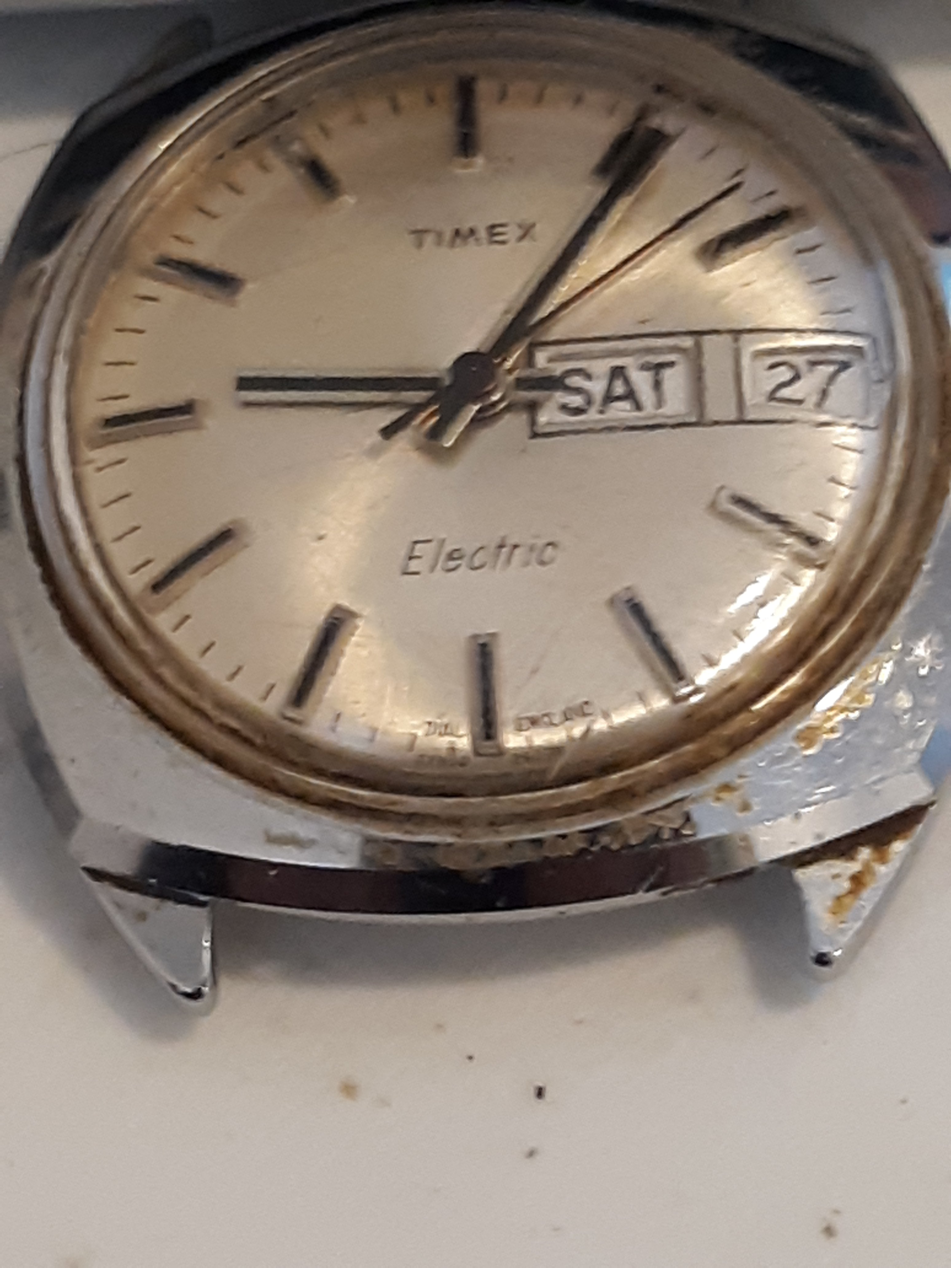 路Hi all, I found this Timex in a junk store, and put a battery in it. Surprise, surprise it actually runs. I guess it can take a licken and keep on ticken. I can set the time, but can't figure out how to set the day and date. I would be curious to know if anyone has more details on these. From electric-watches.co.uk I guess that it is a model 42.