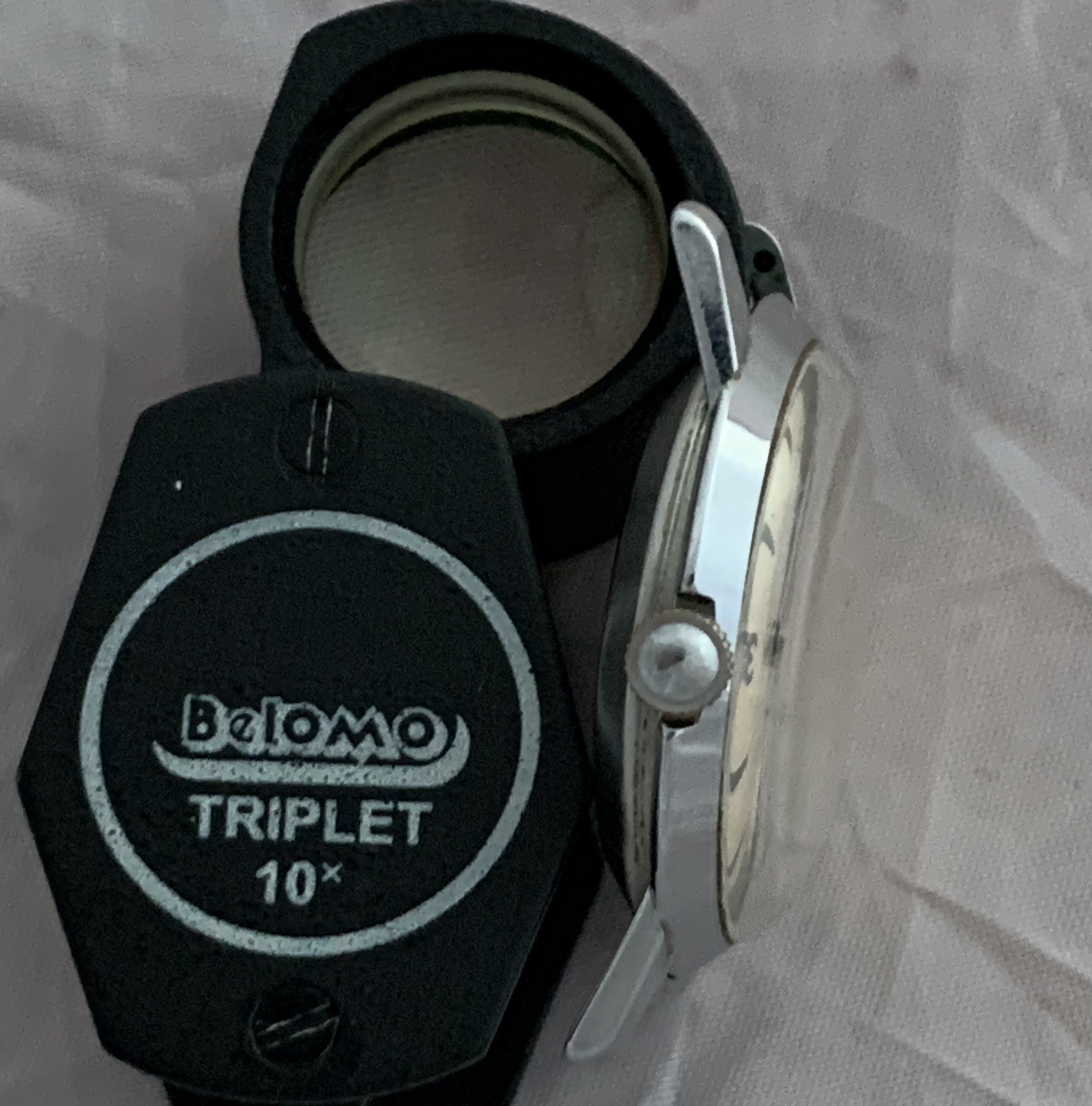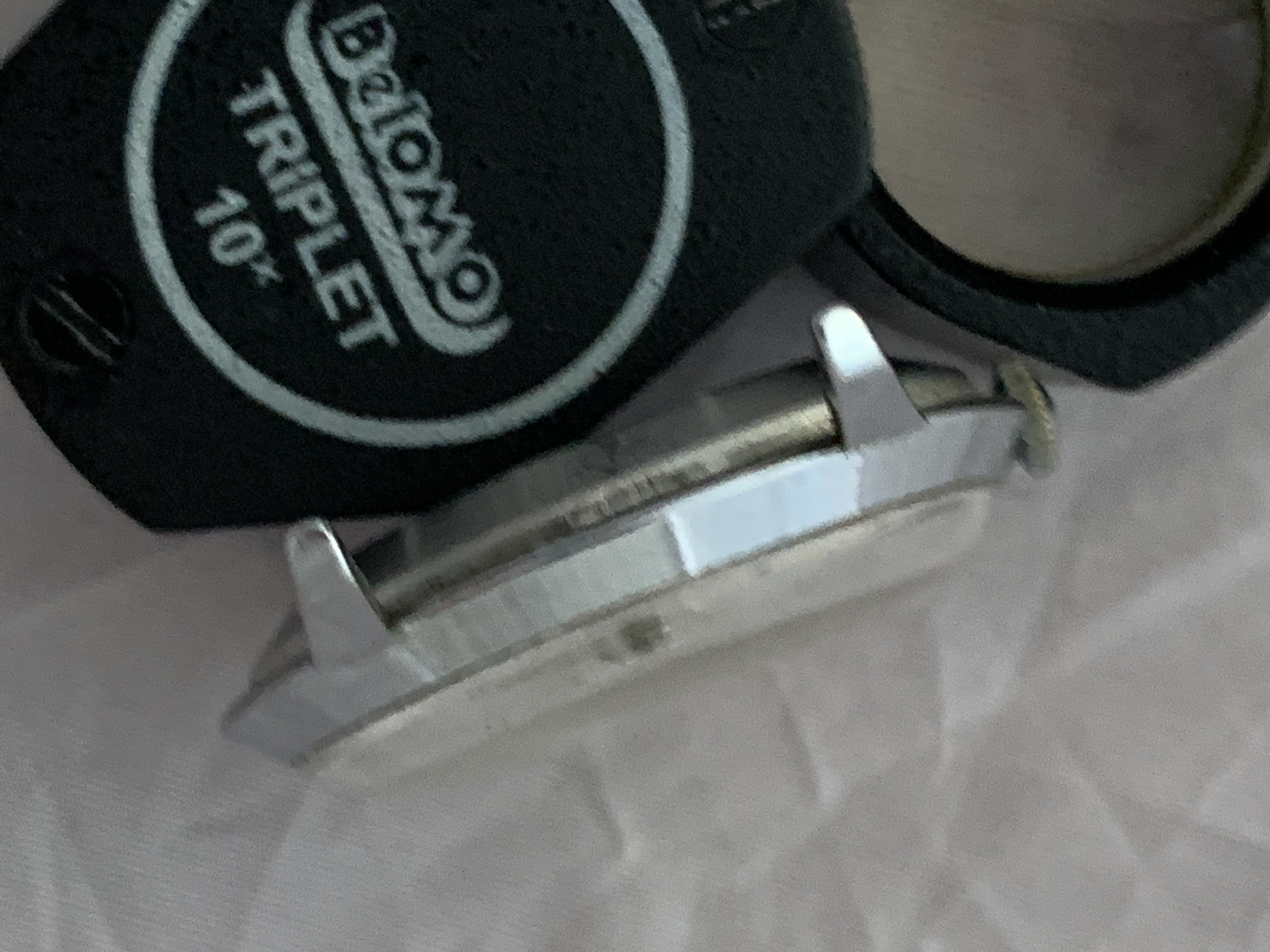 Lovely custard dial with a bit of patina adding some character. Applied indices really capture the light and look dope 😎. Case measures 34mm without the crown, 42mm lug to lug, and is a slender 10mm tall. Lug width is 18mm so you’ll have plenty of strap choices - which is good, as the watch is sold head only. Because it is so lightweight, I believe this is a chrome case, but it has super sharp edges, and as shown in the photos, without the traditional chrome wear.