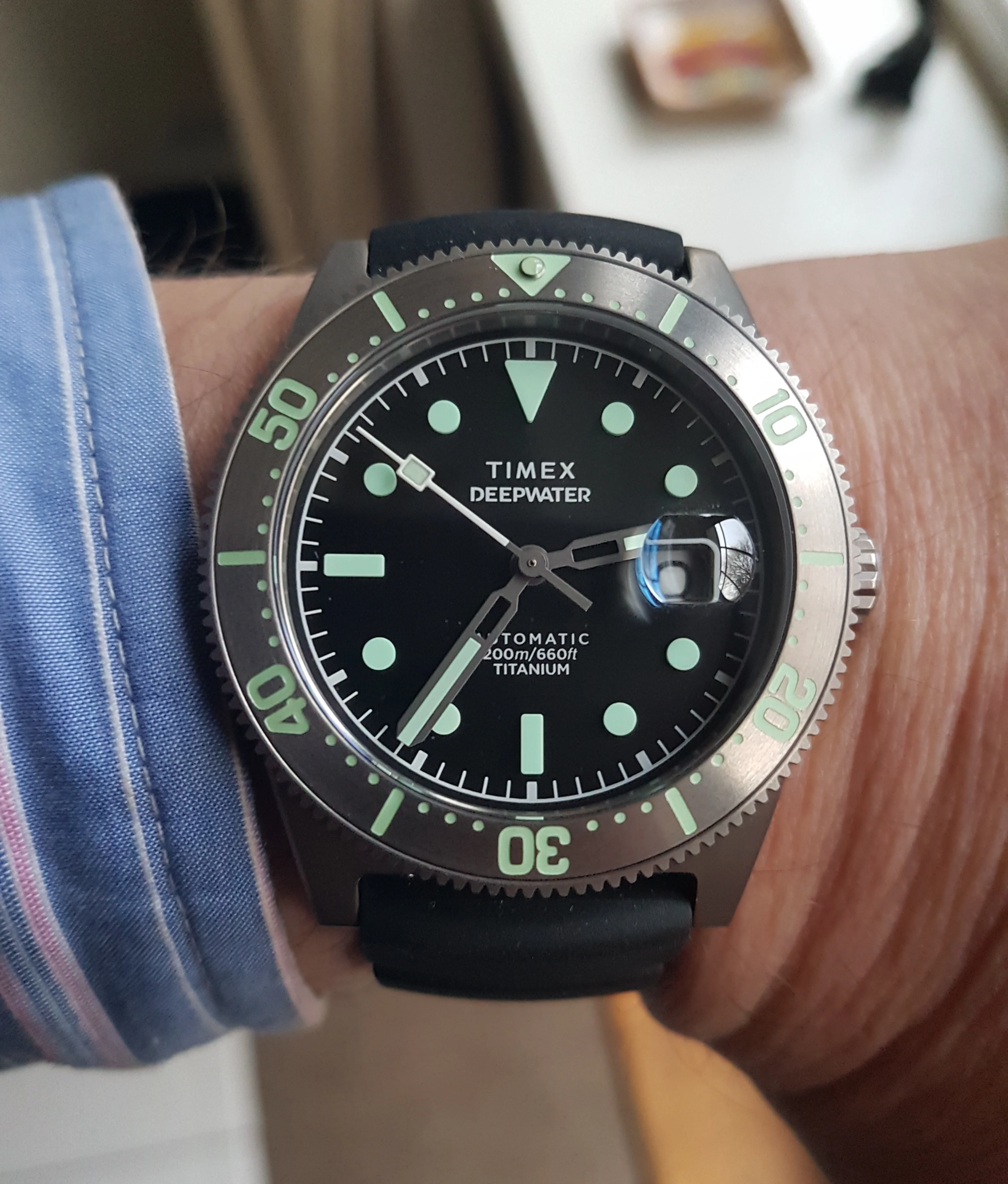 Deepwater Reef 200 Titanium - I think I got one of the last ones available on the web! Well known to have a problem with the hand lume - a design fault apparantly. 🤷♂ Anyway I blame WatchChris's excellent YT videos for this purchase. (Bought the yellow quartz version too)