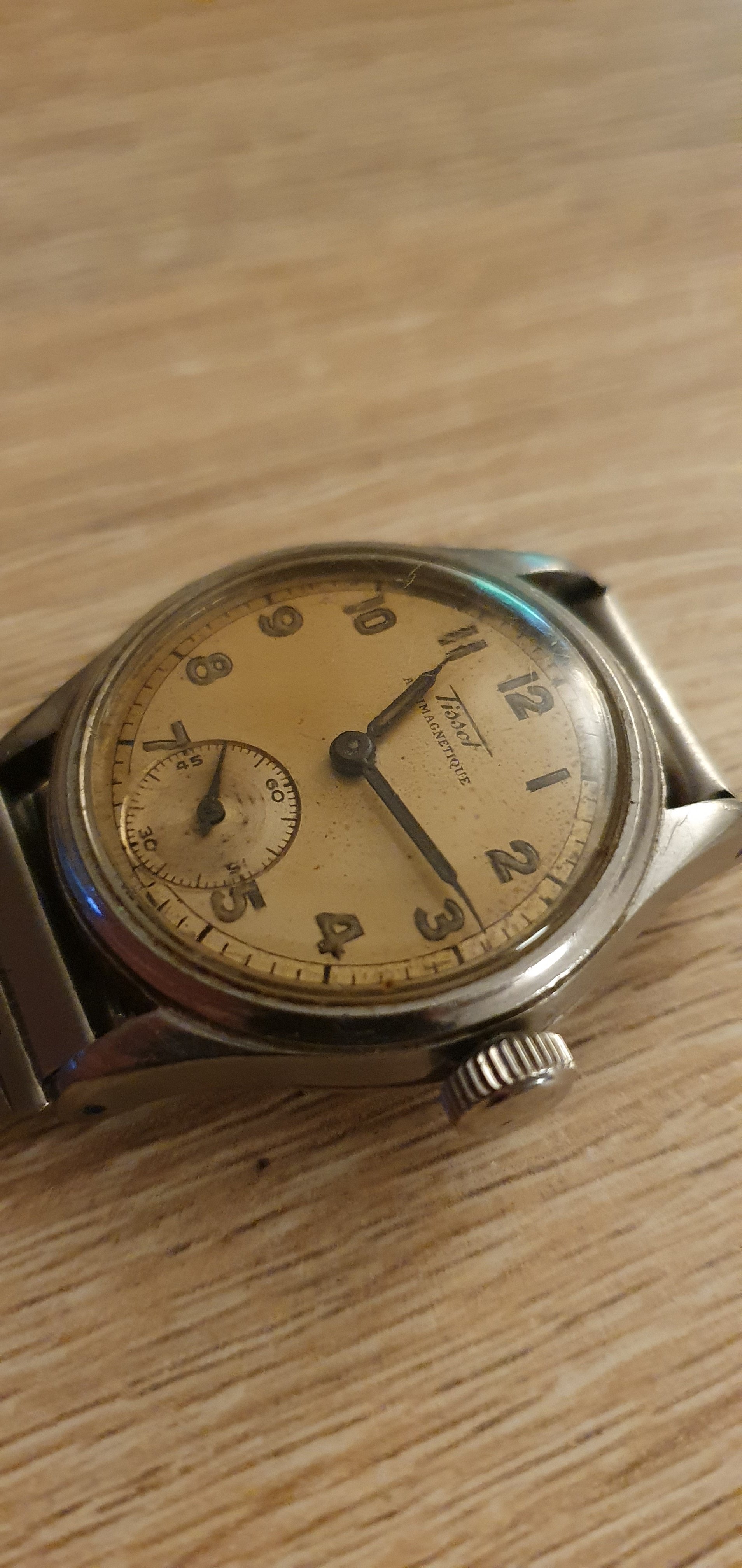 The watch appears to be keeping Tone ok and has some nice patina on the dial.