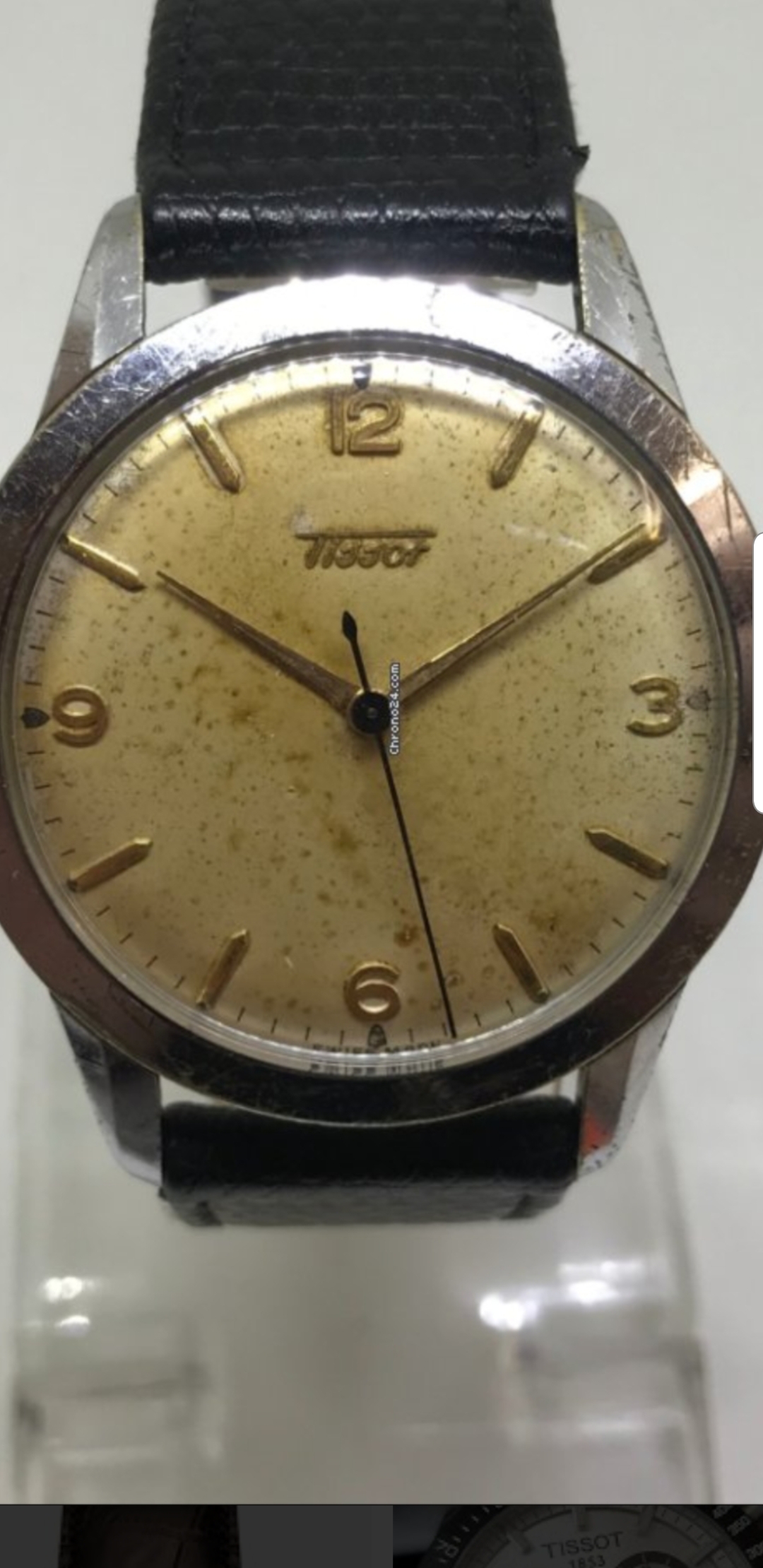 I'm looking at this jumbo Tissot (never had a tissot) from the 50's. Looks very nice although the case is polished. But what disturbs me is the fact that the 'i' in tissot does not have a dot while most examples I saw on the web have a dot. What do you think? Ok?
