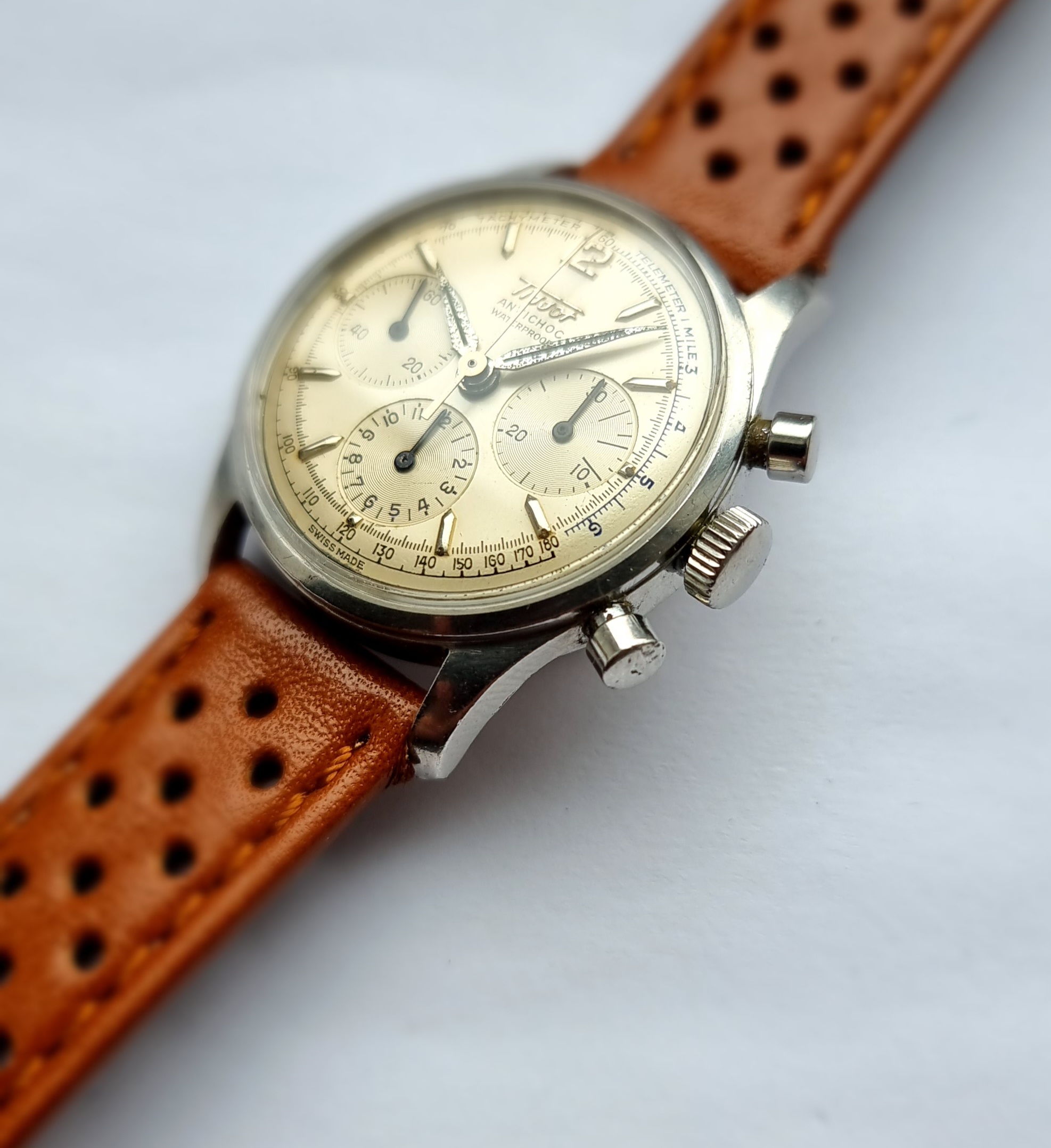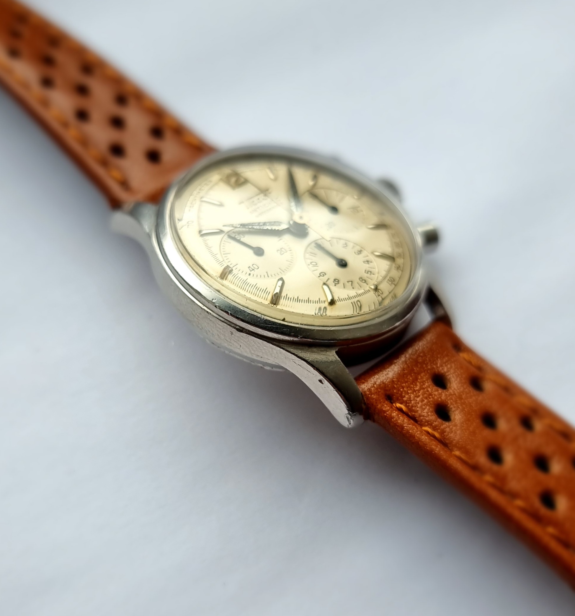 The Lemania cal 1280 was serviced this month by Simon Freese, and has the remainder of the 12 month warranty.