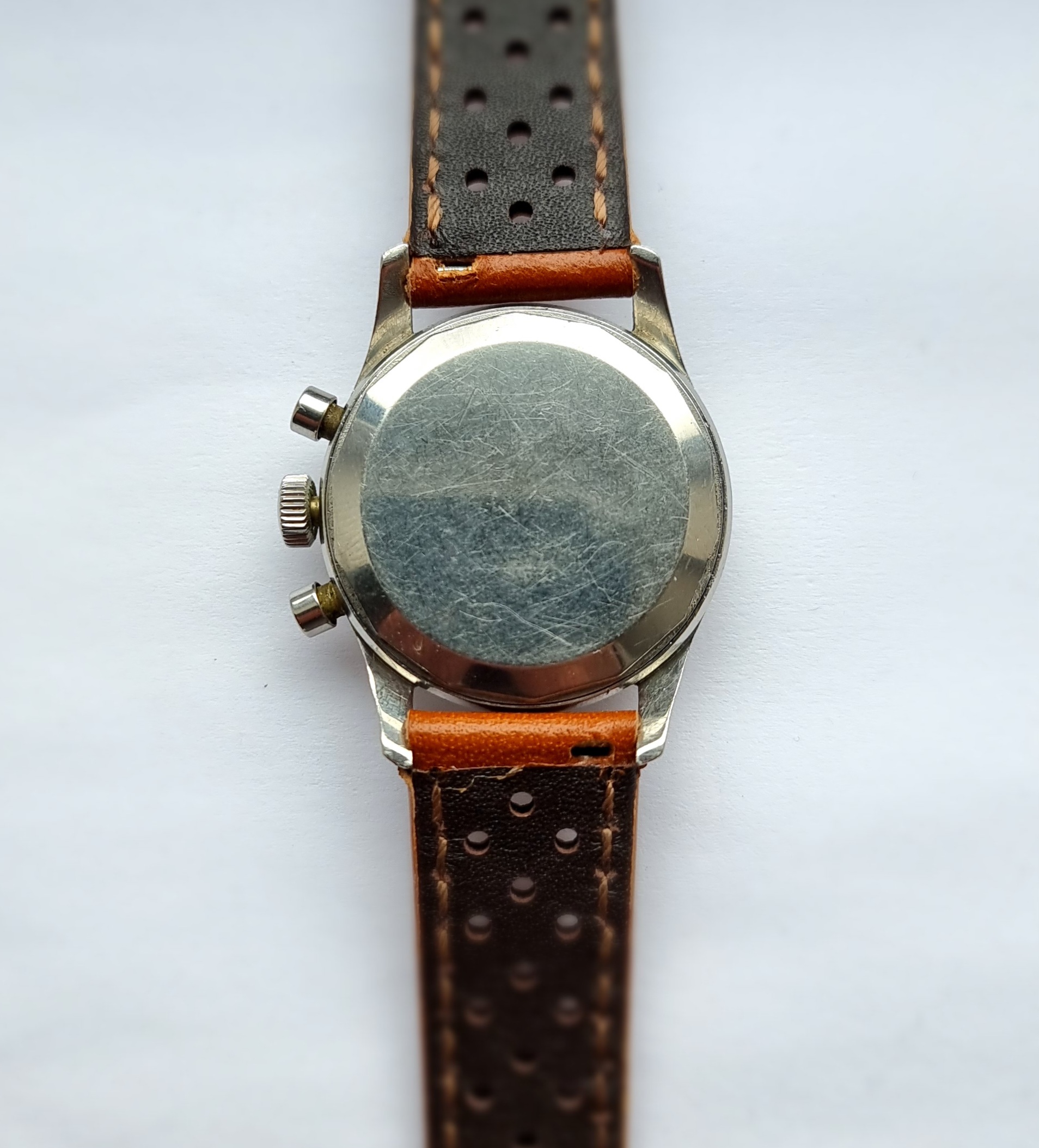 The stainless steel case is 33mm exc crown, and is in good shape for its age. I think these date to late 50s, early 60s.