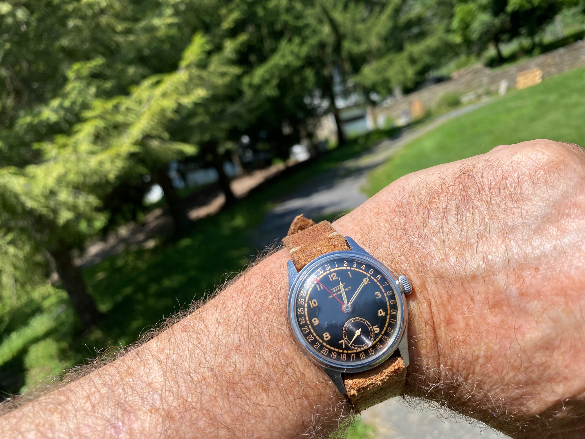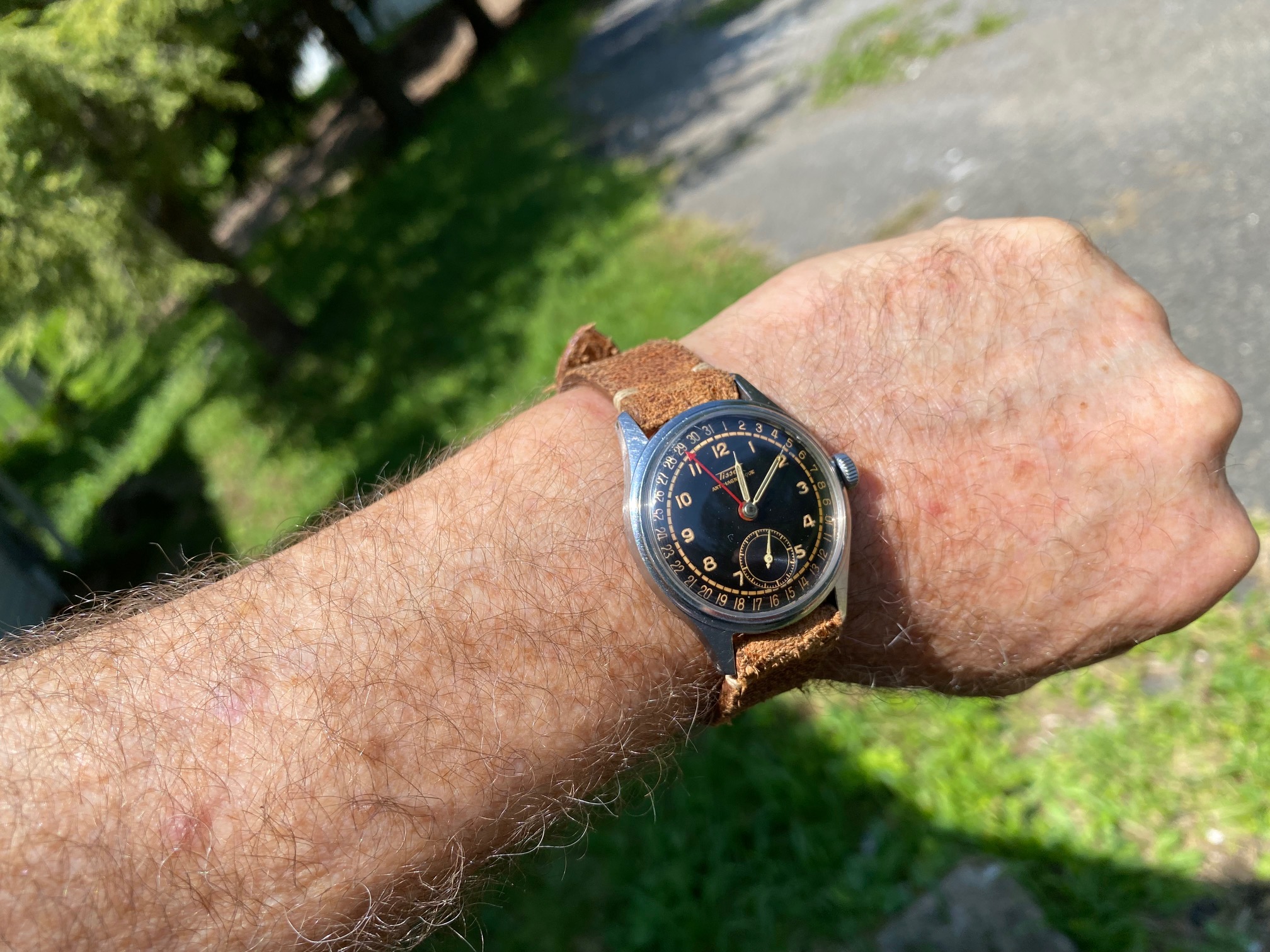 Movement: Looks good and keeping good time. Pointer snaps into place at 12:00. Service date on inner back cover reads (I think) 27/7/15. So maybe it was serviced in 2015? I cannot guarantee this and would have your watchmaker take a look if you plan on wearing it regularly.