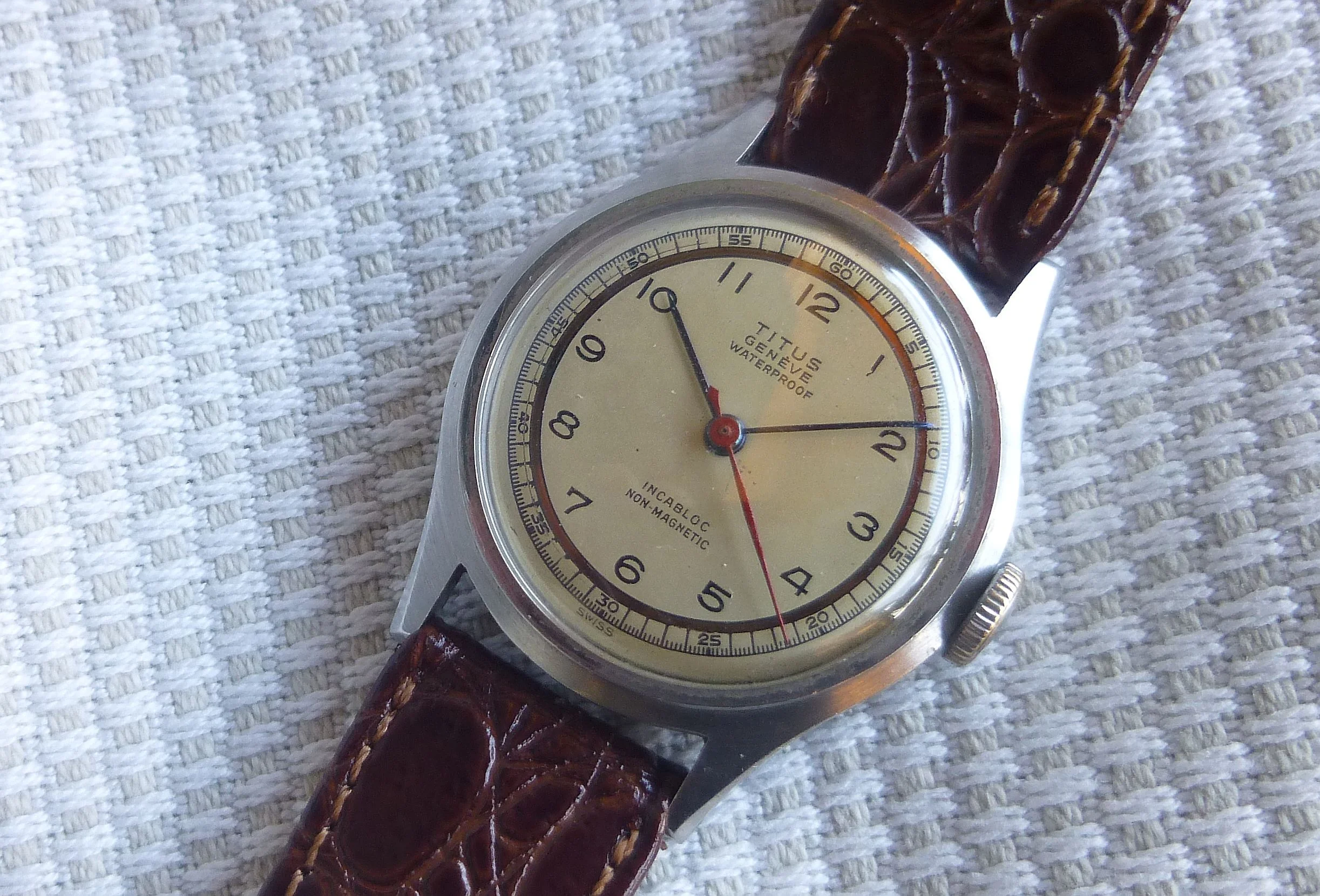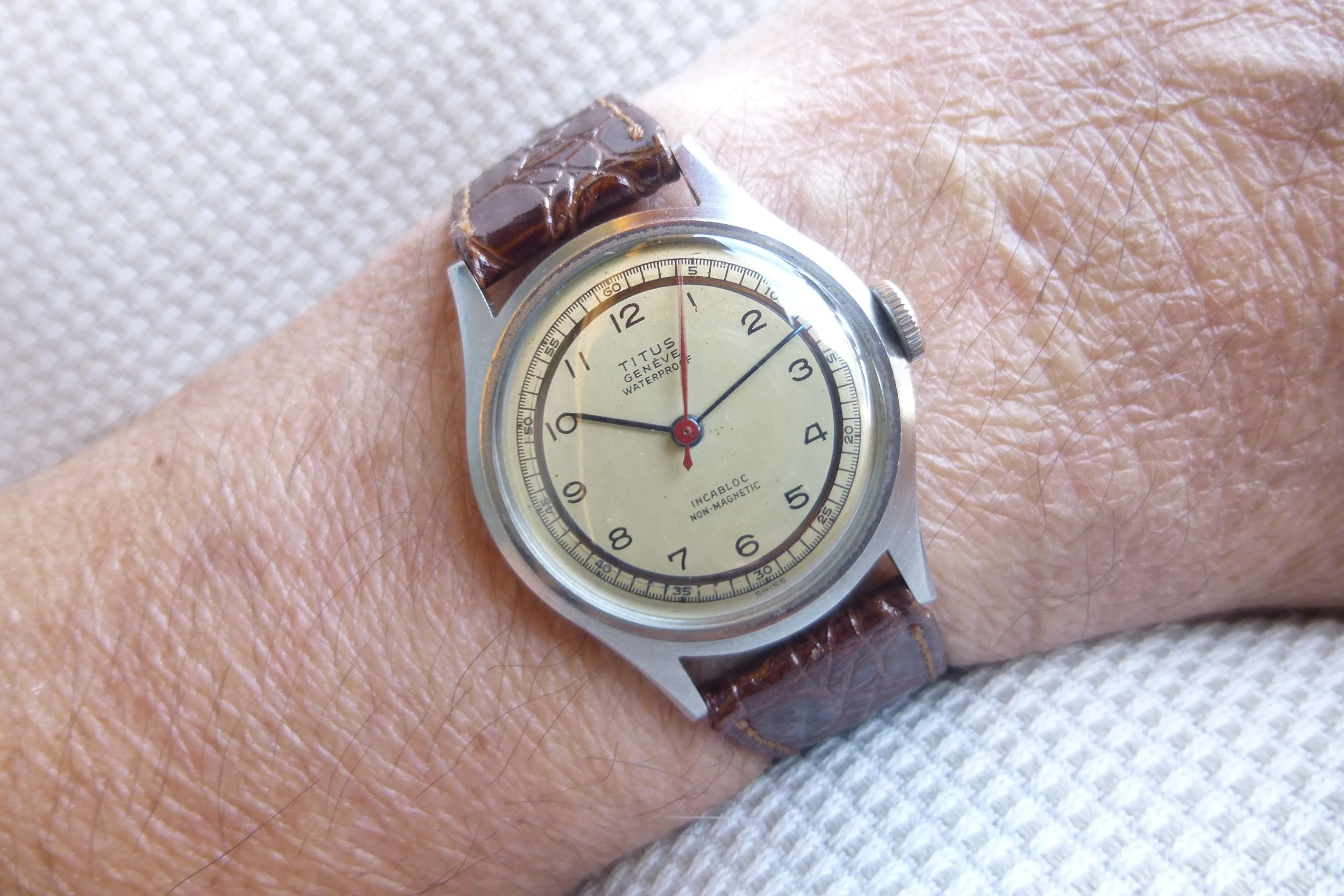 ·Well, it's not often I get excited when unboxing or in this case, unwrapping a watch. I have to tell ya that I'm excited but there's work to be done. During my diving days, it was Dacor as my go to brand for regulators and other dive gear. This baby just landed today and I have to say the dial and crystal is in great shape and the case looks good too. The endlinks on the bracelet are a tad wonky and might need a little sympathetic bending. Thankfully I have a tropic strap that works. It definitely needs a service cause she's running pretty fast. The watch was made by Titus in Geneva and I think this one dates back to the mid or late sixties. It has an ETA 2472 movement. Next step will be to source a watchmaker to spruce it up, but in the meantime I'm pumped!