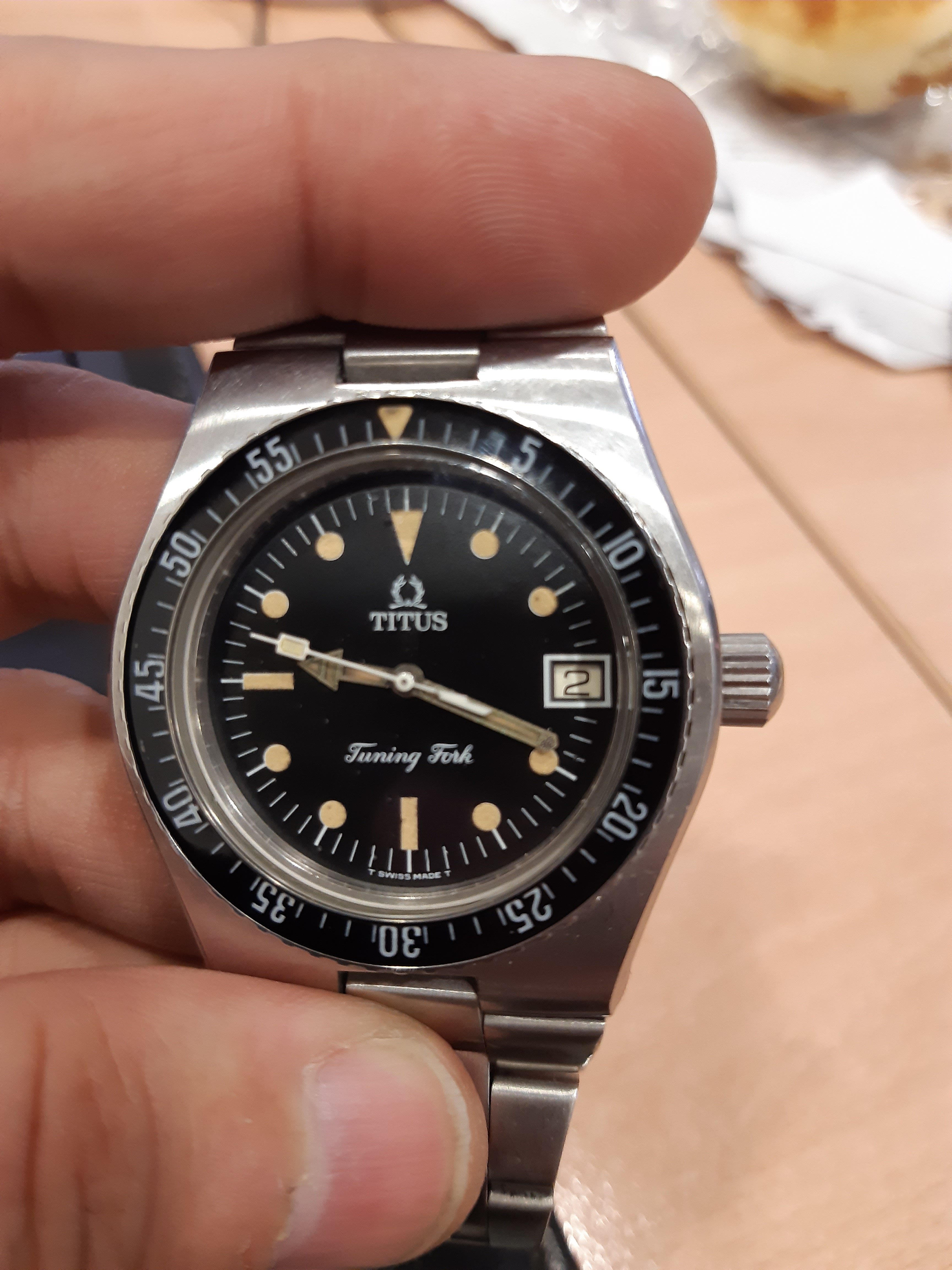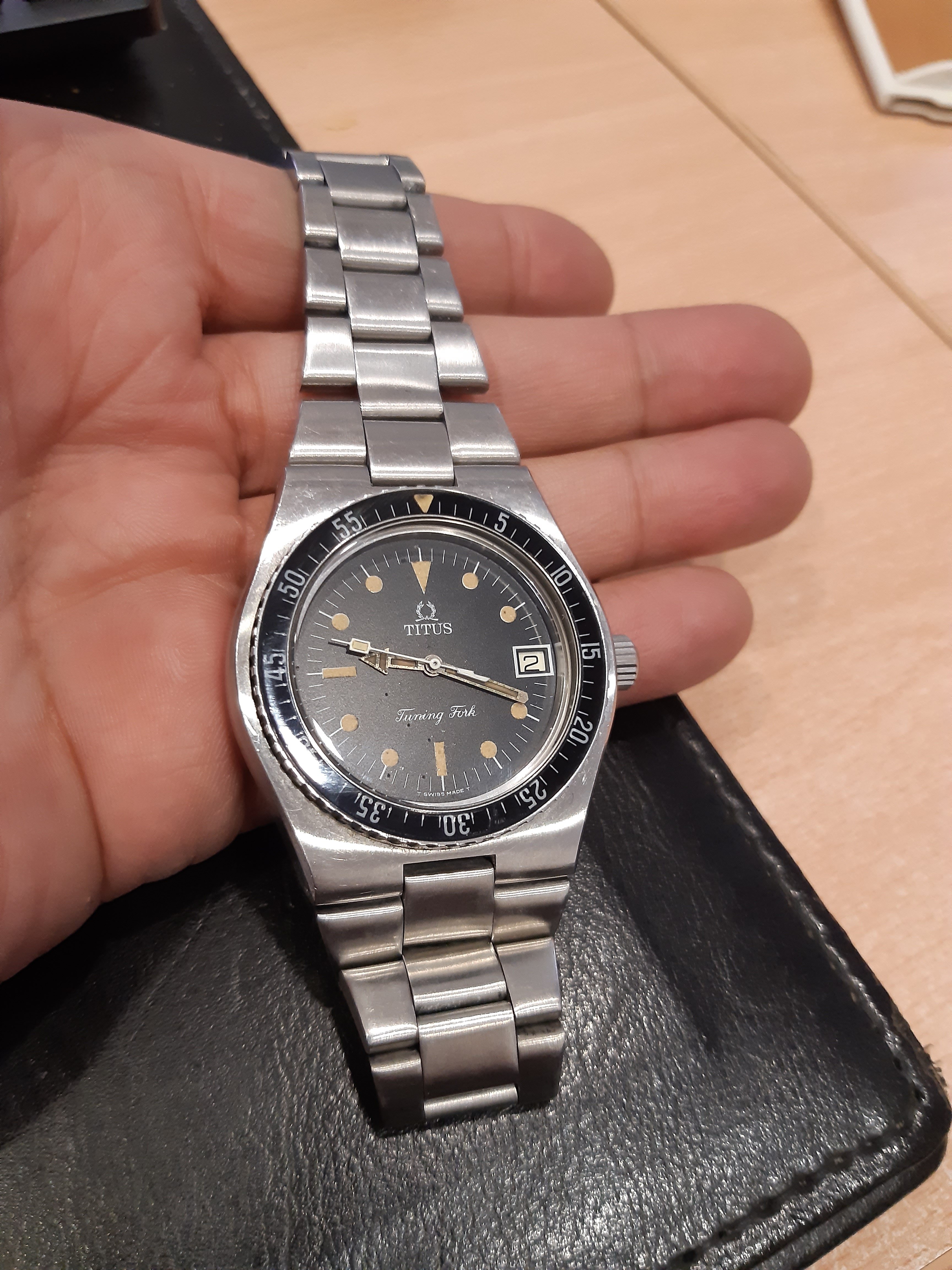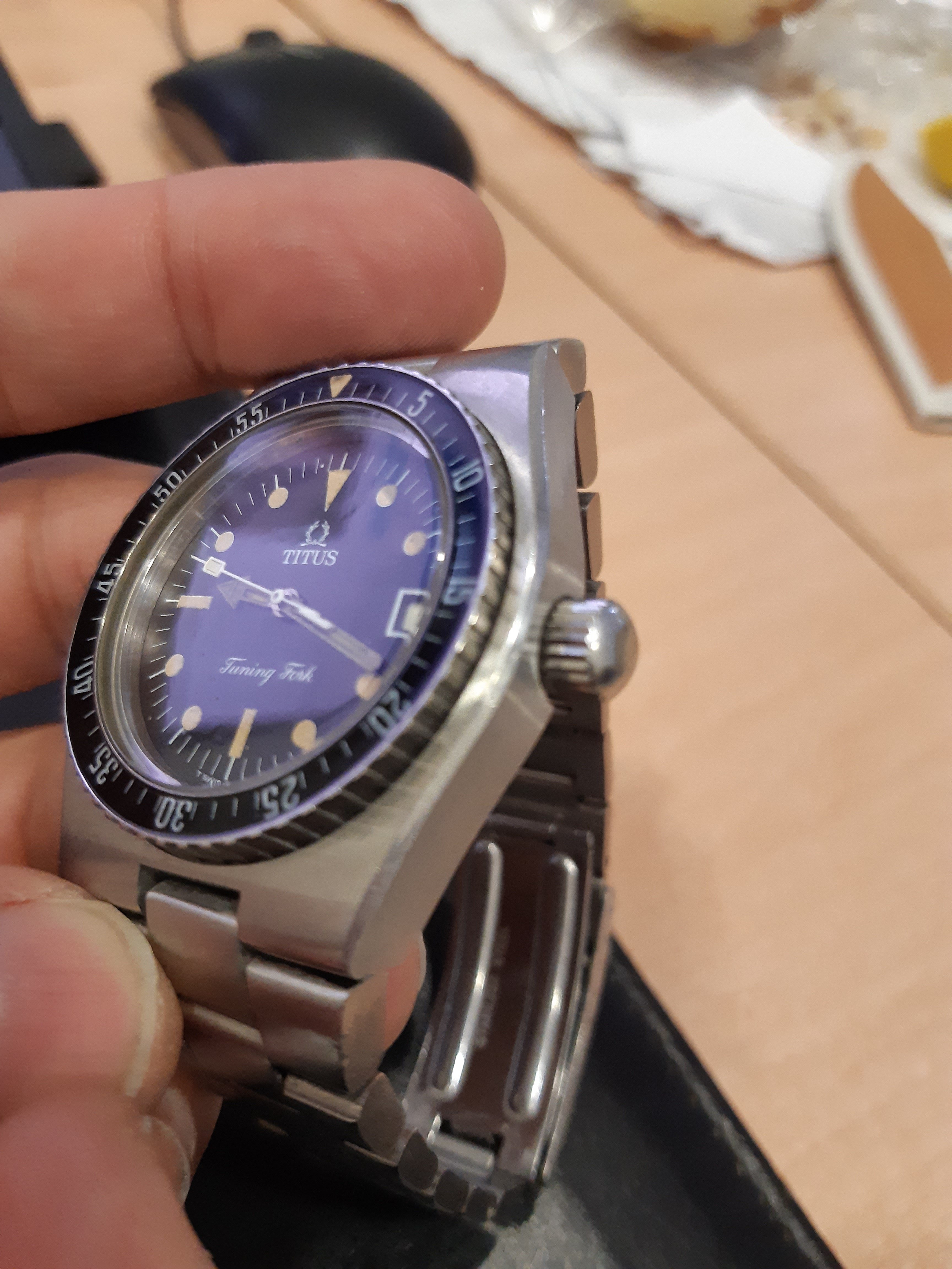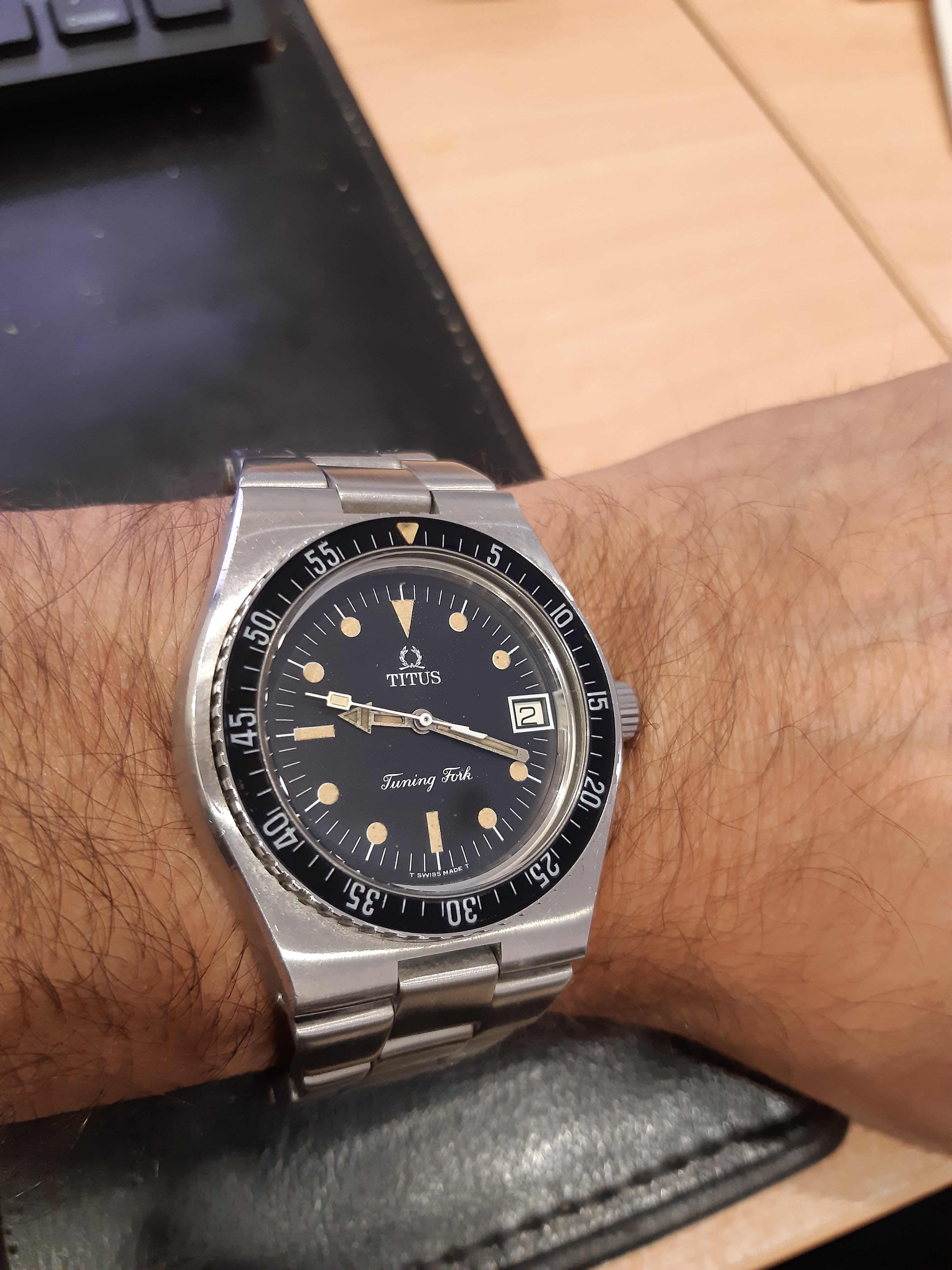 my latest watch Titus TFD ESA 9162 ,solid as rock,brother of SM 300f ,Bakelite bezel,big crown