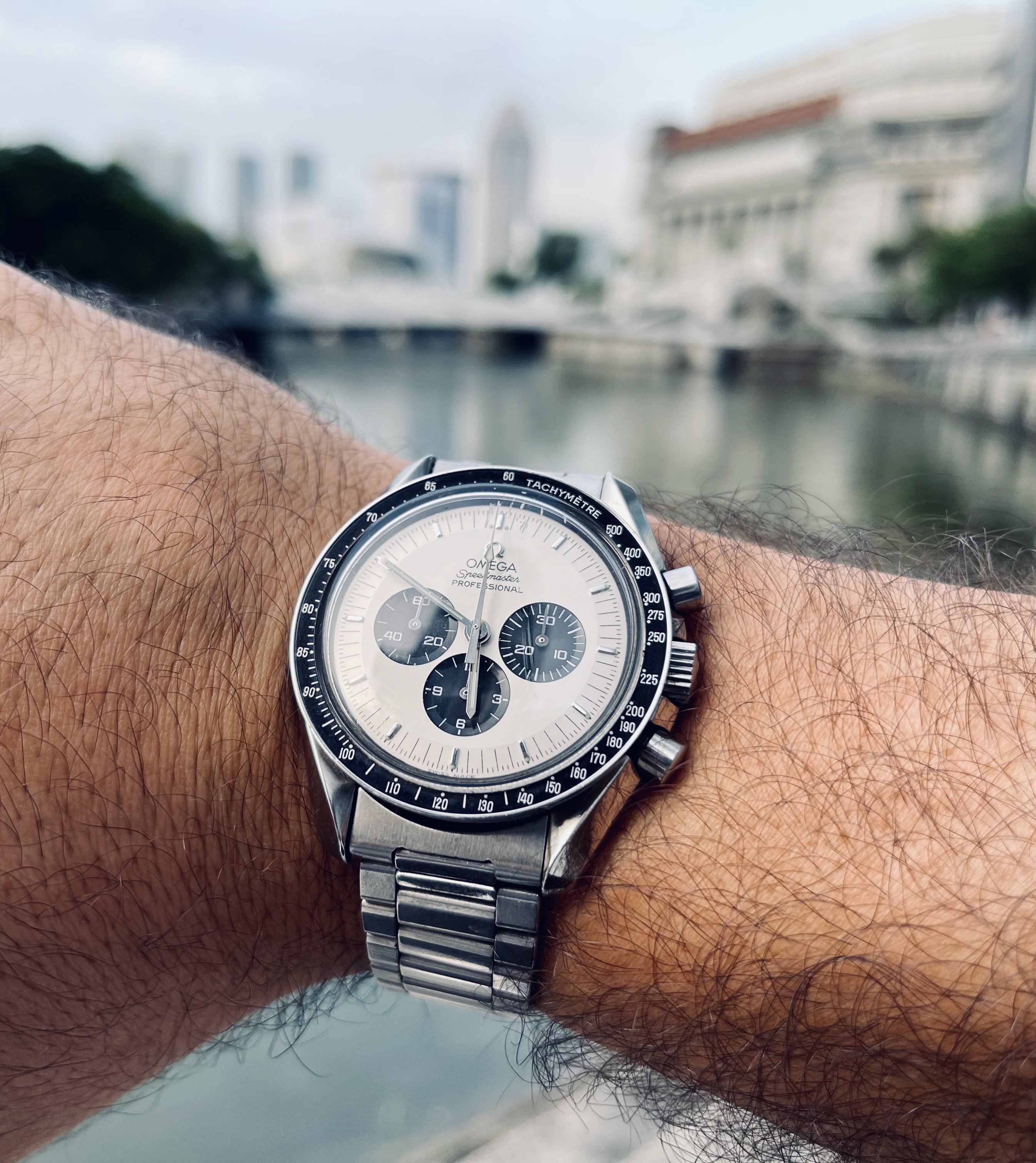 Originally, I bought the dial and hands with the intention of buying another cheap donor Speedmaster Pro and swapping the dial over, so that I could own two Speedmaster Pros, one normal and one with the Mitsukoshi dial.