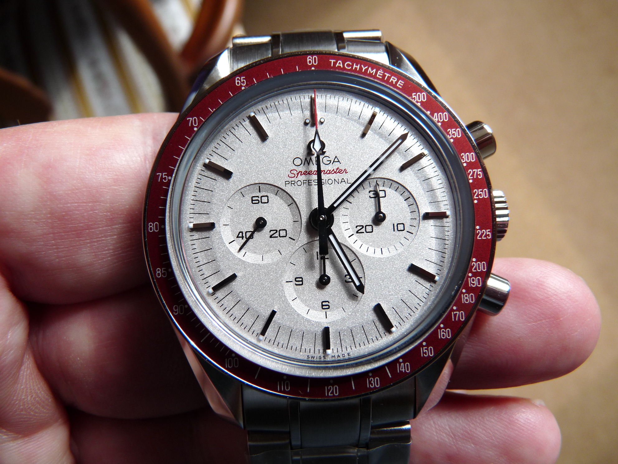 I've got both the red and green (sorry for the crappy photo). I agree the Golden Jade will be the more desirable one longer term because a) in person, it looks way nicer than the red and b) is it so unique looking within the Speedmaster Pro lineup