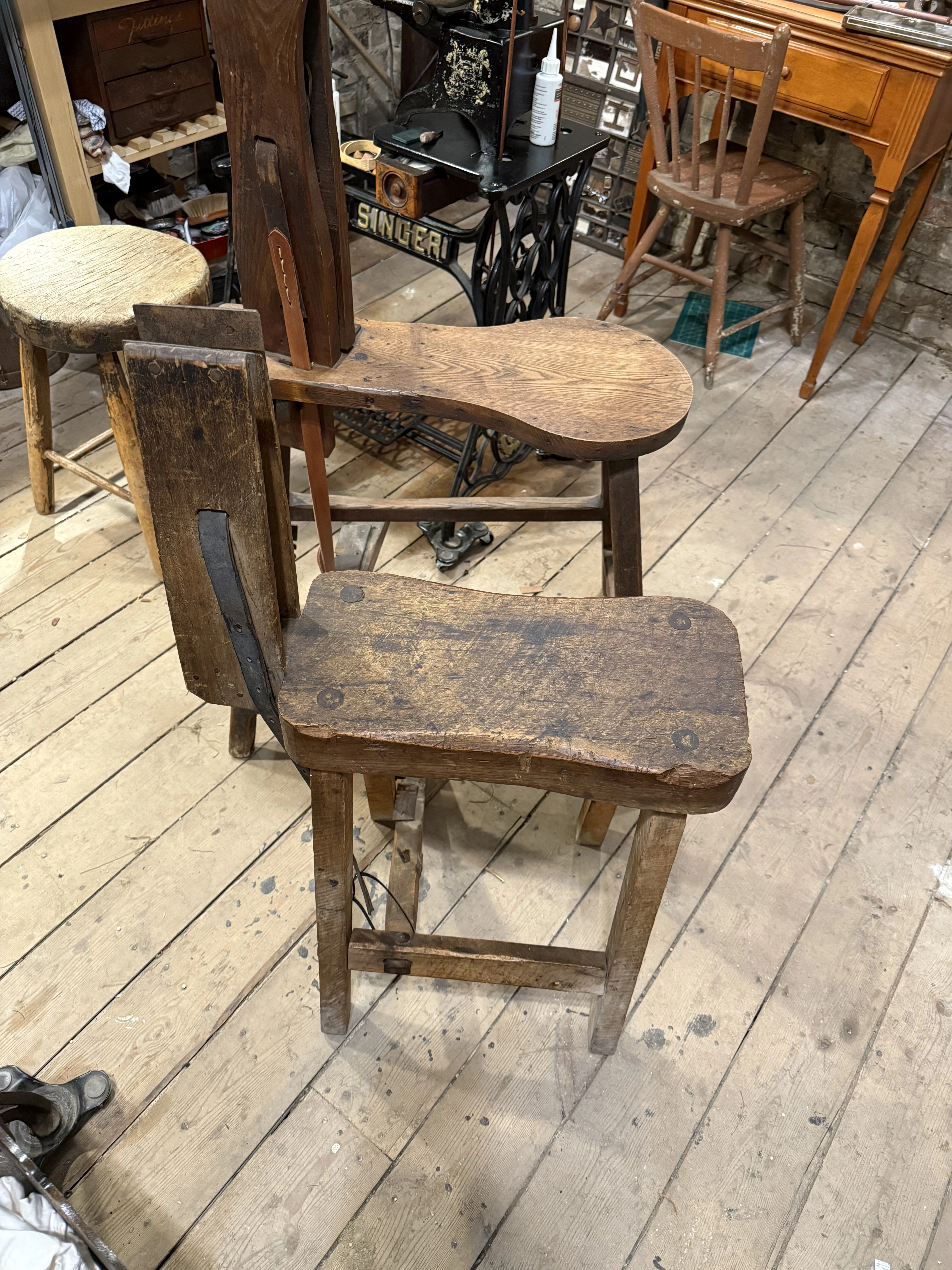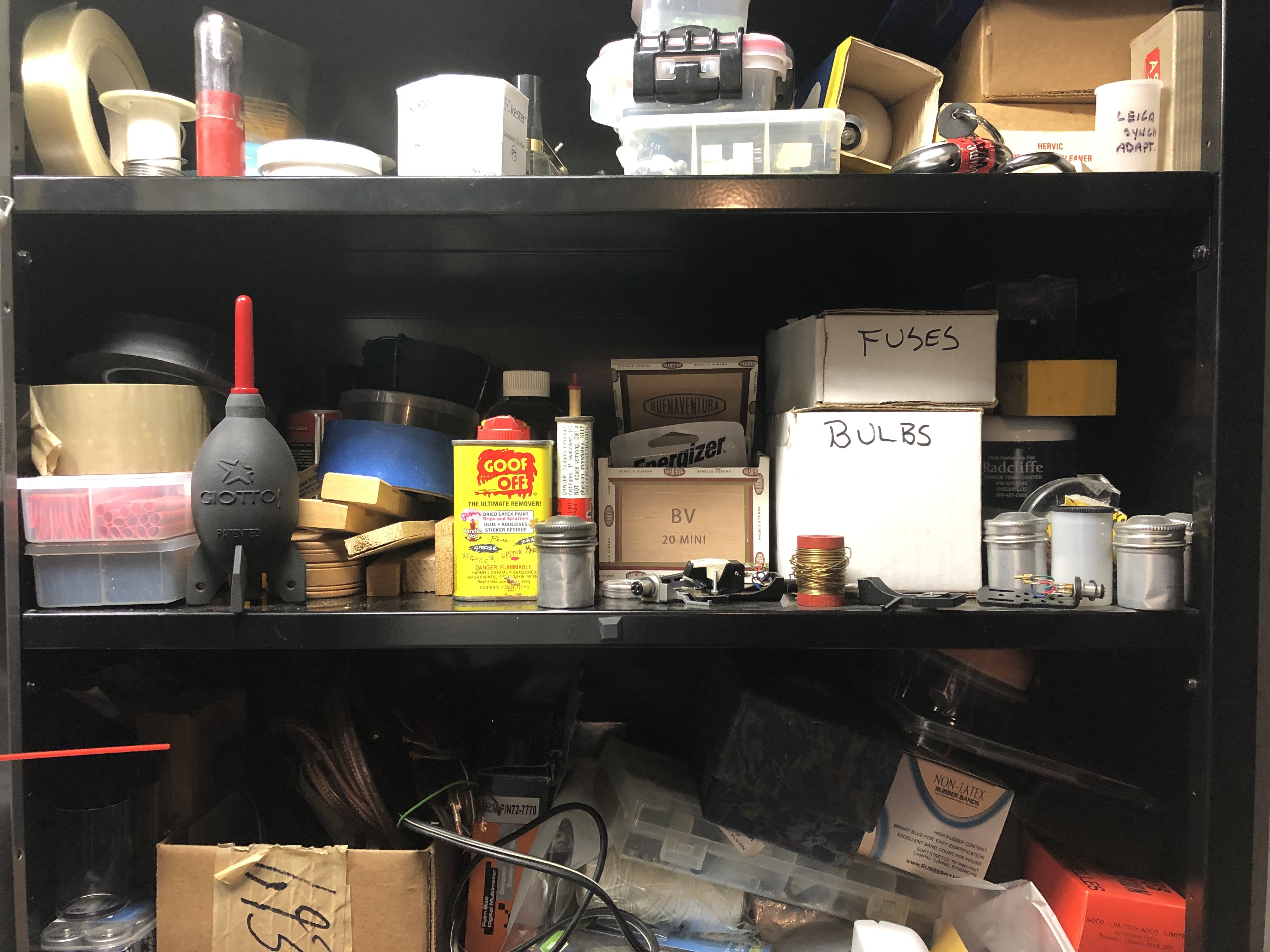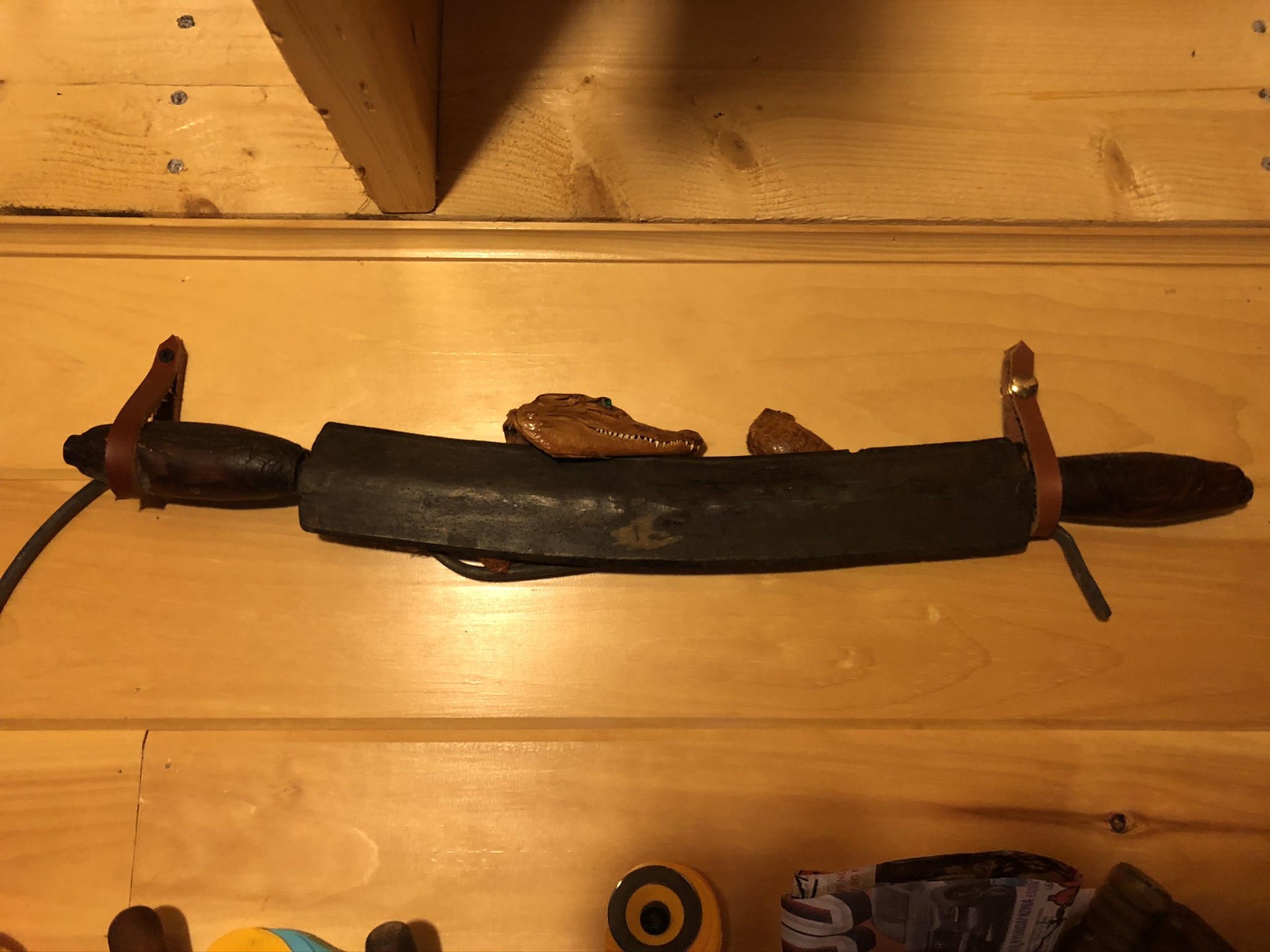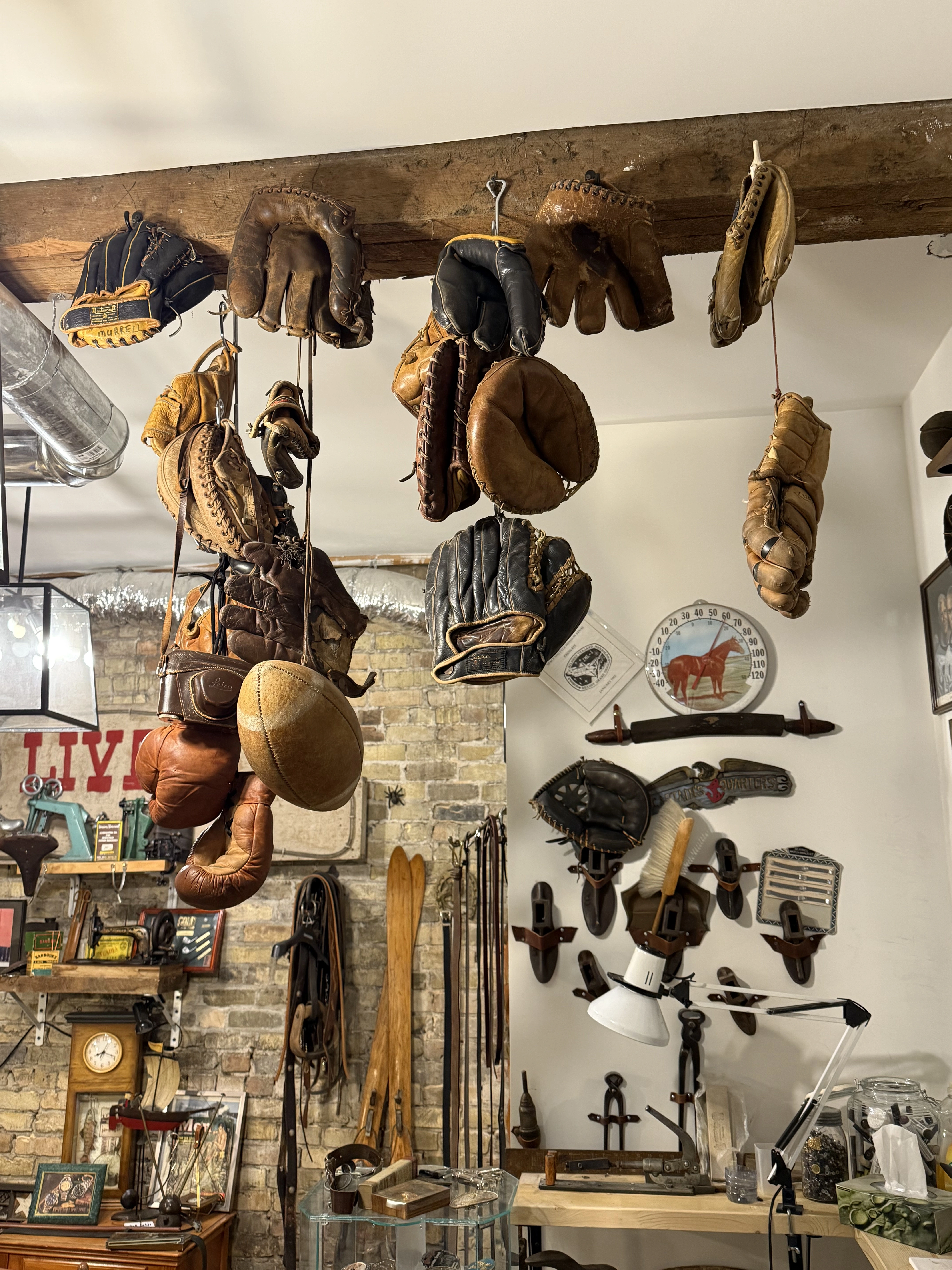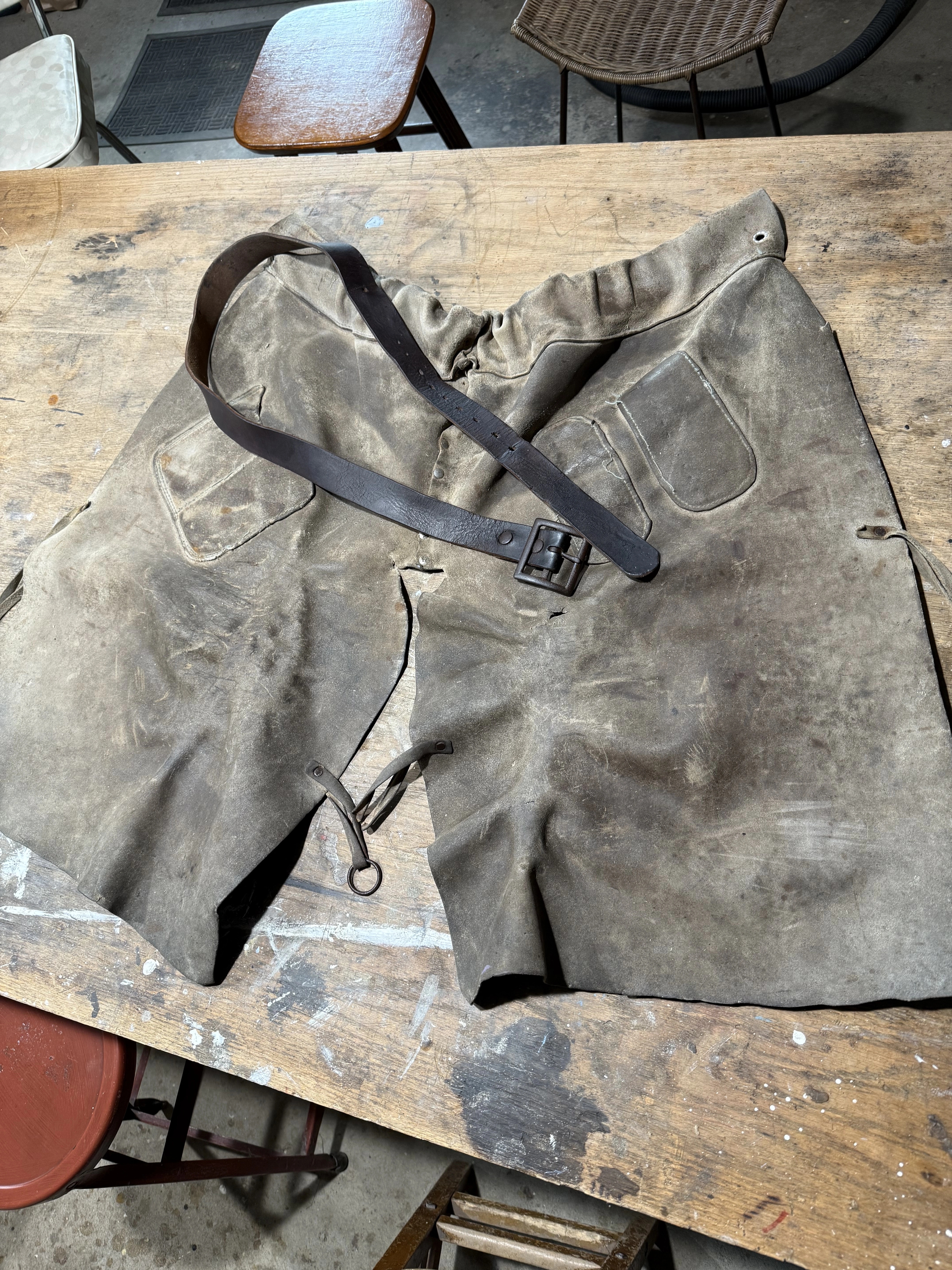List: Adler patcher, Special straps for a big man, Anvils, Clamps to bond leather, Hammers, Boot/shoe stretchers for the mrs’ Ferragamo collection, Edge creaser, Edge beveler, Channel making tool, Awl, Cutting board / rotary cutter and ruler, Skiver to thin leather (looks like a razor), Potbelly stove for winter, Singer patcher, Strap cutter for belts, Longines too that I added just because it’s cool, Hand tools on a wall bracket that I made out of leather, Old fur removal blade (looks like Damascus), Swatch (works!), Needles, Singer 201, Old Ikea bench for naps (this is the upstairs of my shop), Heavy duty leather cutter and skiver, Thread, Punches (old ones from England are the best I’ve used), Leather scissors, I have no idea what the hand tool with the conical expanding end is for. Some type of pain implement? A strap end punch, Buffing pad, and my favorite blade that I strop regularly.