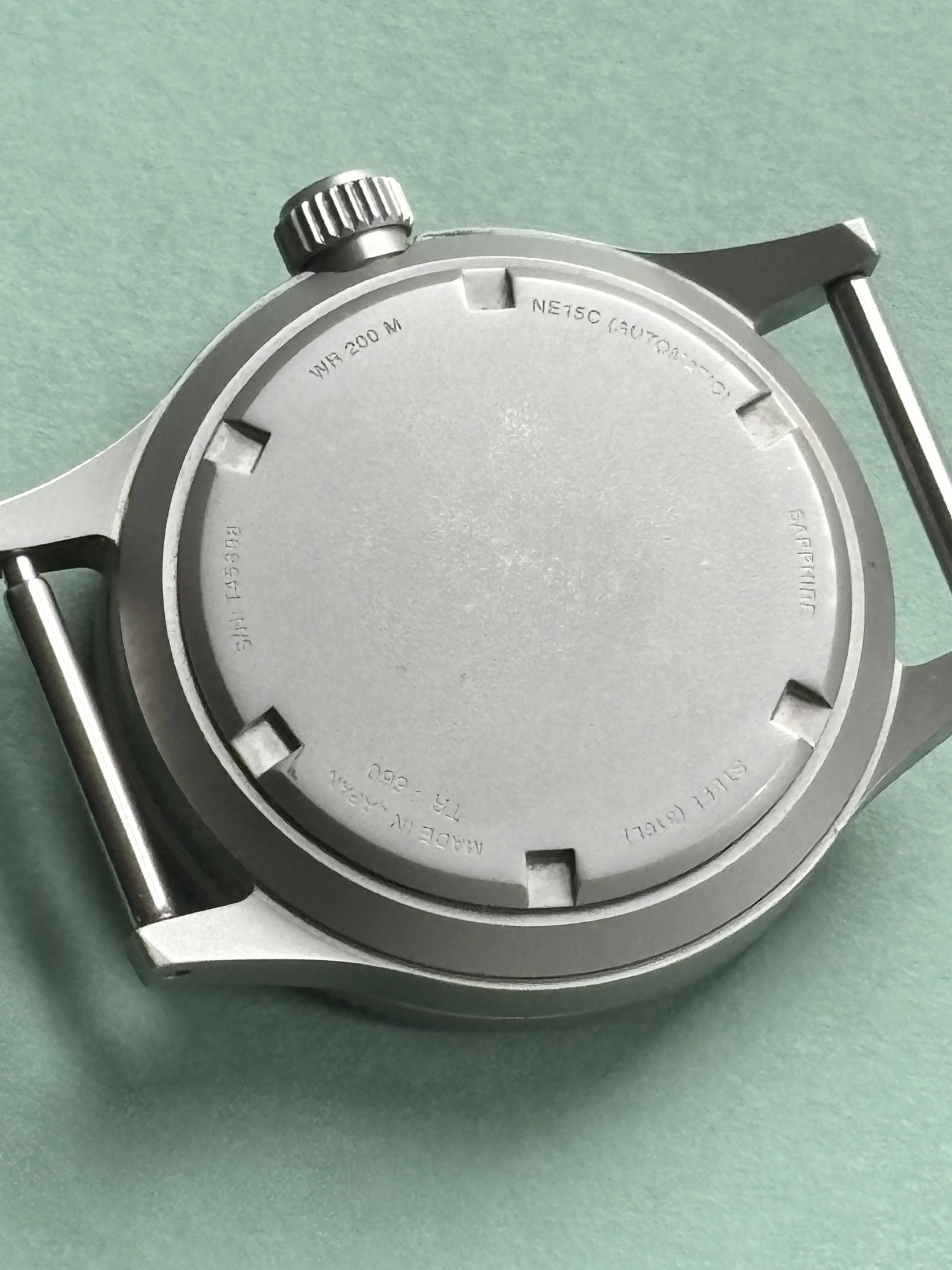 Movement: Seiko NE15 (SII NE15), an automatic movement with 24 jewels, 21,600 vibrations per hour, and a 50-hour power reserve.