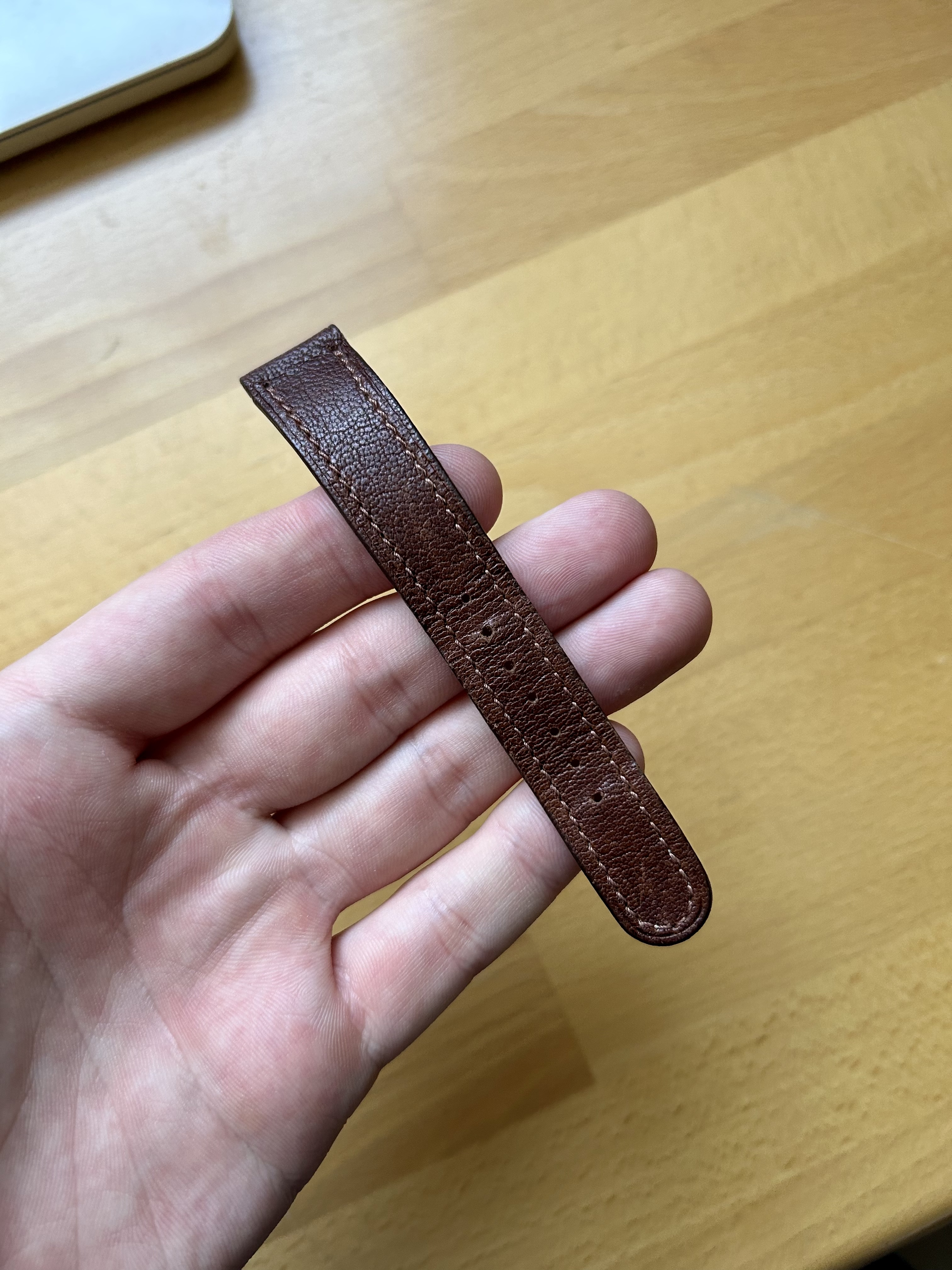 ·I’m selling this strap from the brilliant Torre straps - find him on Instagram. The reason for sale is I no longer own the 50s watch I bought it for, and it doesn’t work with any of the others in my collection, so I’d like to pass it on. It’s an 18mm strap, and the length from memory is 115/75. The leather is very high quality - beautifully soft and supple with a rounded end reminiscent of 50s style straps. This works brilliant on beefy lug SMs. It’ll come with a plain steel buckle.