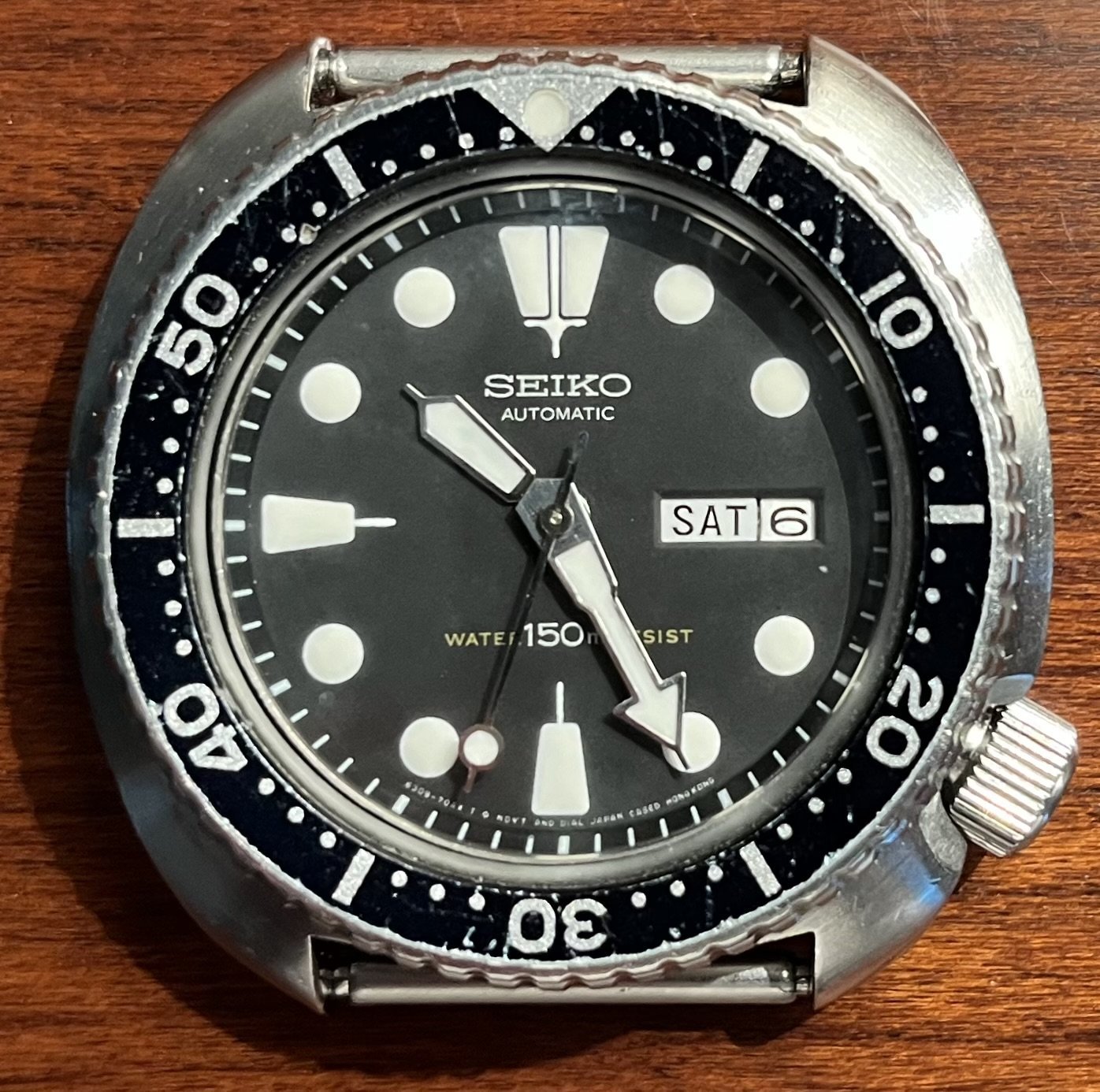 ·Seiko 6309-7049 150m diver dating to March 1983, which received a full service from Jack Alexyon of International Watch Works (IWW) in Cary, North Carolina, including re-lume of dial and hands, new crystal, gaskets and pressure check. Will come on a brand new Uncle Seiko USGL831 with fat spring bars. Also included is a very rare Seiko XGL831 (with 2 keepers) and a lightly worn Man Cave Leather (MCL) Classic 22 strap.