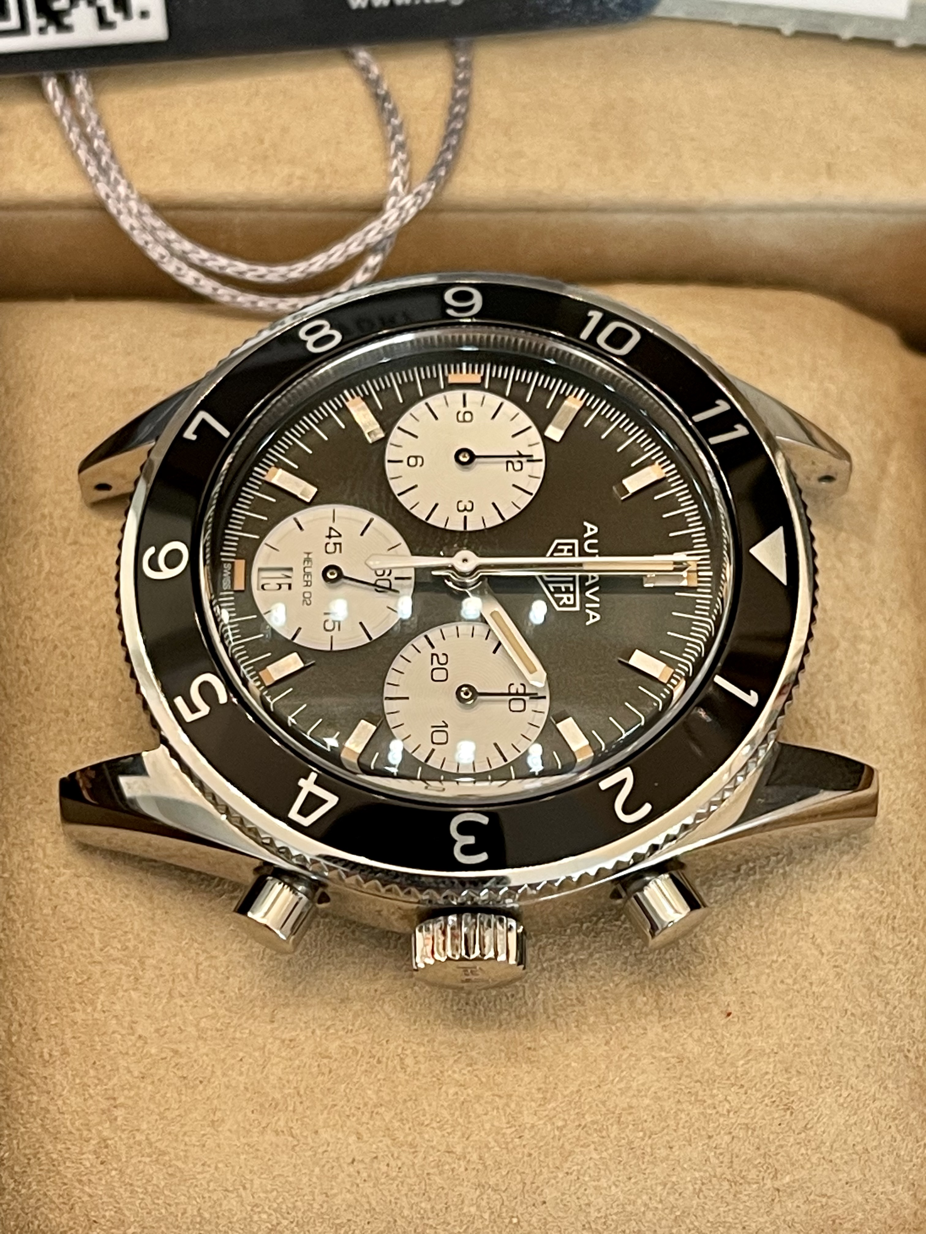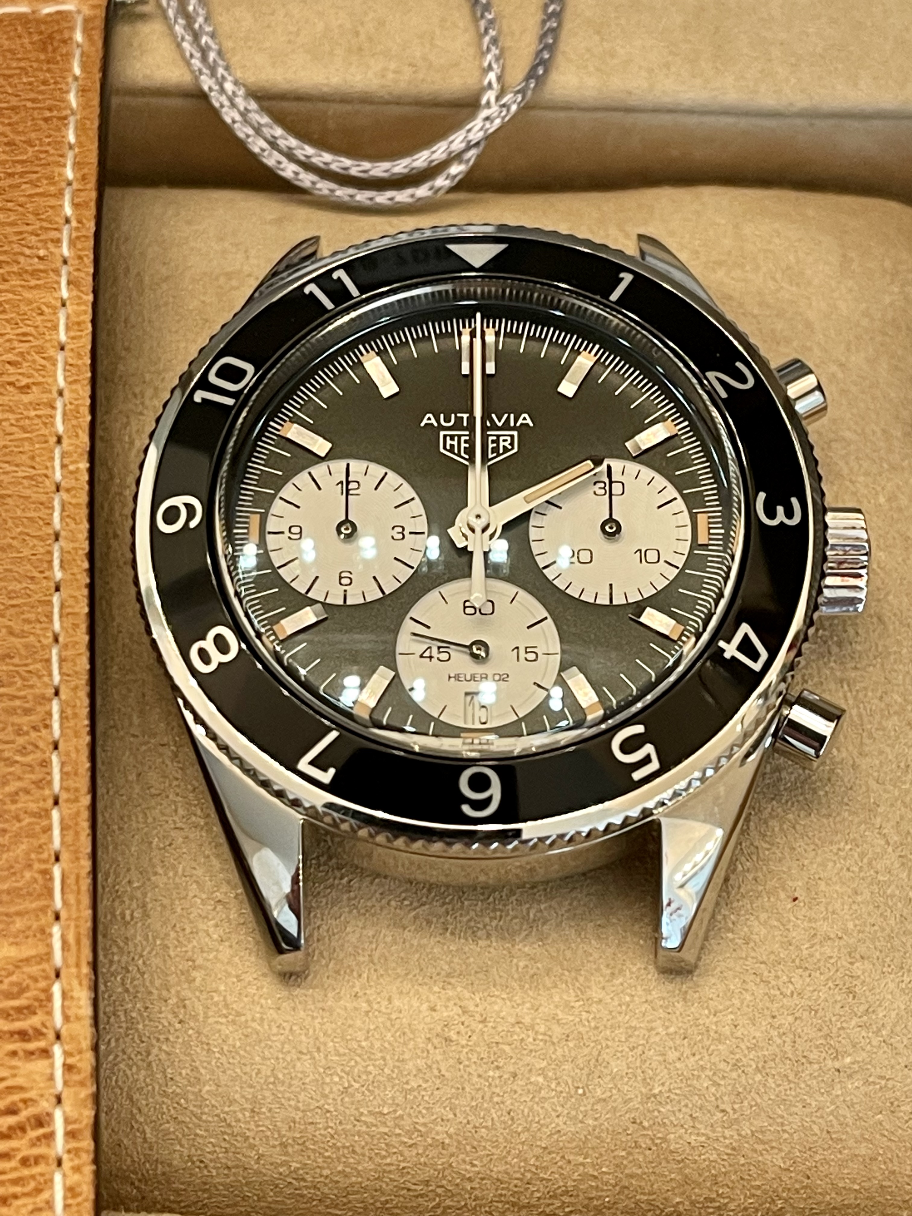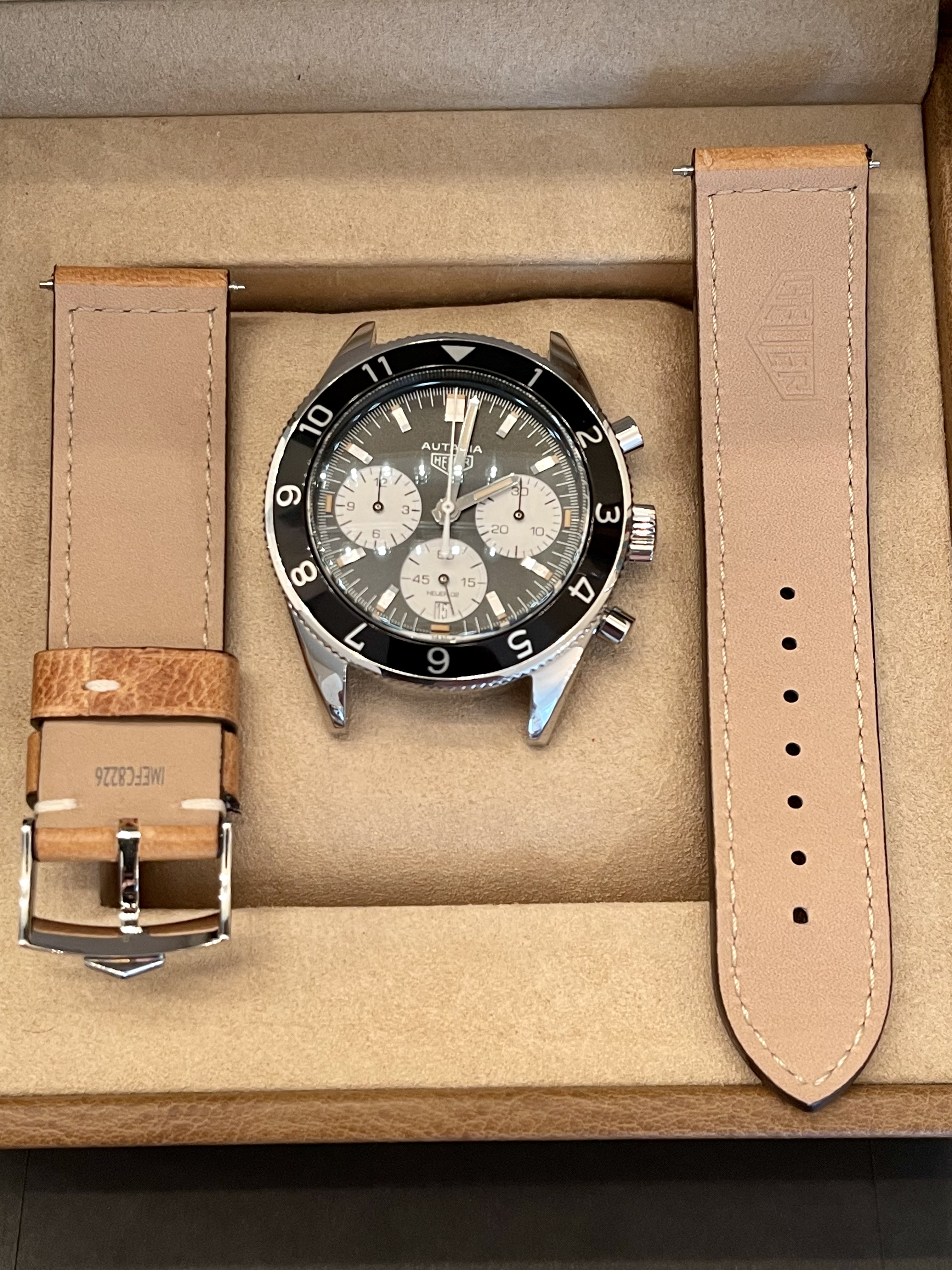 The Autavia Cal 02 Chronograph has been discontinued and I doubt you will find an example as clean and complete as this one for the price. I have references on OF, WUS, available upon request. I welcome your questions.
