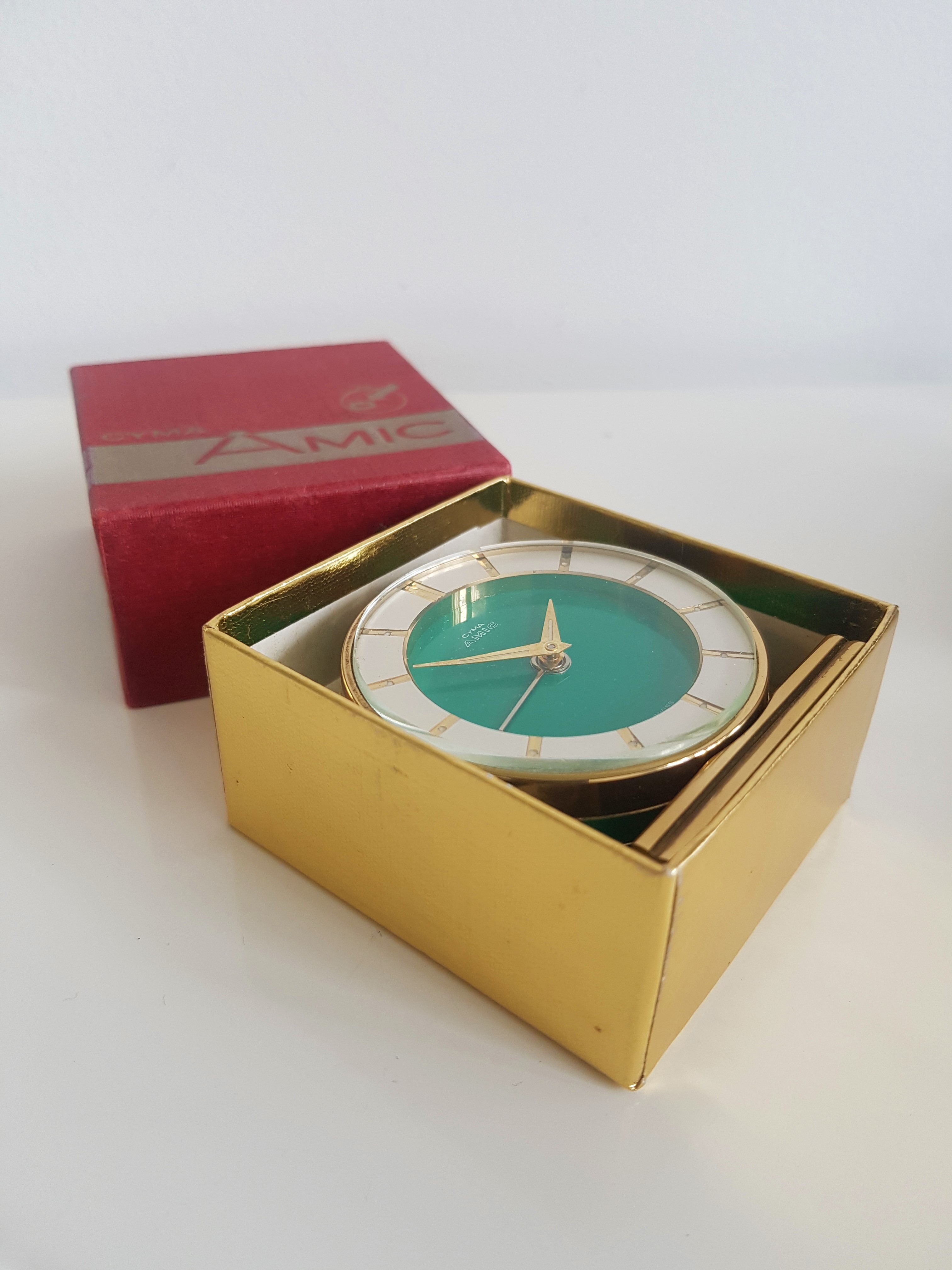 4. This one is a really cute Cyma Amic travel alarm coming complete with it's original box. I think this one based on design is probably from the early 1960's. Condition throughout is wonderful and it is functioning just great- €75 SOLD!