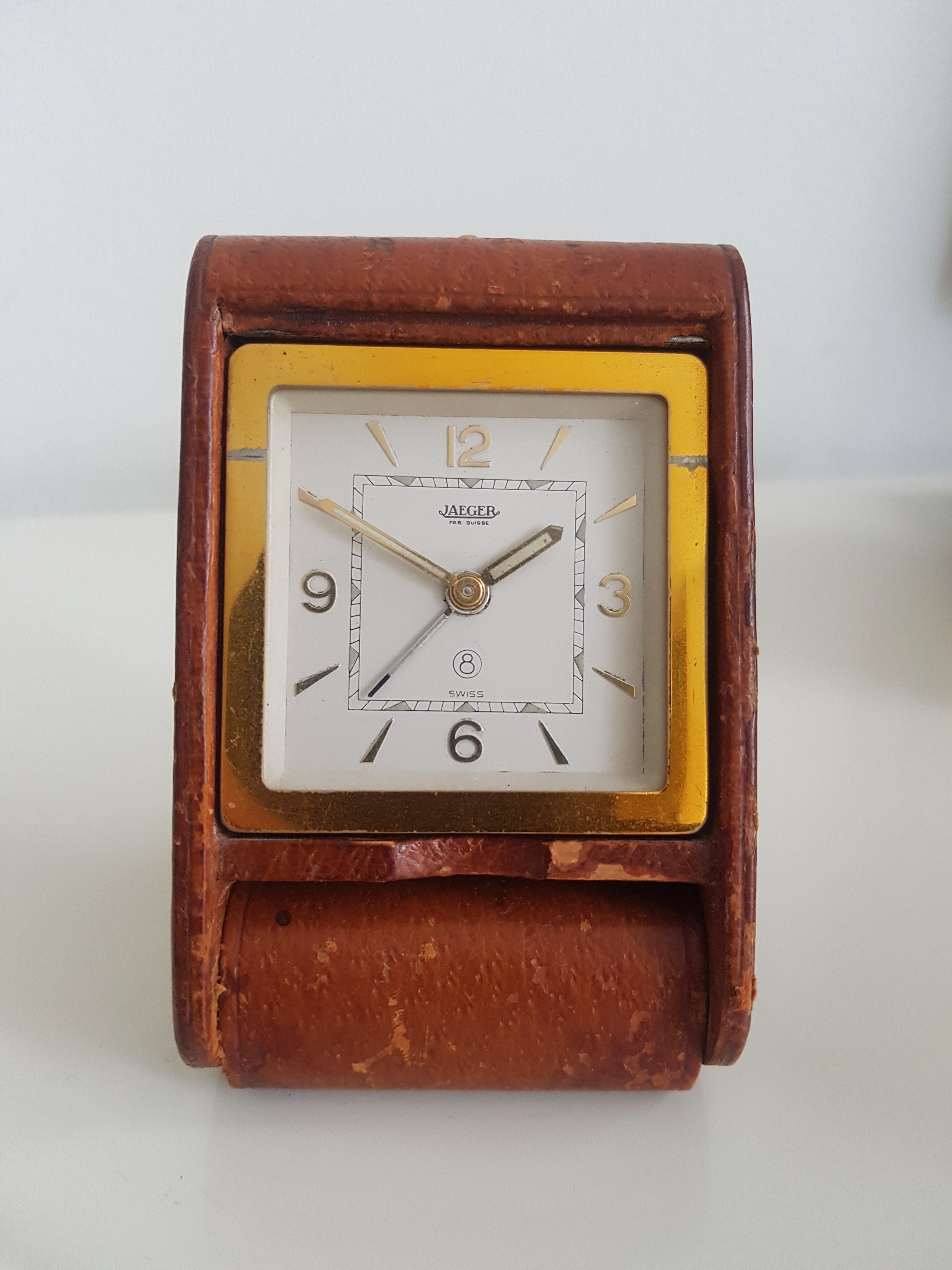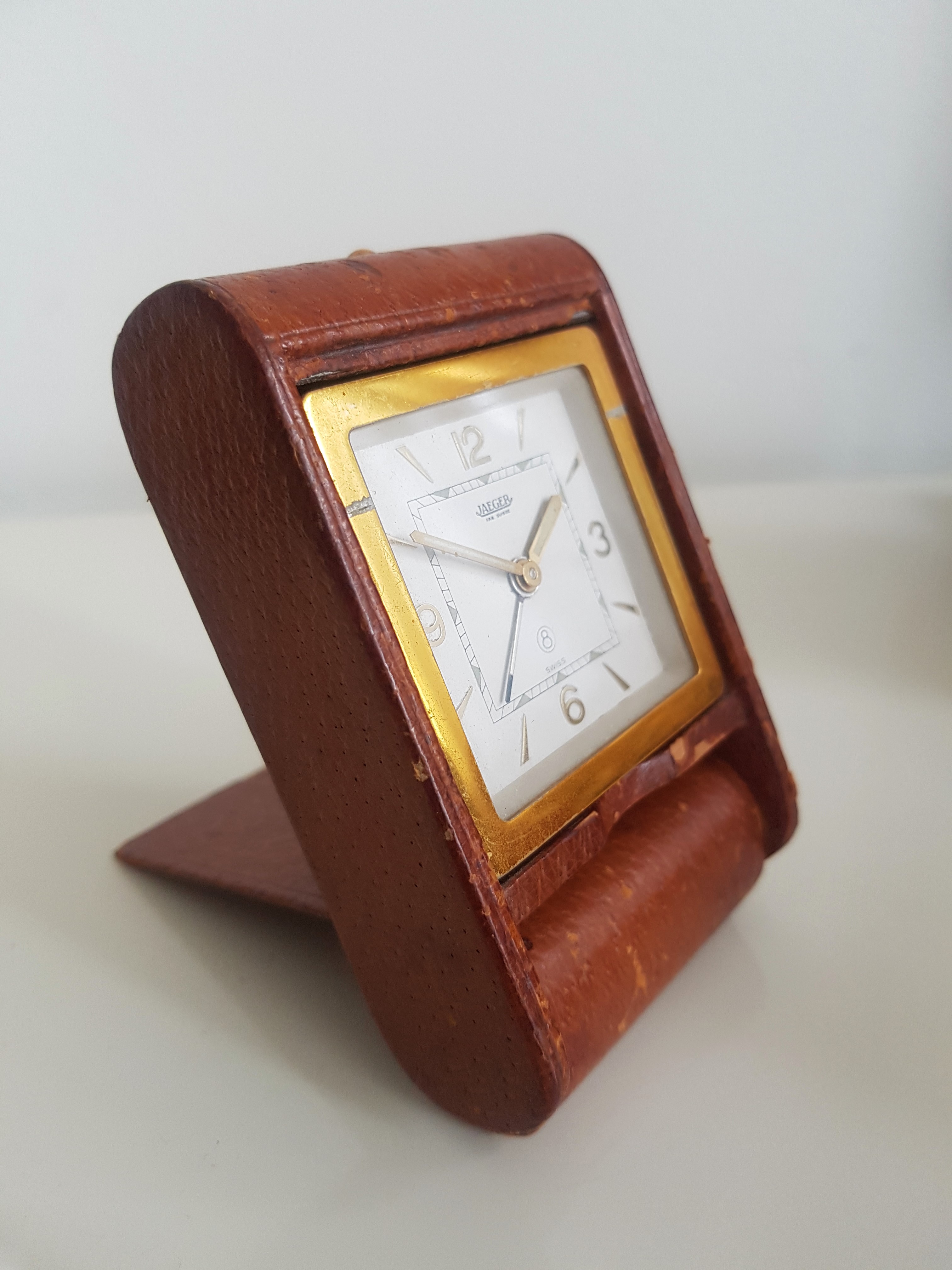 3. The third up is another folding Jaeger travel-alarm clock, this one with a leather case. It is in pretty good shape as can be seen and the movement is running well with everything functioning as it should. Decent time keeping and power reserve- €75 SOLD!