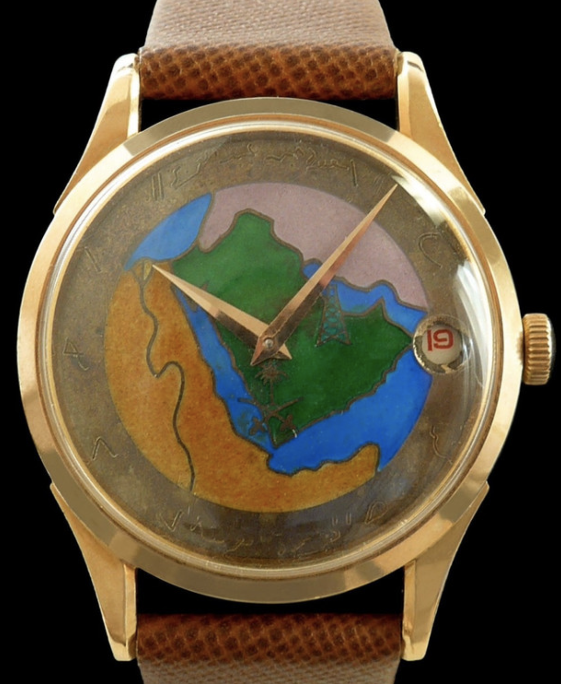 Whilst there are later 'Aramco' enamel dialled Omegas, they aren't gold or Tresors and unlike them the Tresor dial has no Omega logo and is significantly older than the 'Omega Aramco dialled' watches, so the assumption is that it is an 'after market' custom addition.