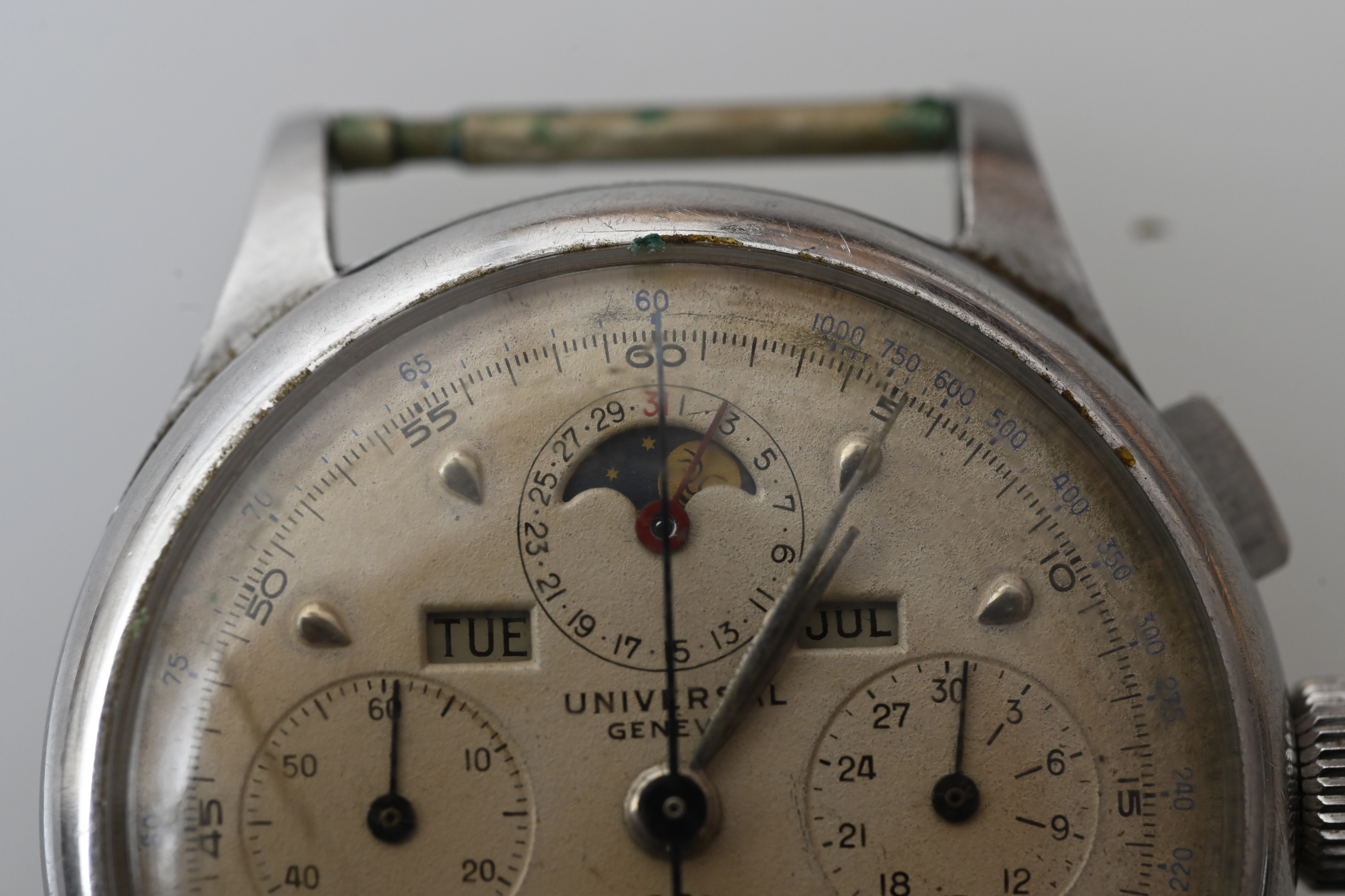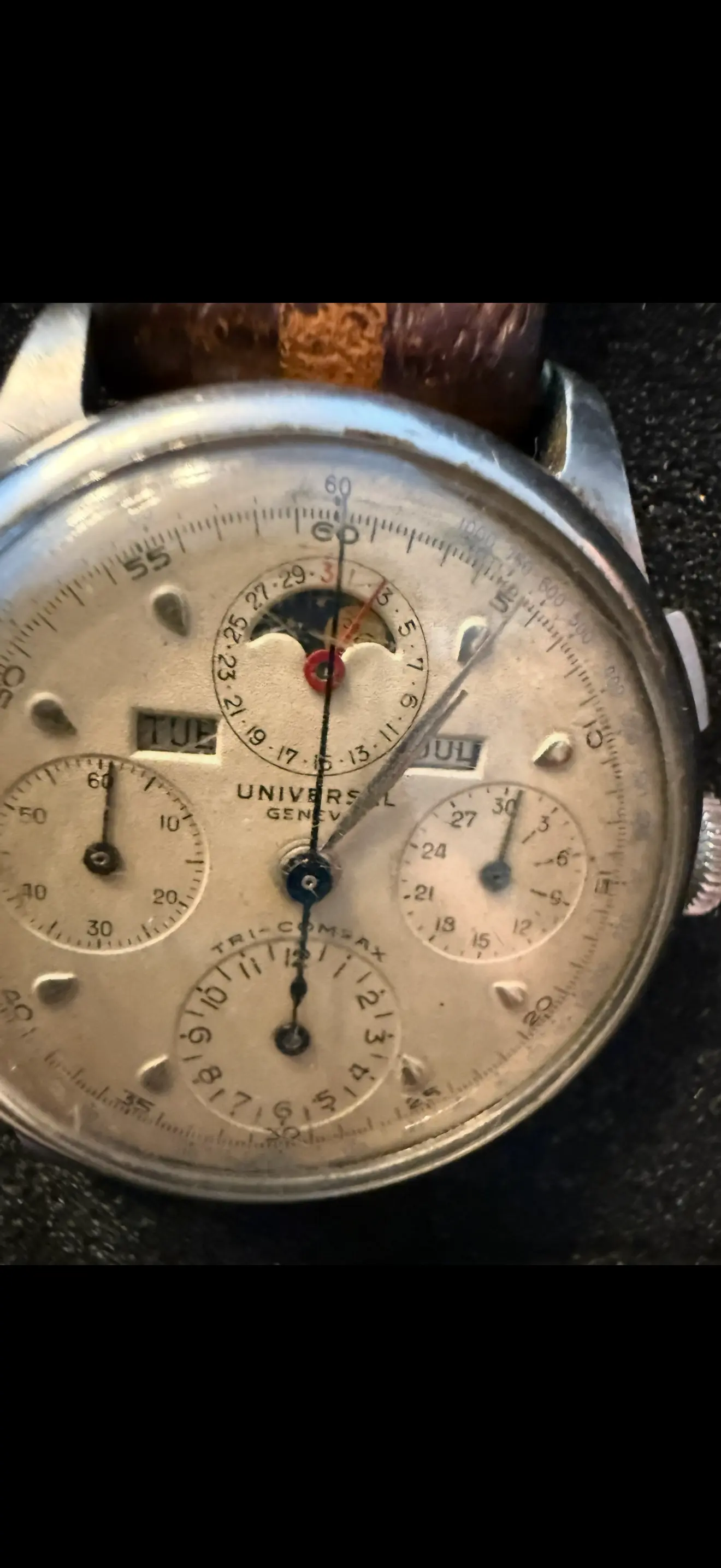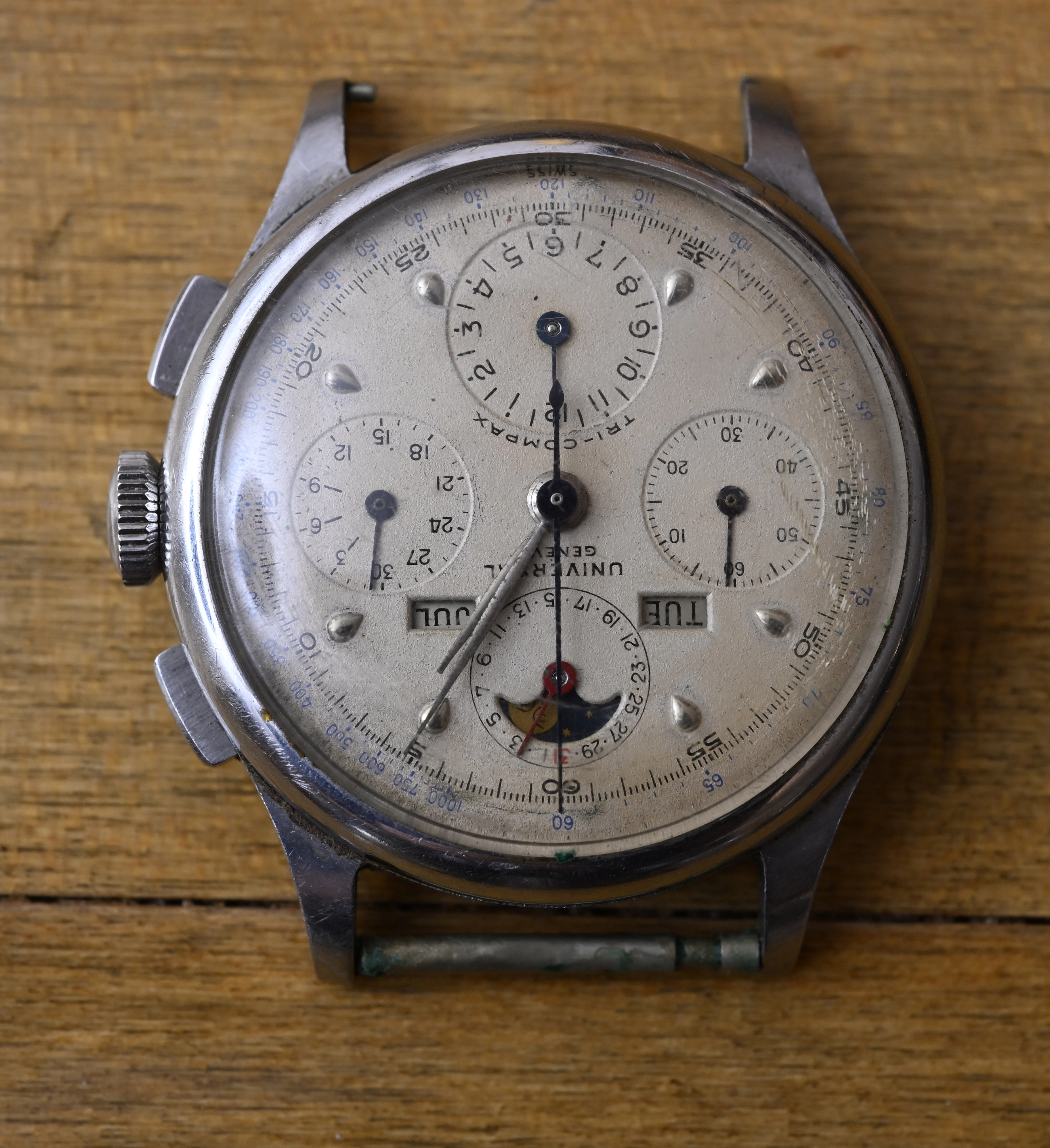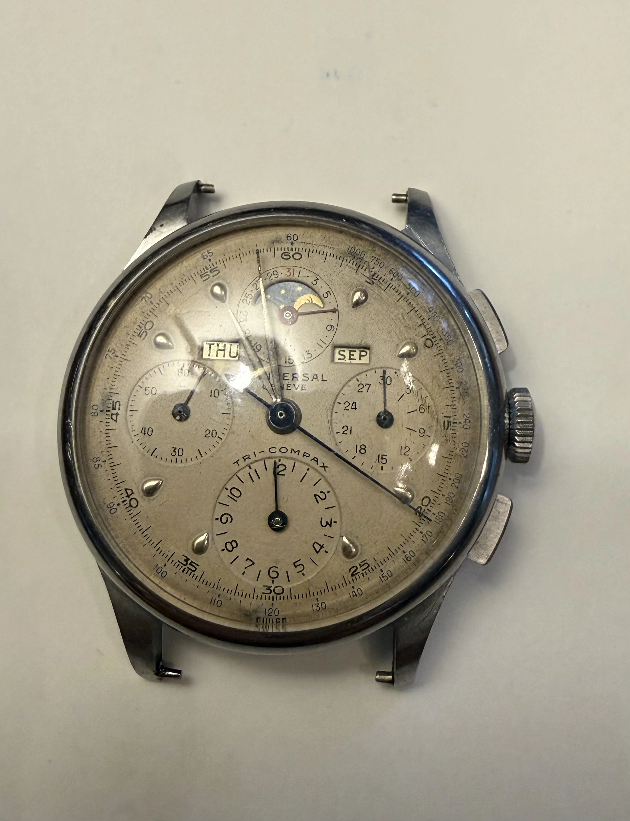 I brought it to JWatch in NY and they said it needs a mainspring and a spring pin for one side where the watchband goes. I haven’t had it worked on. I was quoted around a thousand dollars for an overhaul, spring and insertion of the spring pin (not sure that is correct term). Have a copy of their detailed quote. Don’t know if they are a good shop or not to repair a 1945 tri compax. Anyone here use them before?