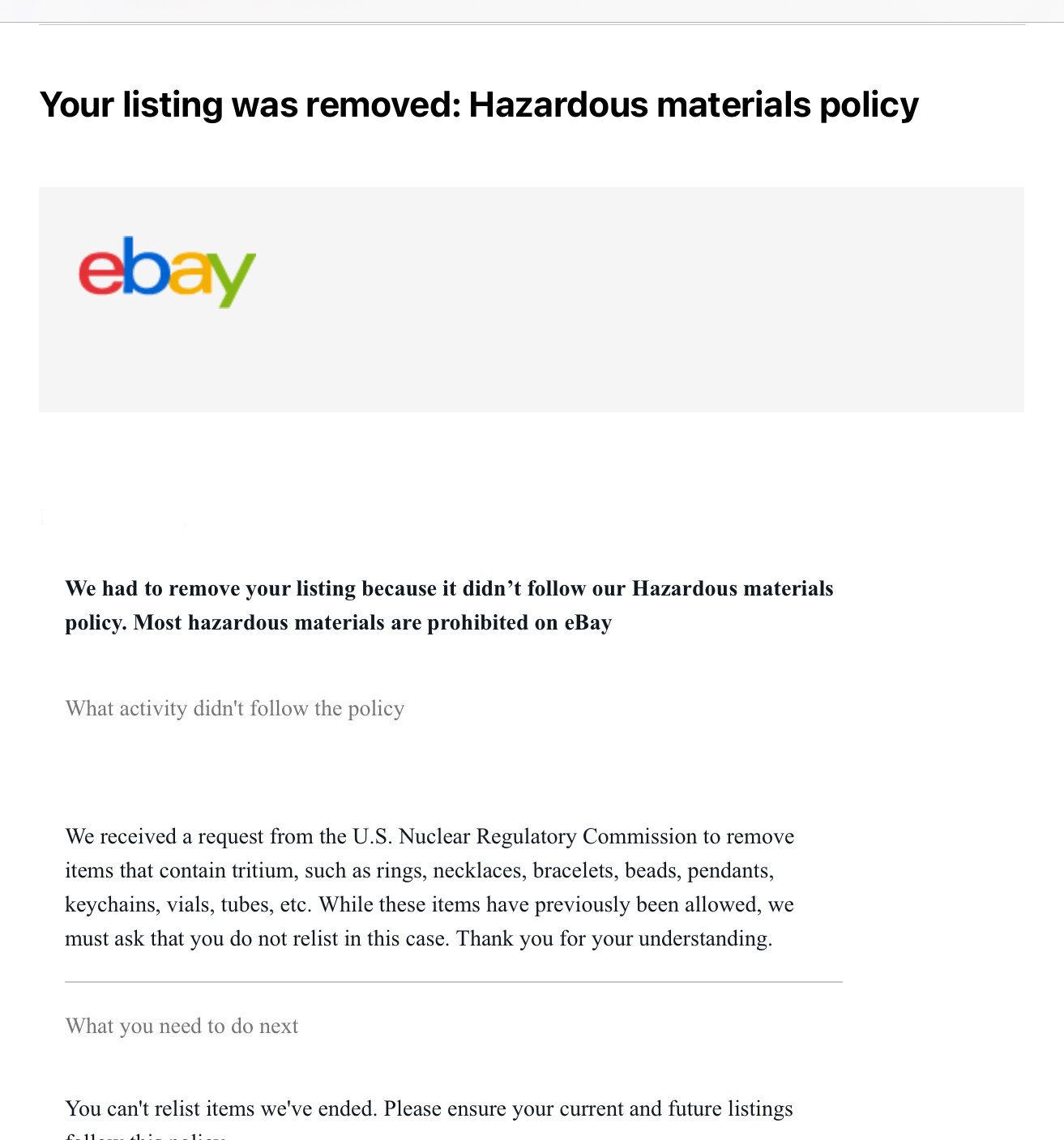 Has anyone else had this? I wonder what it means for the future of vintage watches and parts on eBay? Is tritium even hazardous?