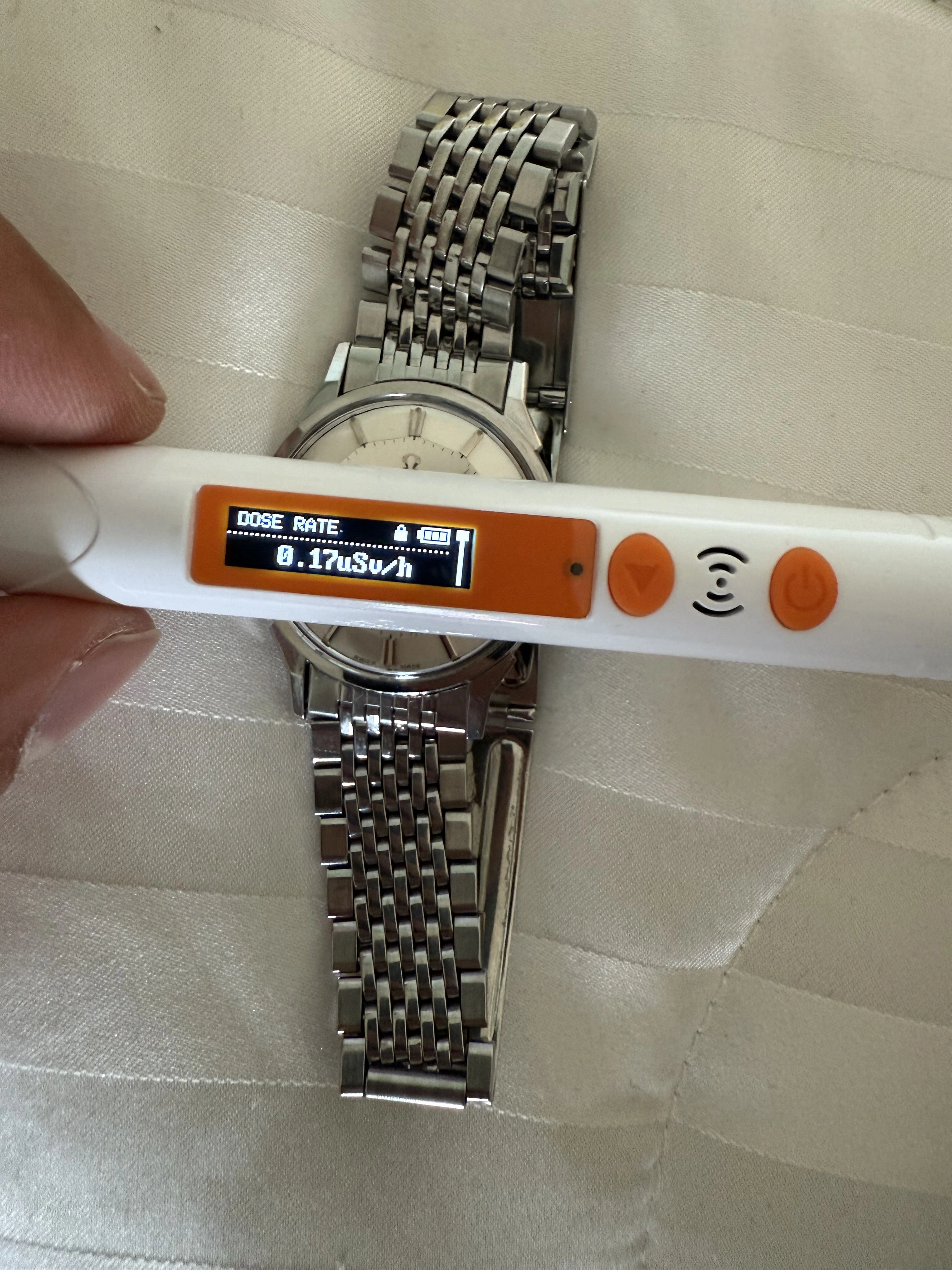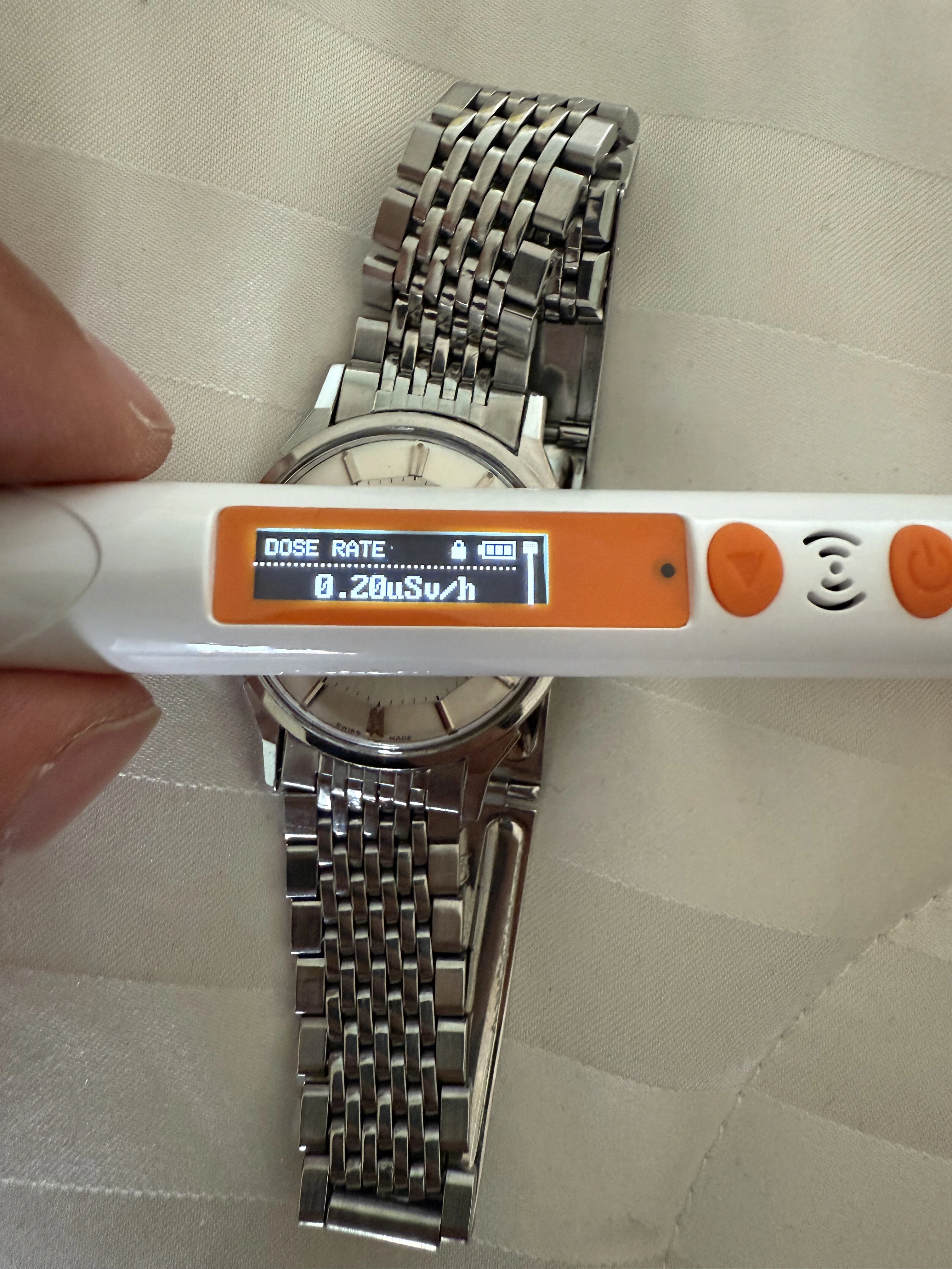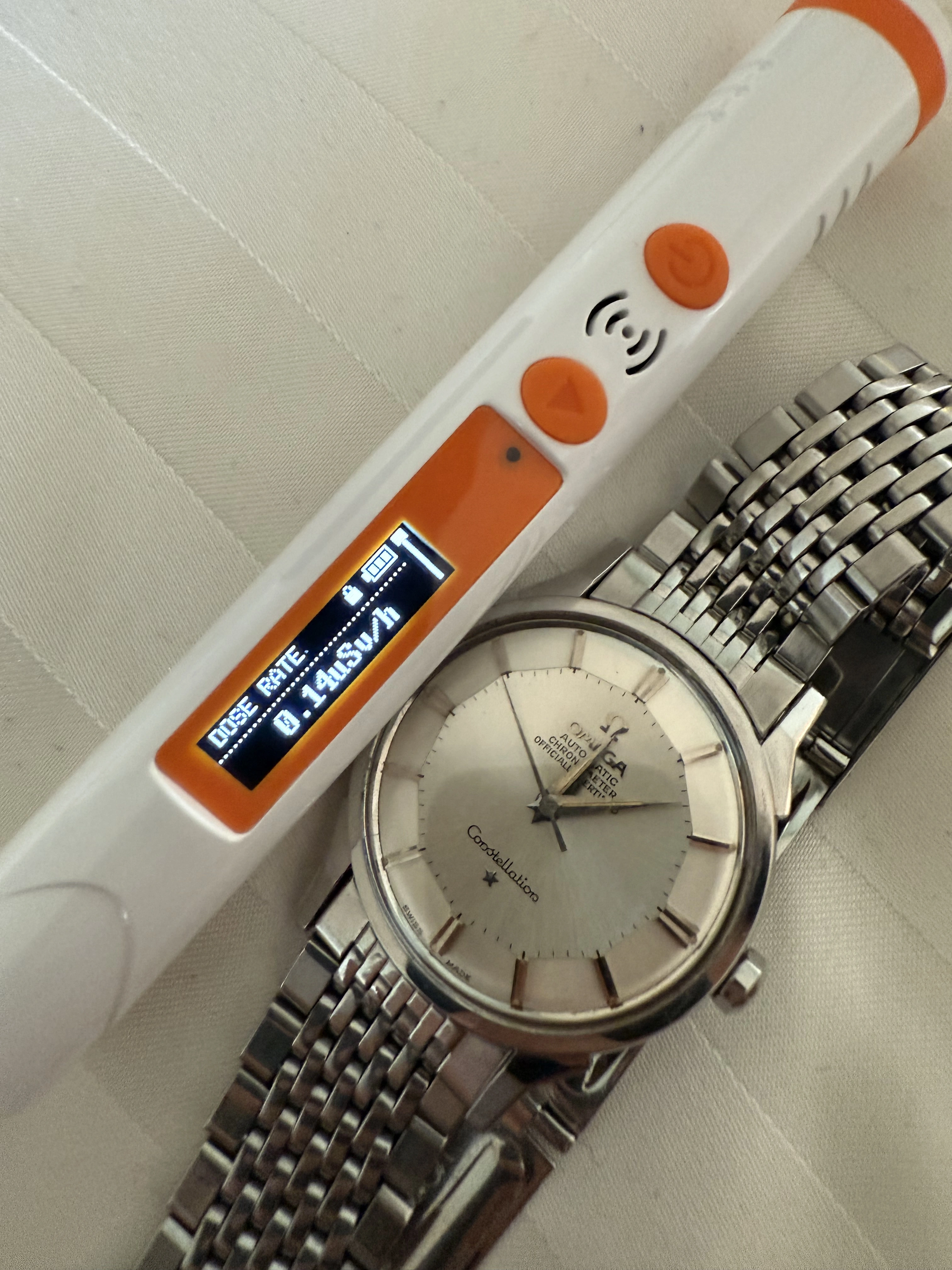 Very interesting. I always assumed that the lume on my 14900 offered here was radium given the dark color. But it could have been due to the moisture ingress that also caused the patina. I went to check with my Geiger counter, the readings are all over the place but seem to settle around 0.30 µSv/h, similar to the my Seamaster 2577 that almost certainly has radium on it. So radium or tritium I wonder.