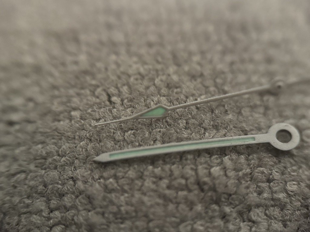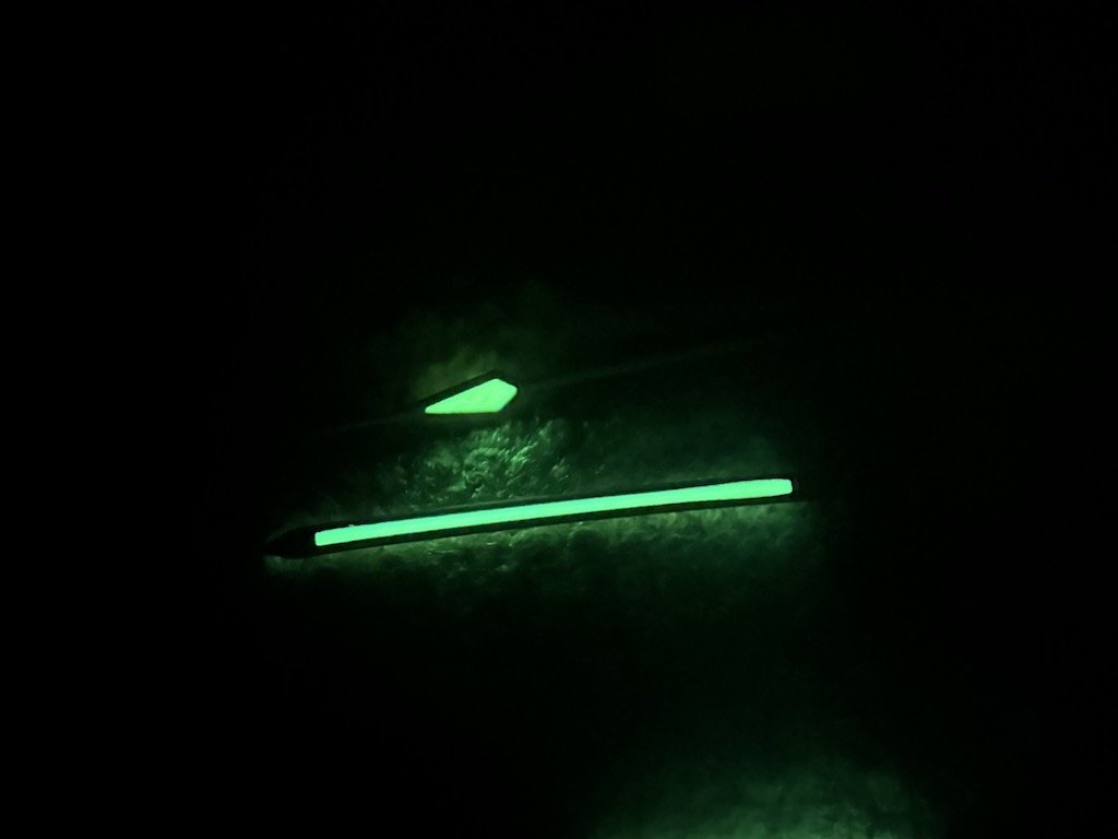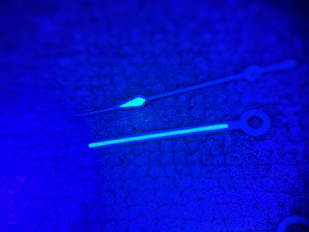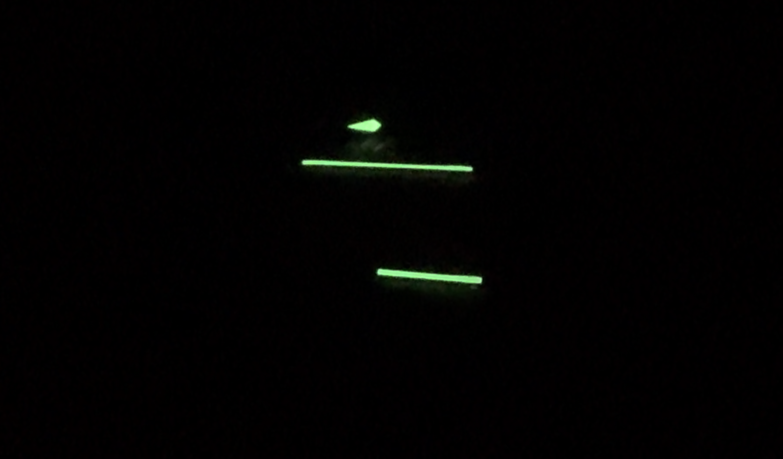 These are two photos from the start and end of a 1 minute video. You can see that they fade a bit over the course of the 1 minute. Does that look more like tritium or luminova?