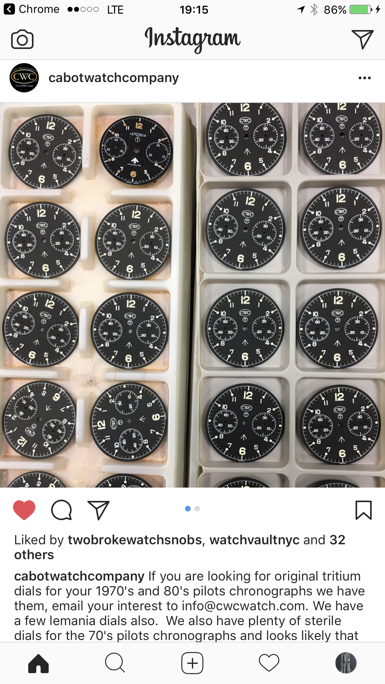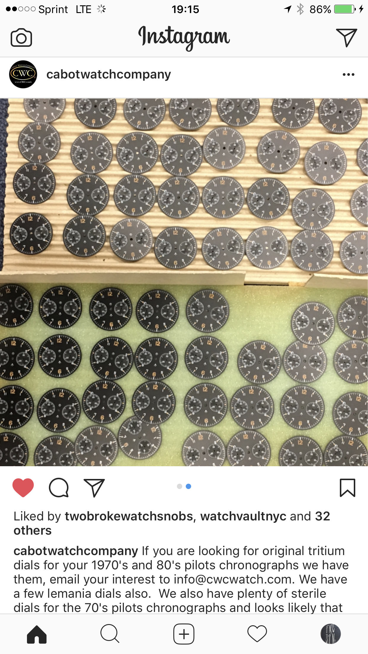 Just wanted to pass along info for those of you with vintage pilot watches. Cabot Watch Company posted on IG today that they have many dials that were supplied by CWC for these watches available.