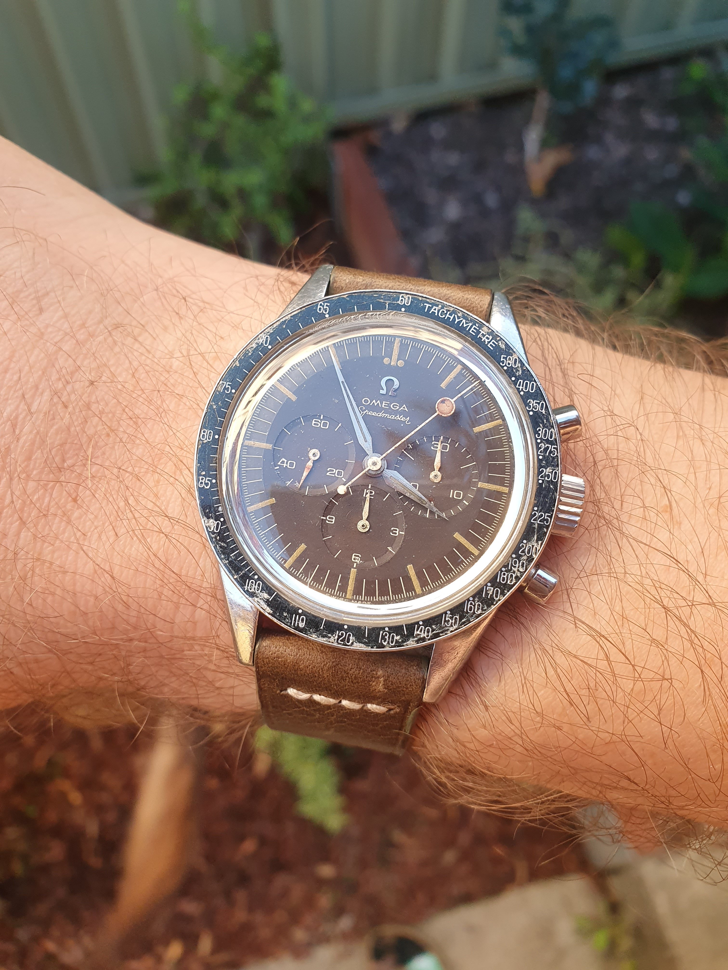 Speedmaster 2998-2 1960 with Lollipop hand and heavy patina.