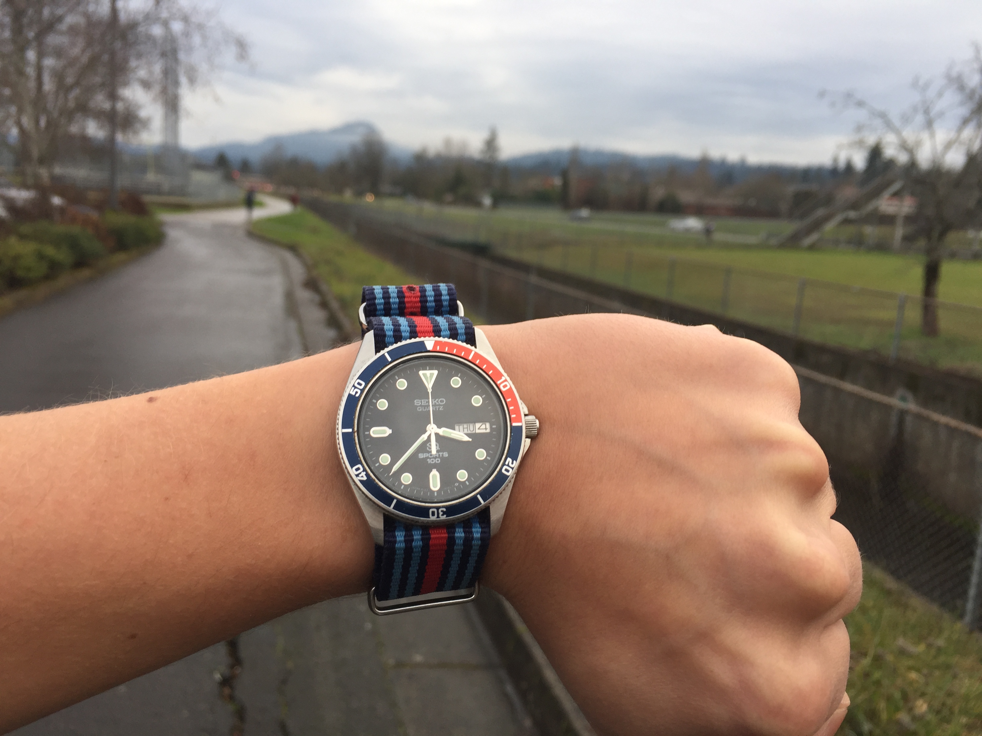 Here are my worries on sizing of the 007 vs 013. As mentioned previously I have never owned anything about 38mm and am pretty small wristed. I usually prefer vintage sizing. Here is my largest watch my 1983 Seiko Sports 100 at 38mm/39mm. If a 007 is better then I might consider it
